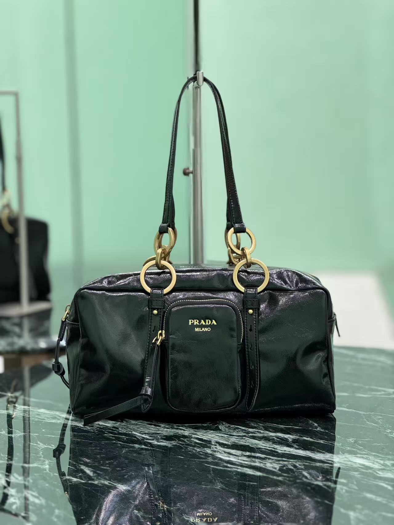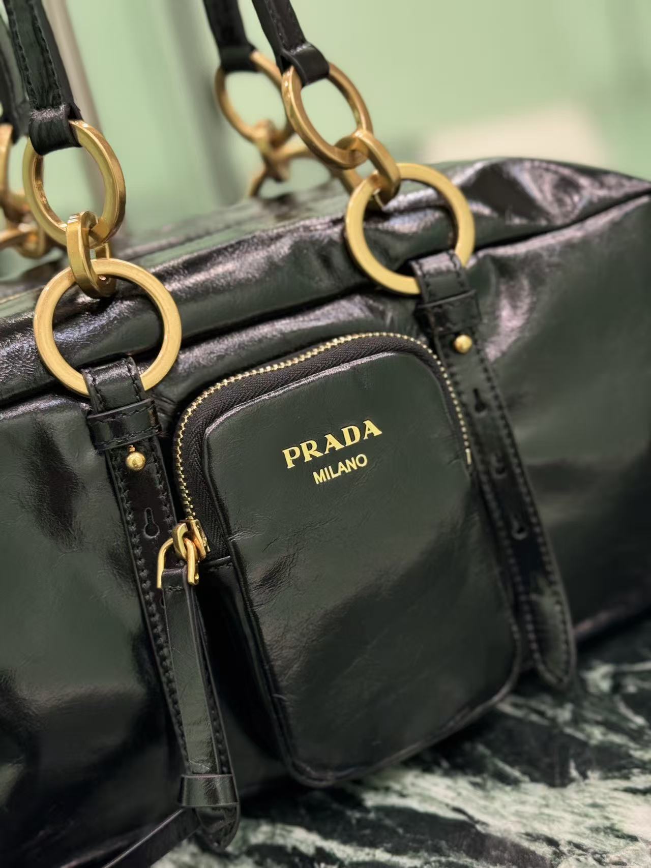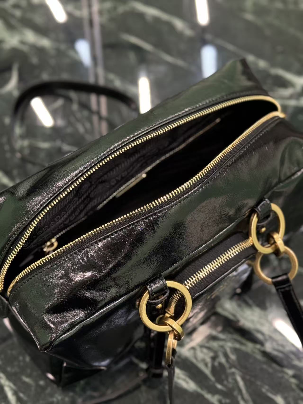 PRADA Explore enamel metal triangular logo zipper open shoulder bag for women, large size