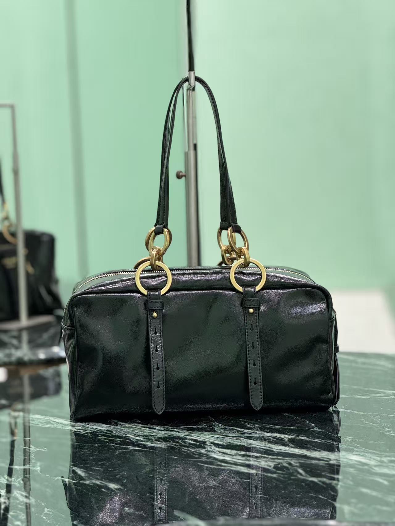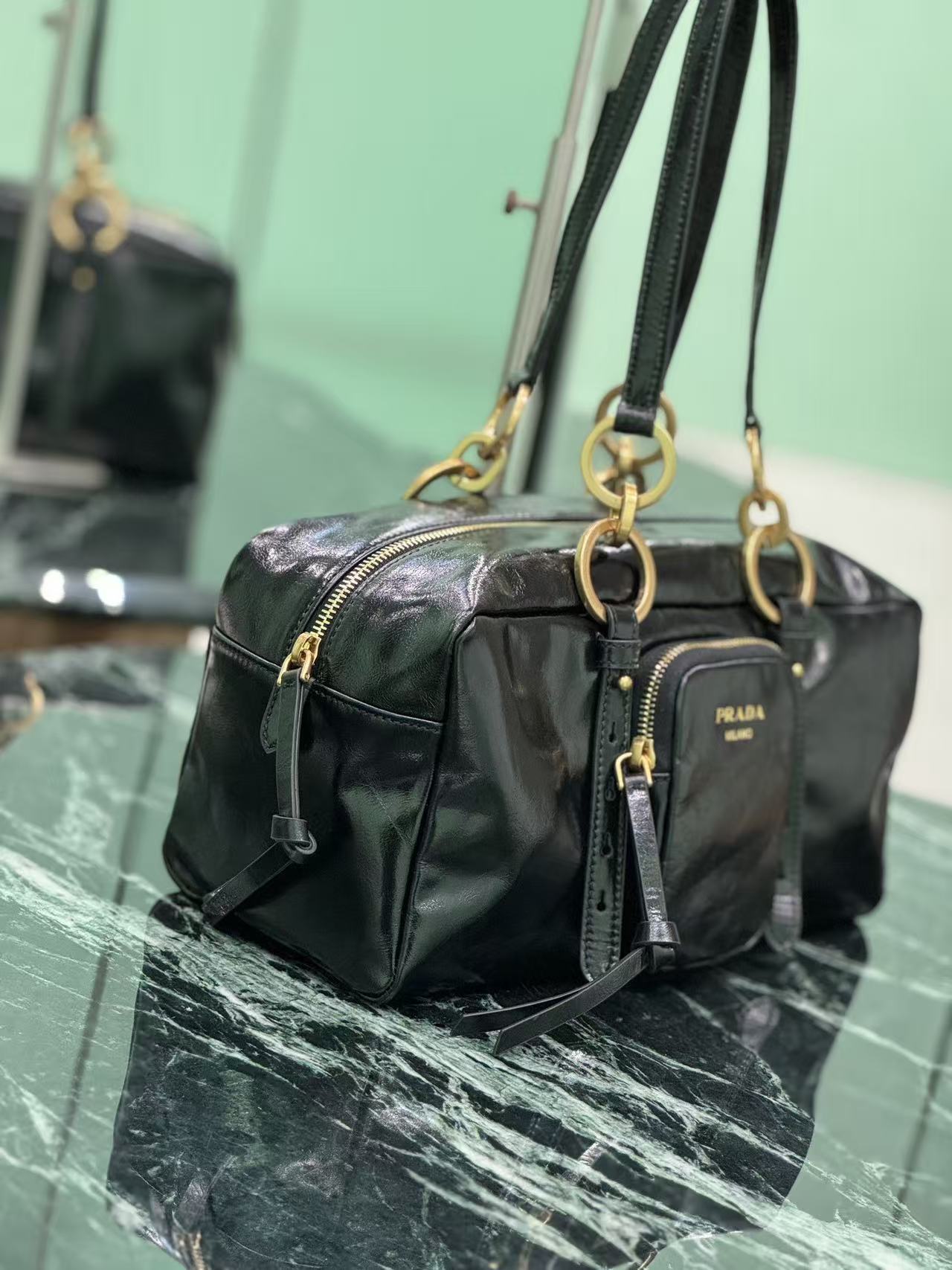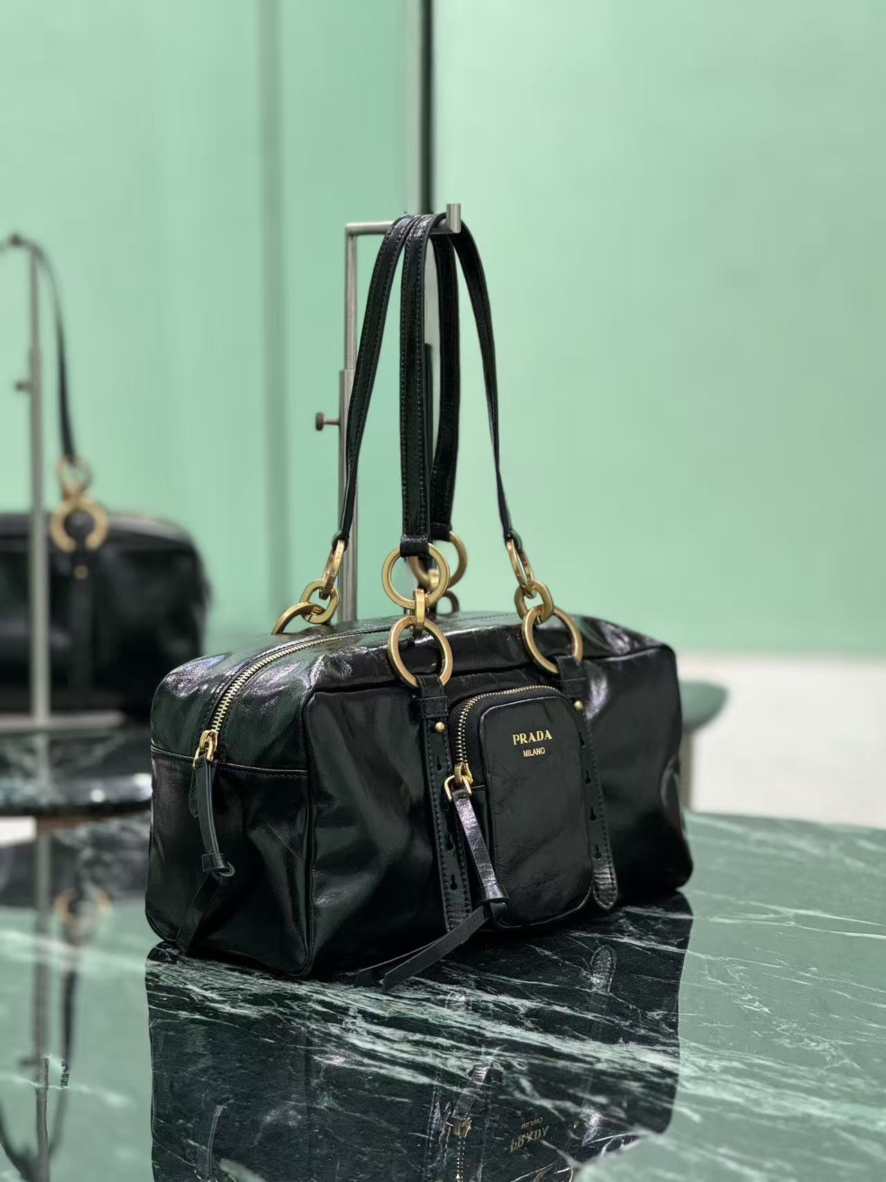 PRADA Dangle brand logo zipper opening single-shoulder handbag, medium size for women, black