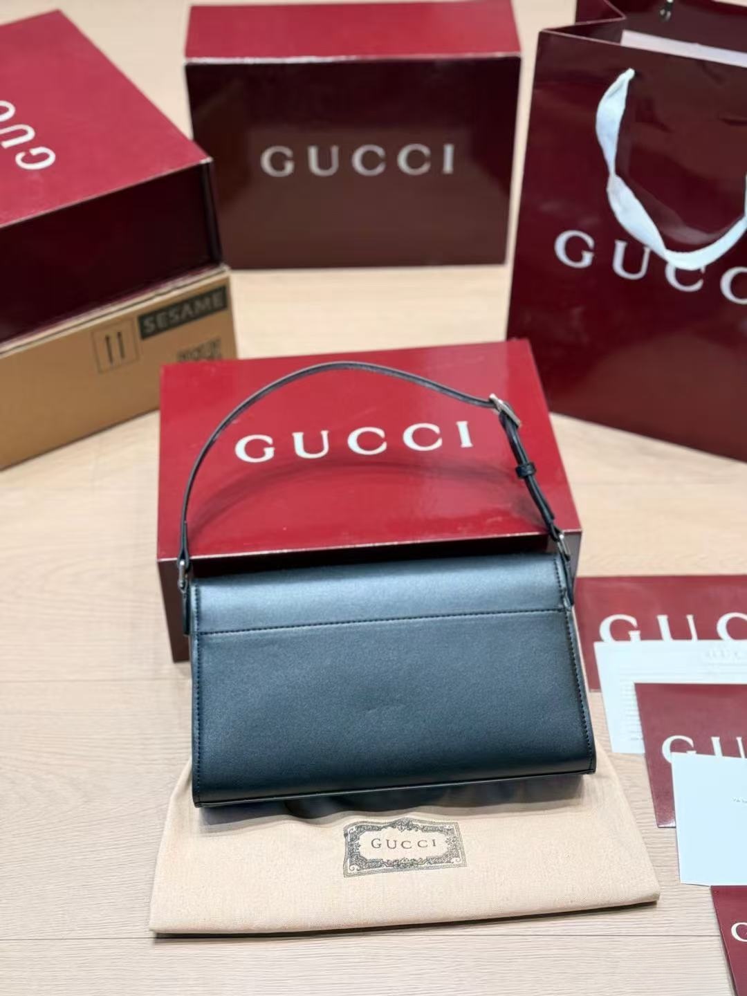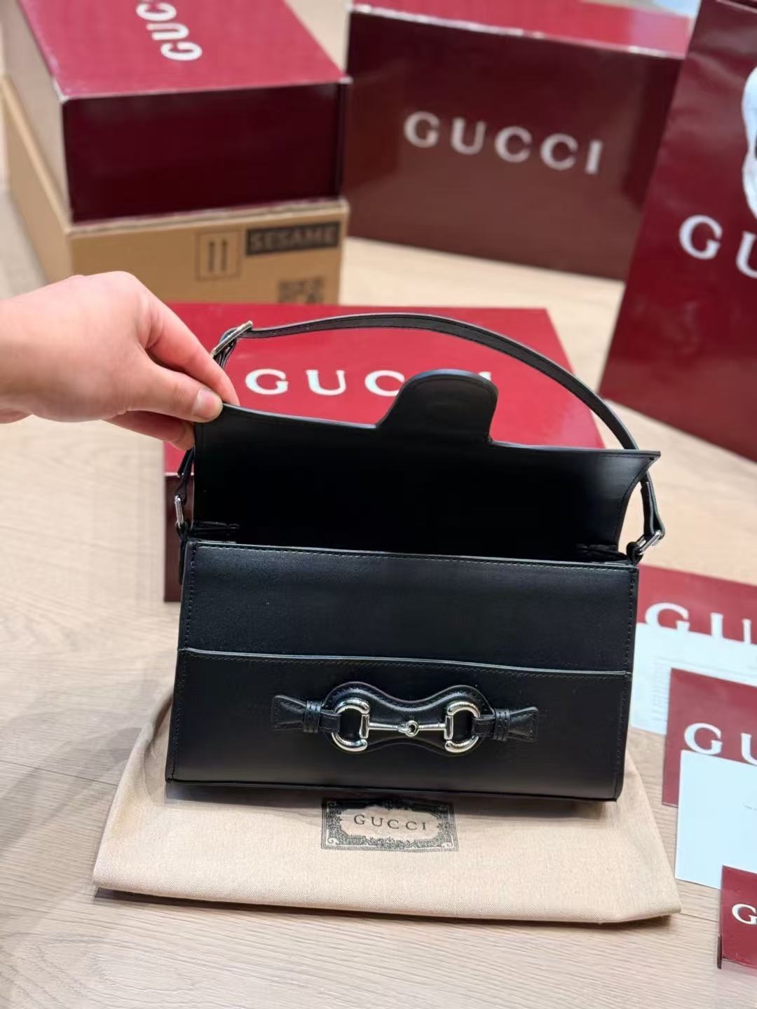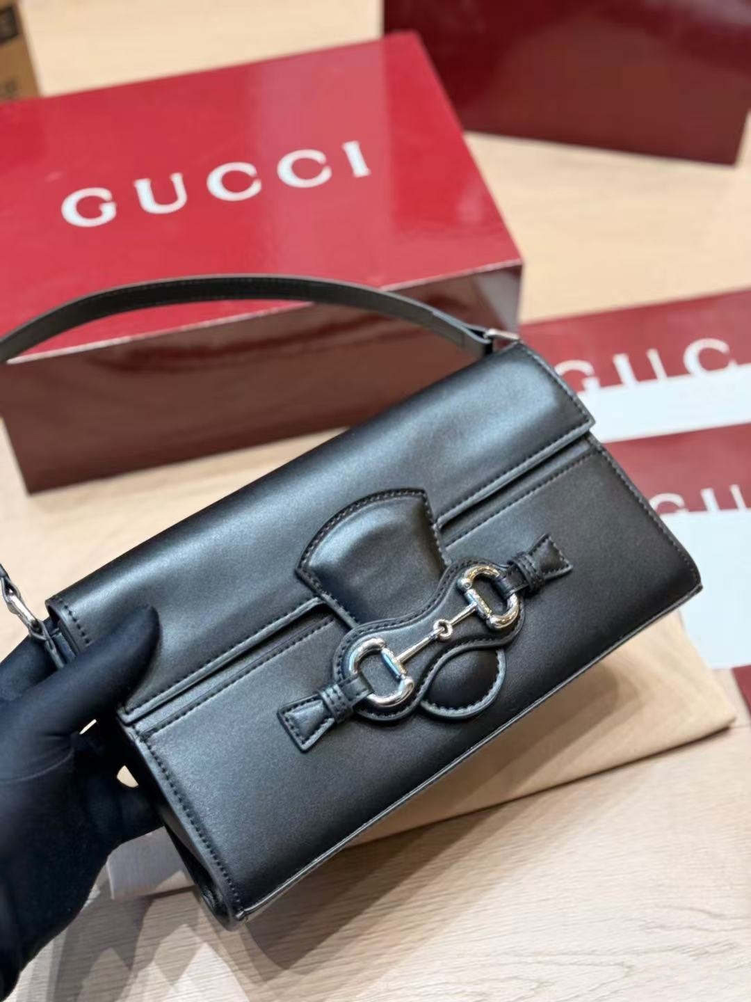 GUCCI Horsebit Ristretto Primavera iconic horsebit buckle pattern single-shoulder bag, medium size for women, black
