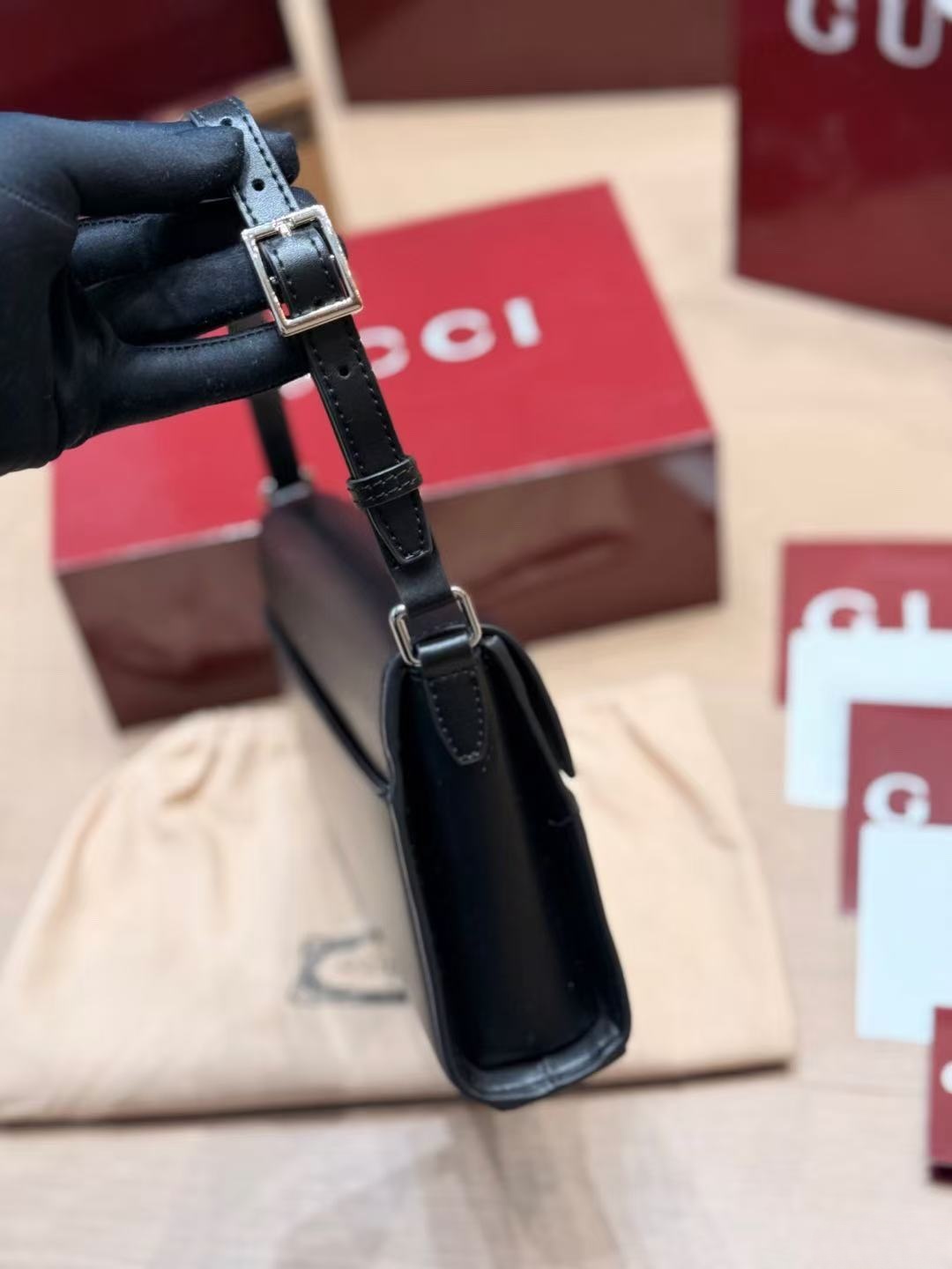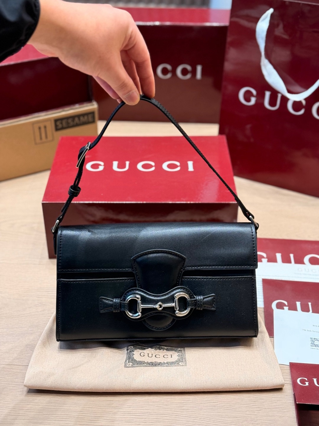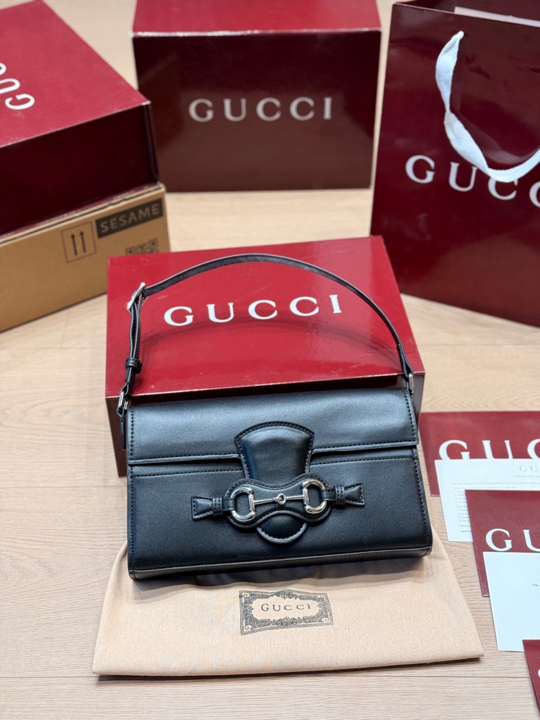 GUCCI Horsebit Ristretto Primavera iconic horsebit buckle pattern single-shoulder bag, medium size for women, black