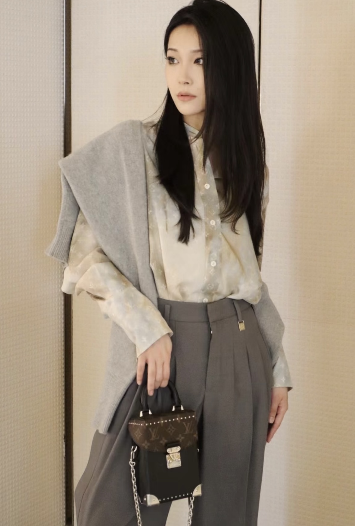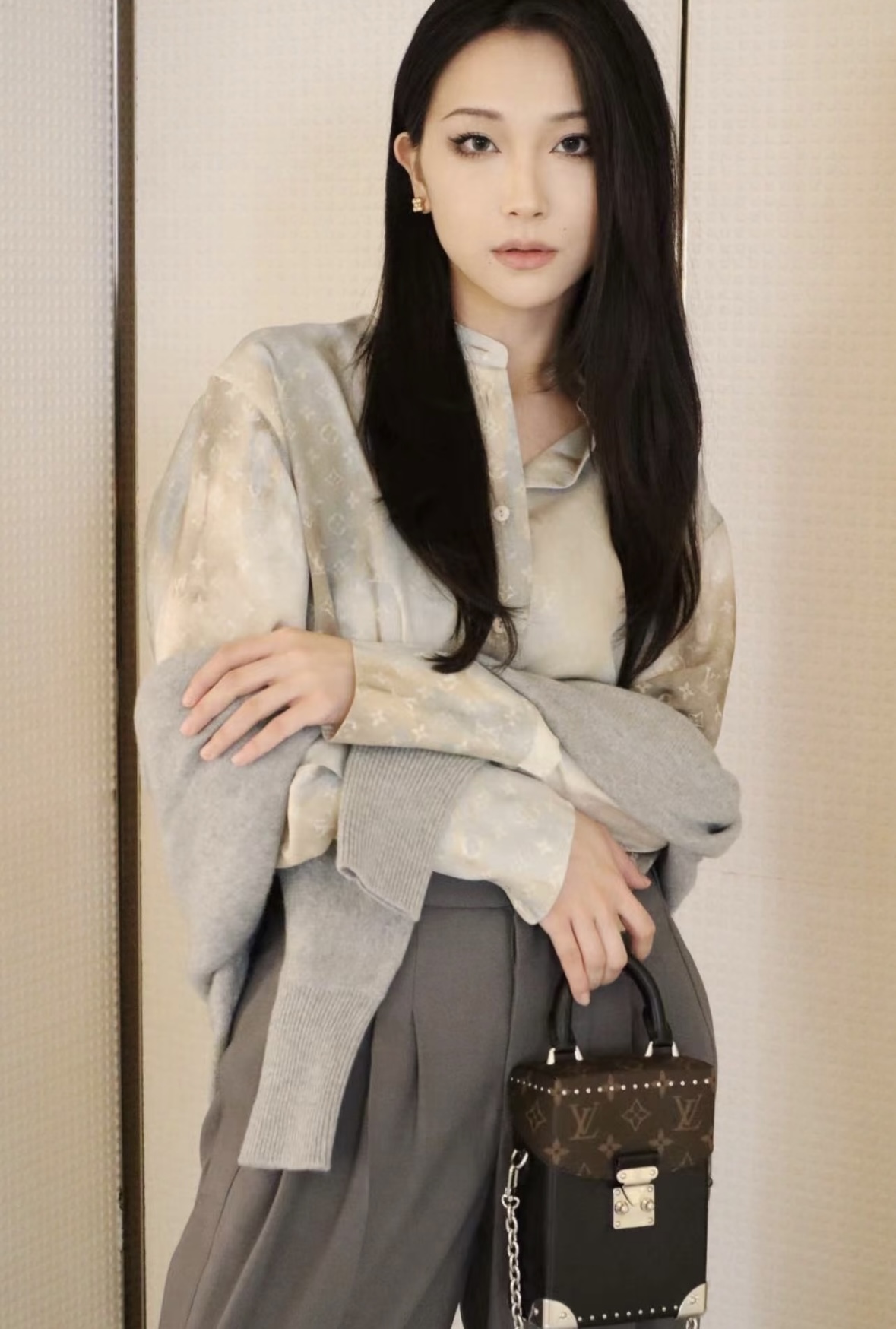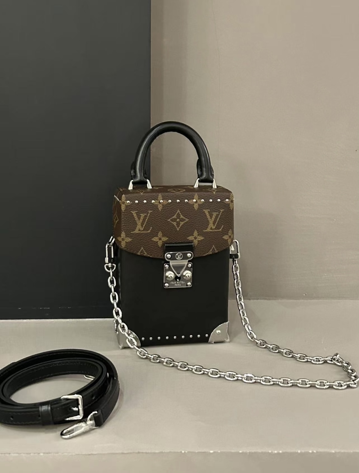 LOUIS VUITTON silver metal accessory hand-held shoulder crossbody bag in brown and black
