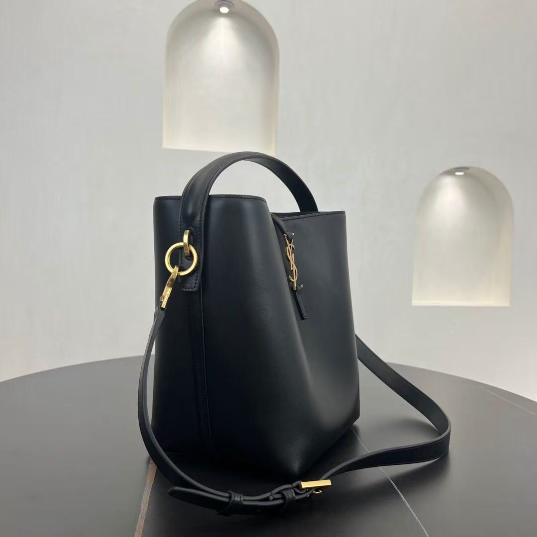 SAINT LAURENT YSL LE37 Gold Logo Hook buckle opening and closing single-shoulder crossbody handbag for women, black