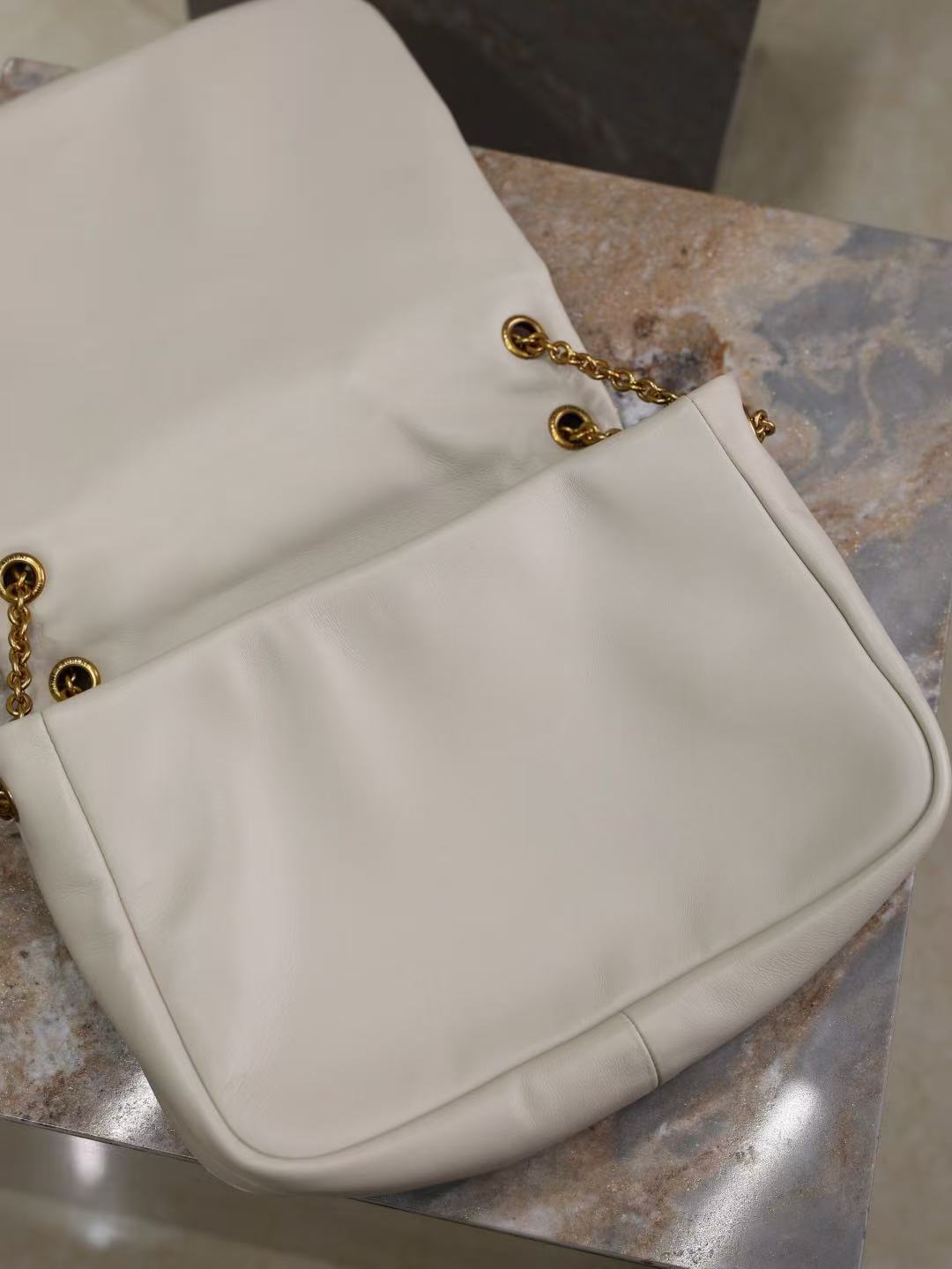 SAINT LAURENT YSL Jamie 4.3 Brand logo bronze accessory shoulder bag Medium-sized women retro white