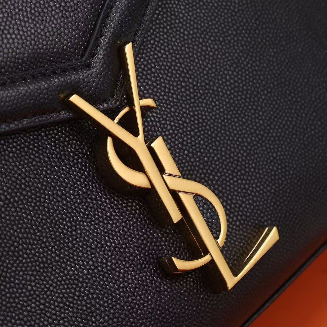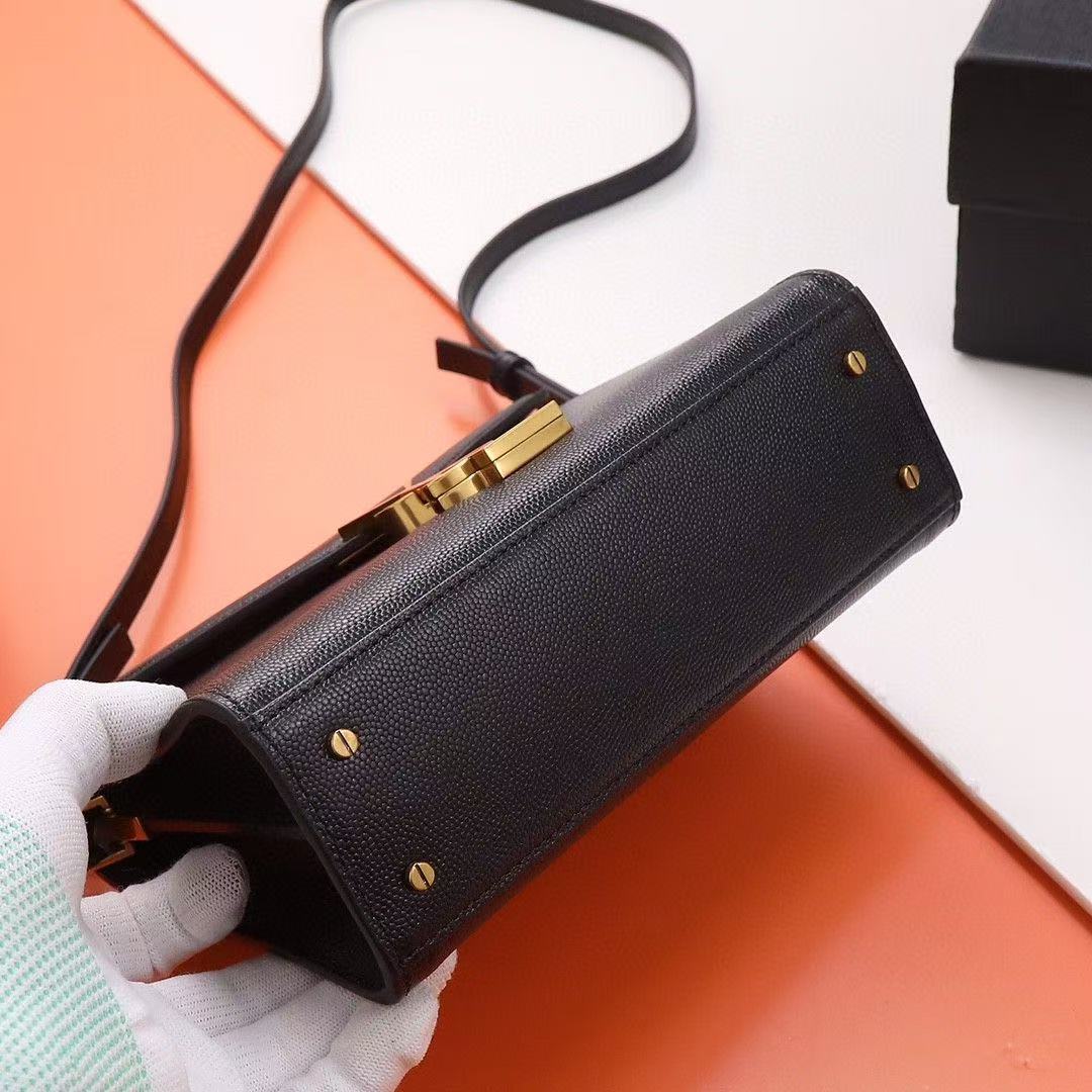 SAINT LAURENT YSL Cassandra distressed gold Logo grain embossed hand-held crossbody single-shoulder bag mini women\'s black