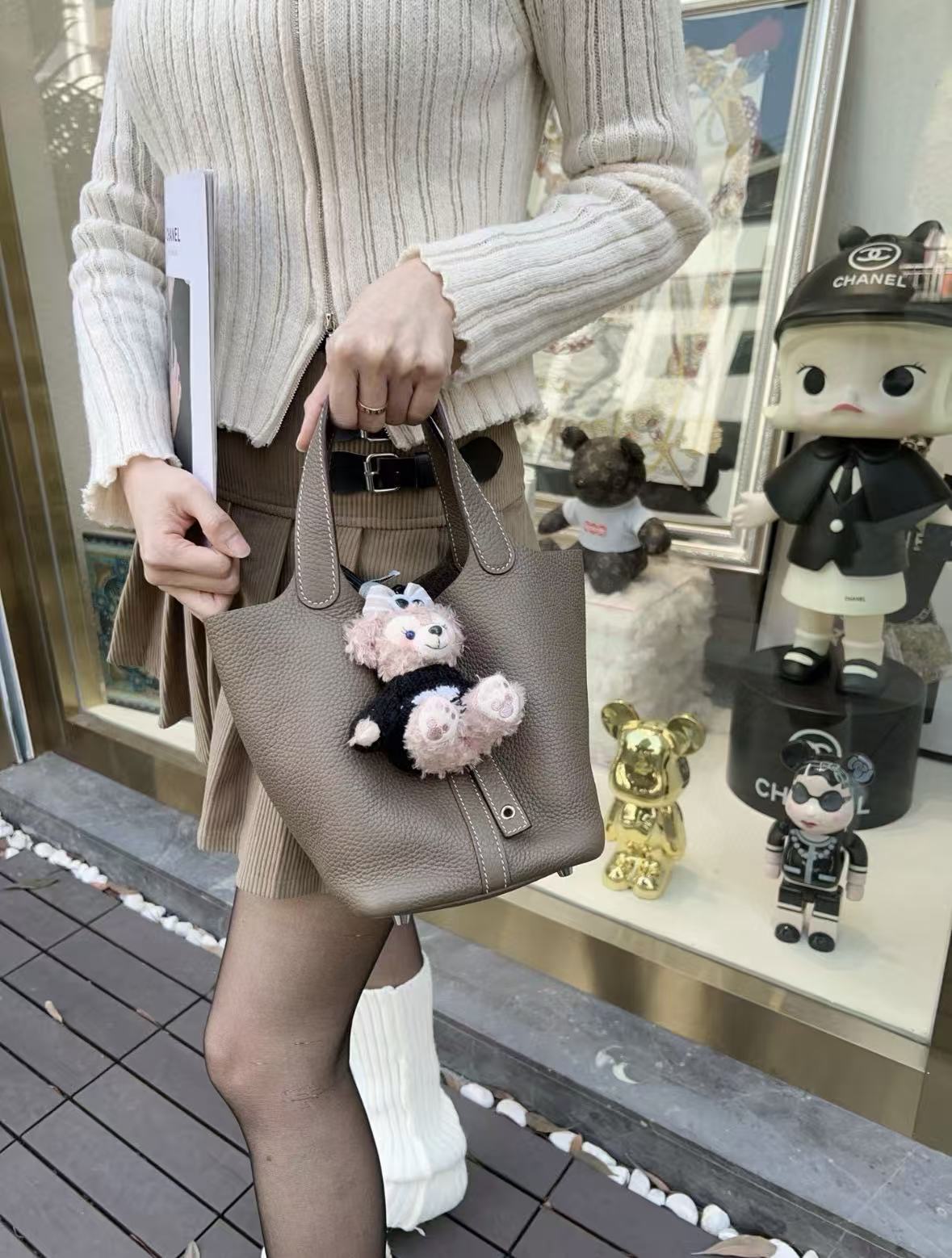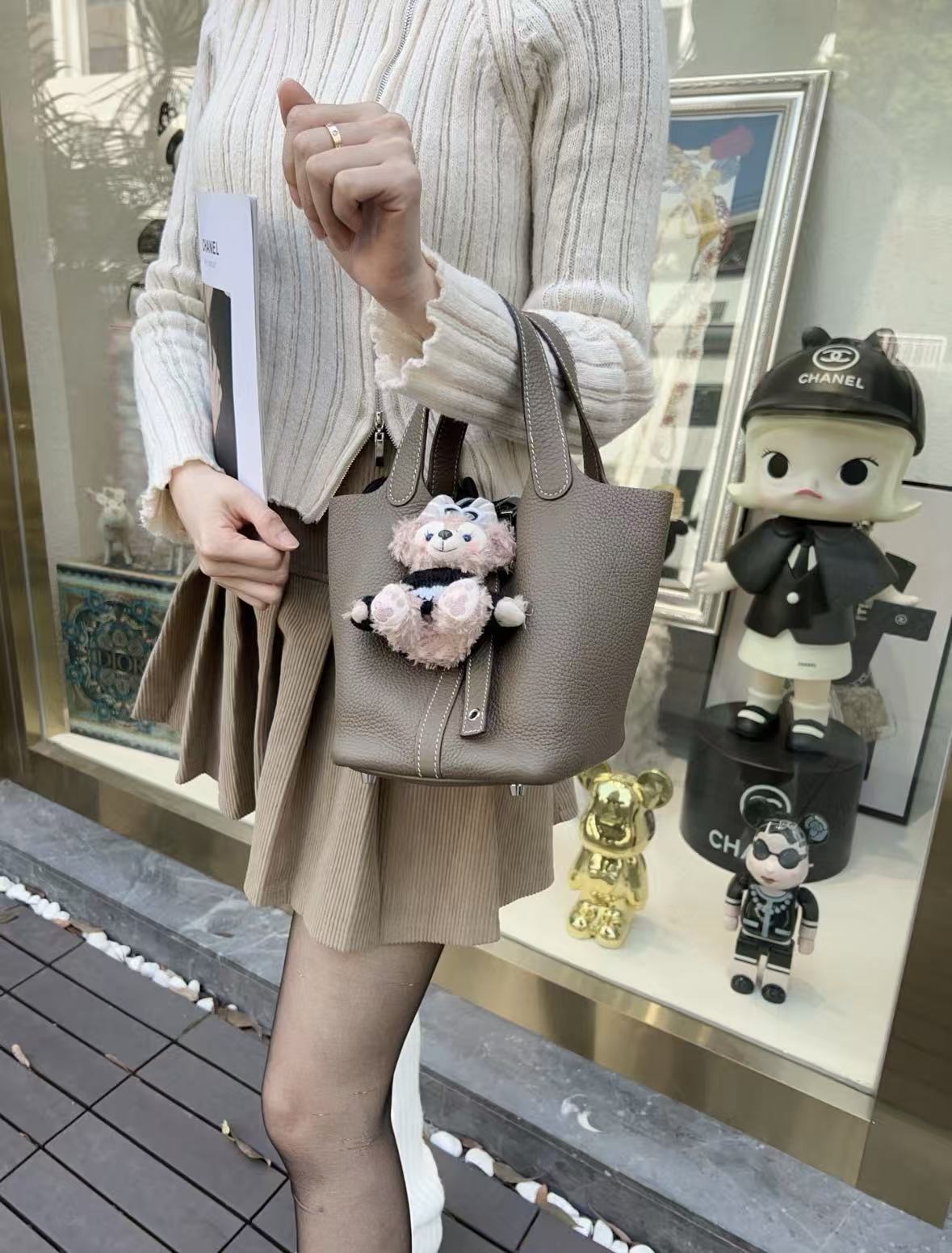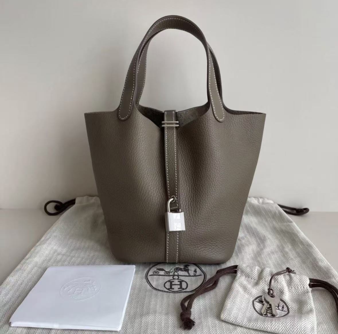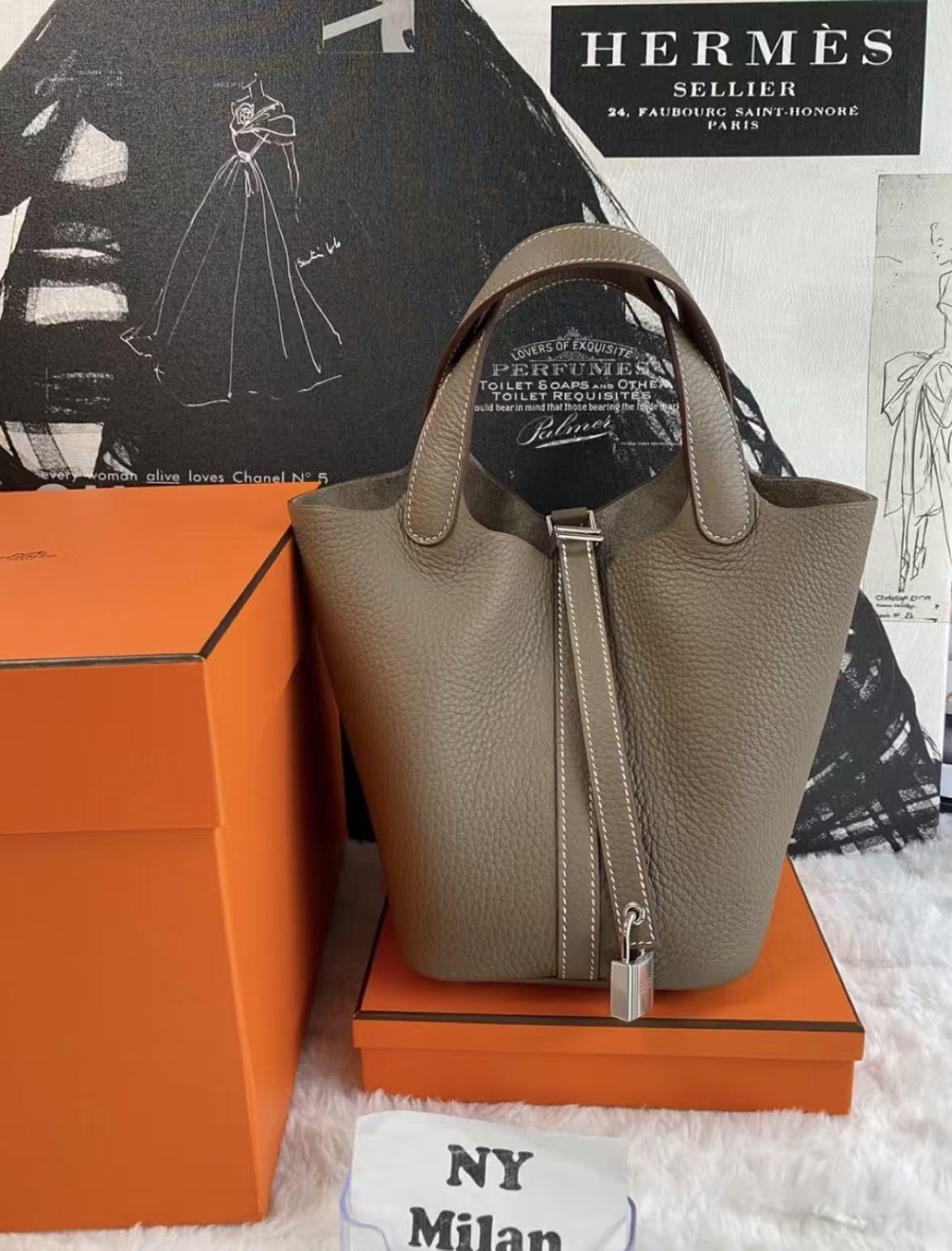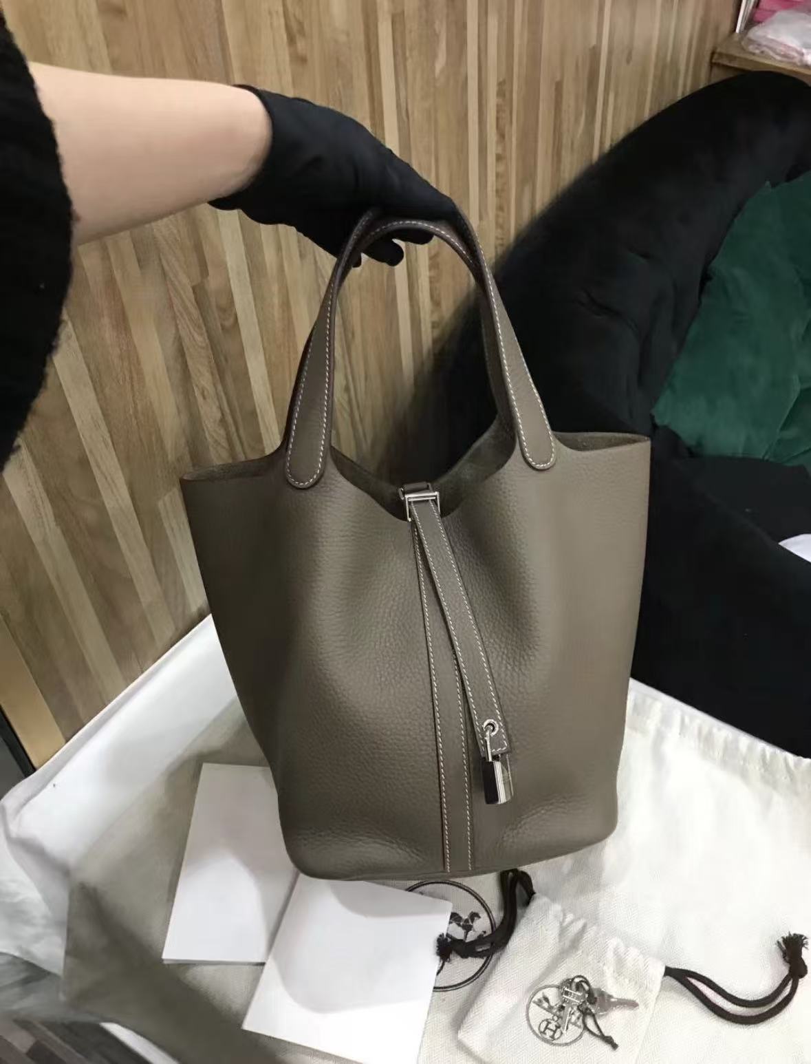 HERMES Picotin Lock 18 silver buckle Etoupe Elephant grey