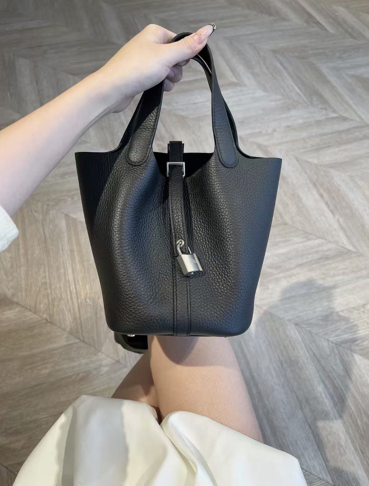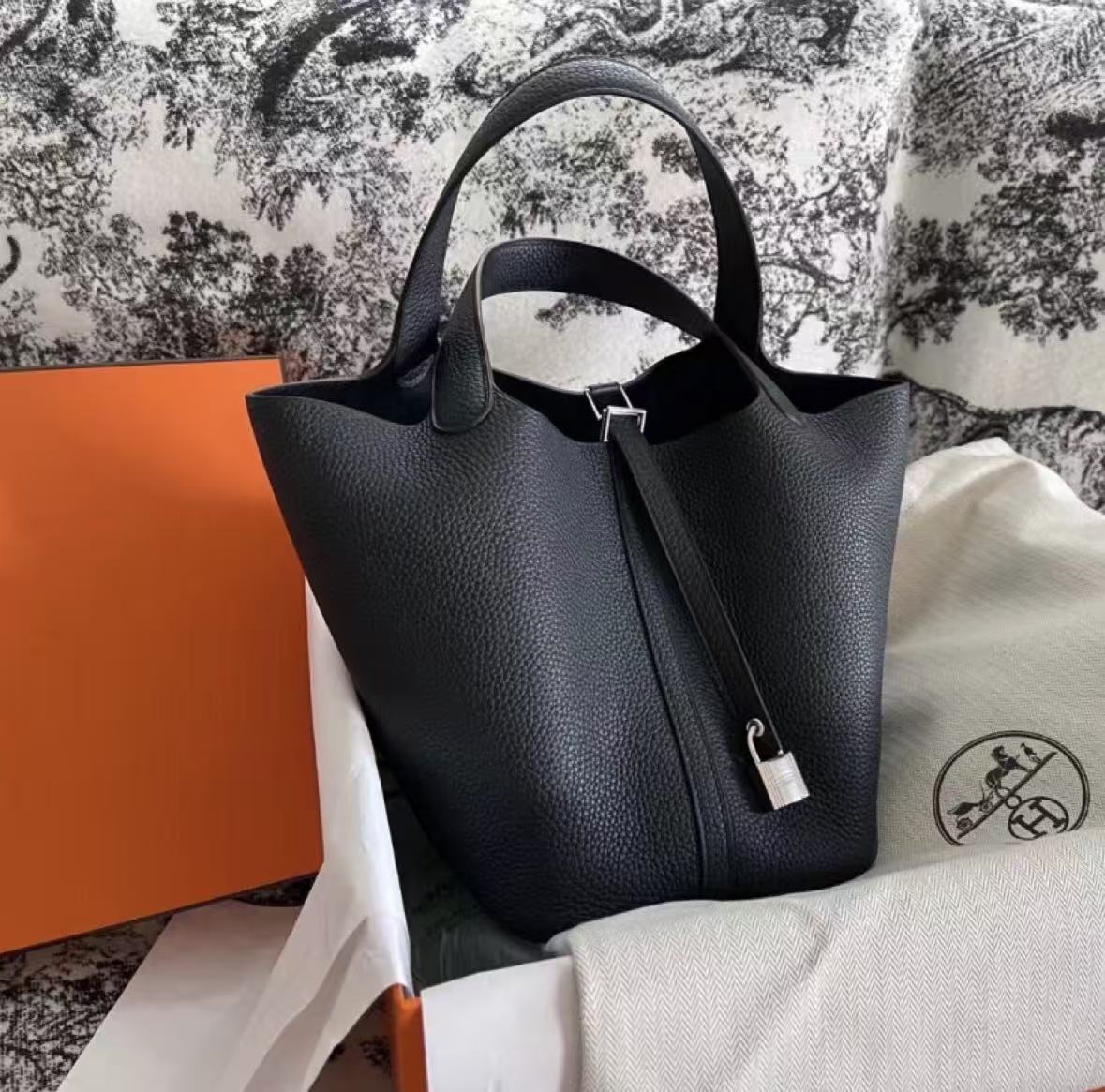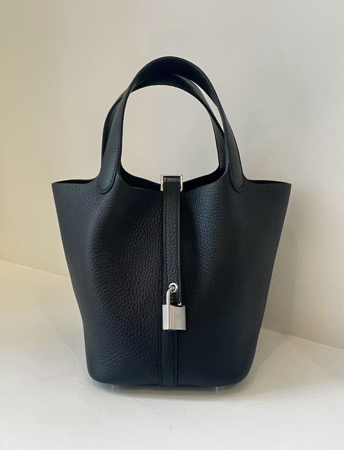 HERMES Picotin Lock 18 Silver buckle Women\'s 89 Noir Black