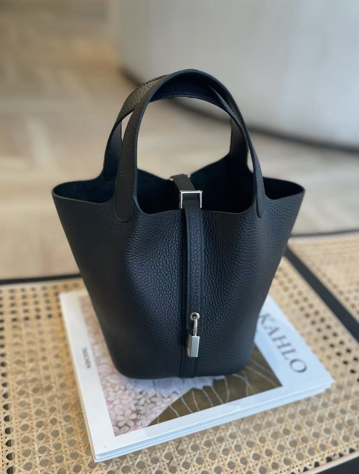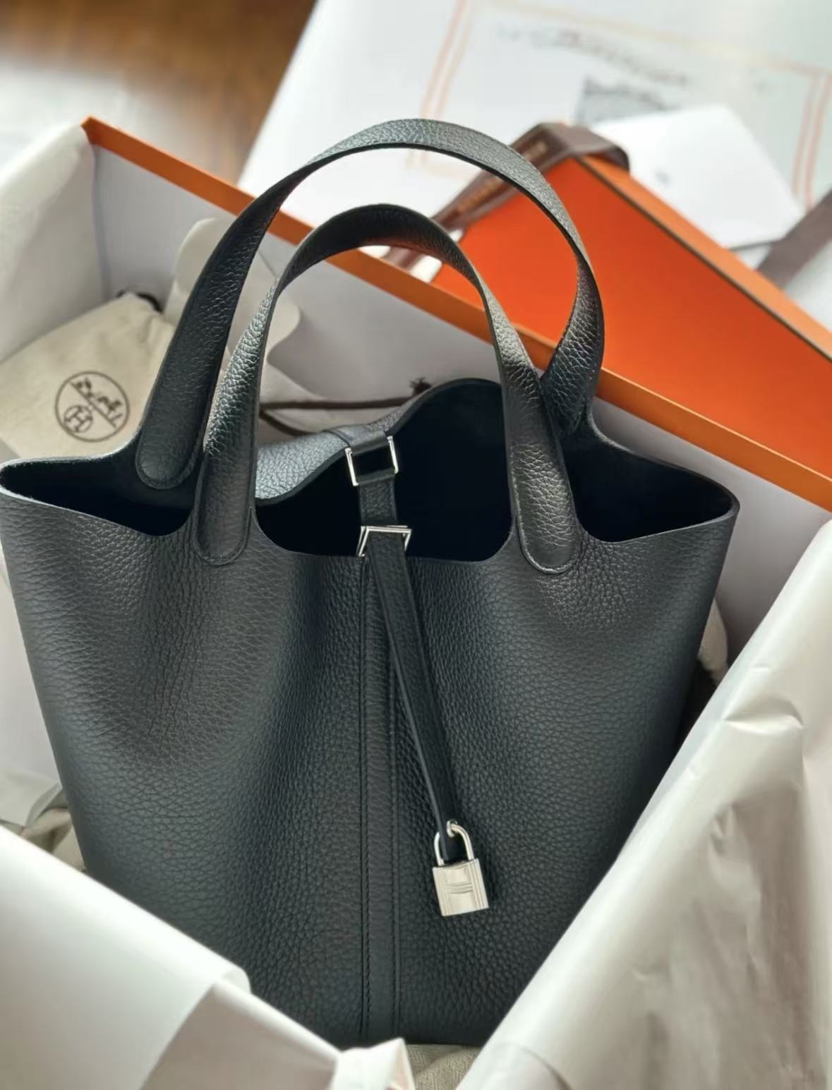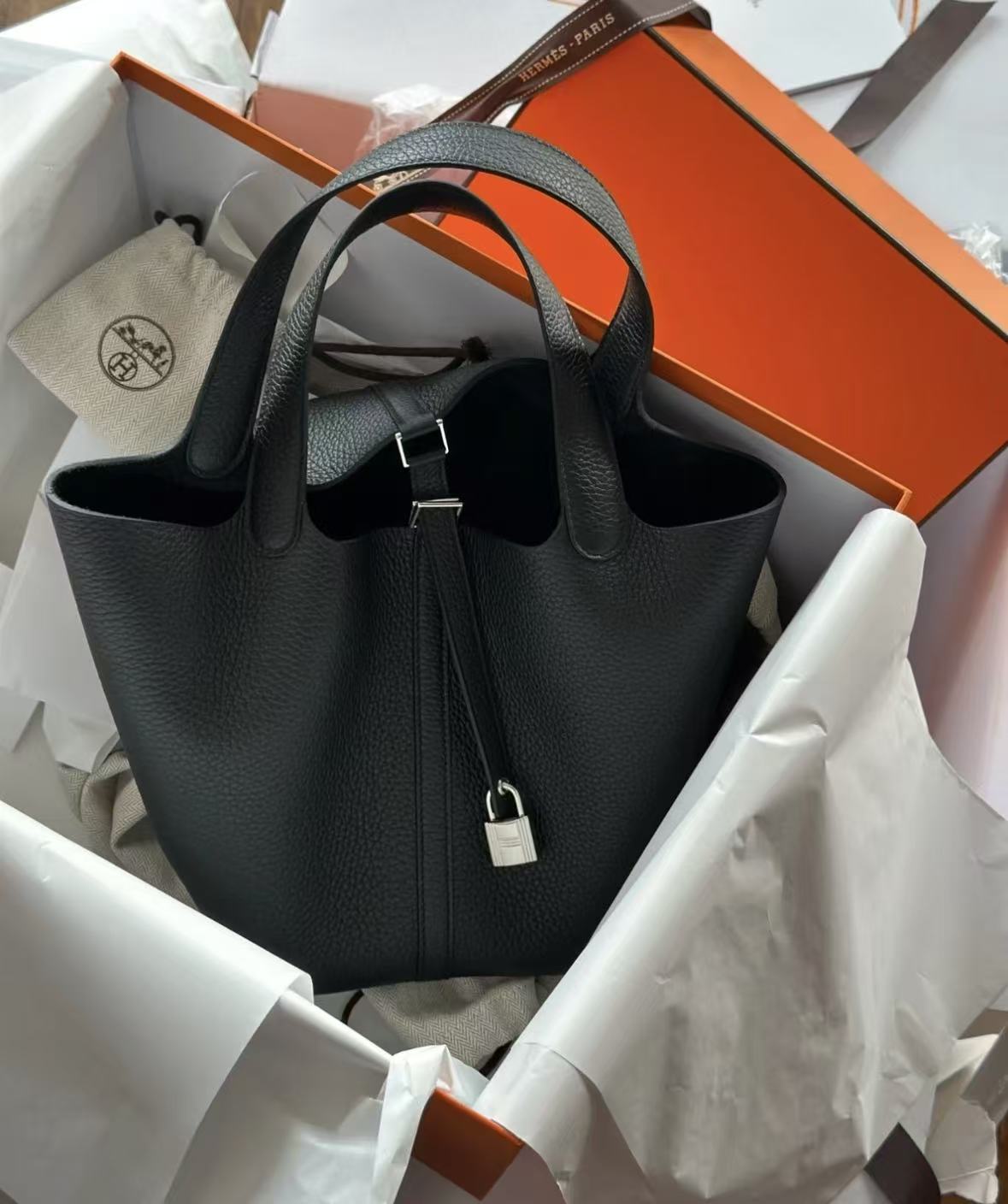 HERMES Picotin Lock 18 Silver buckle Women\'s 89 Noir Black