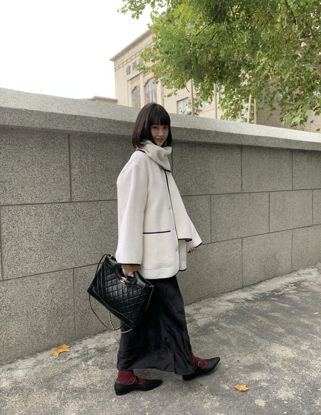 CHANEL Classic Flap CF chain leather interlocking diamond grainy calfskin crossbody shoulder bag medium size apricot color