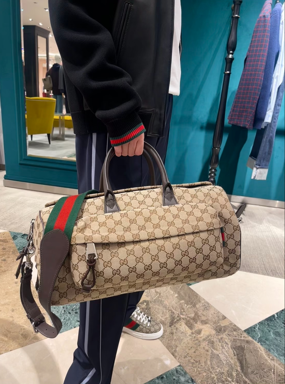 GUCCI single-shoulder crossbody hand-held travel bag, medium size for men, dark brown