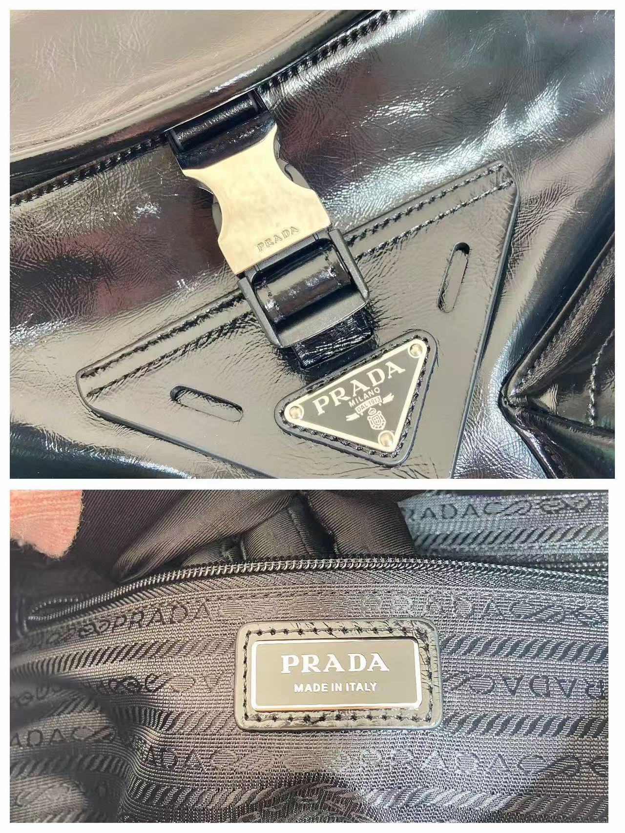 PRADA Explore enamel metal triangular logo zipper open shoulder bag for women, large size