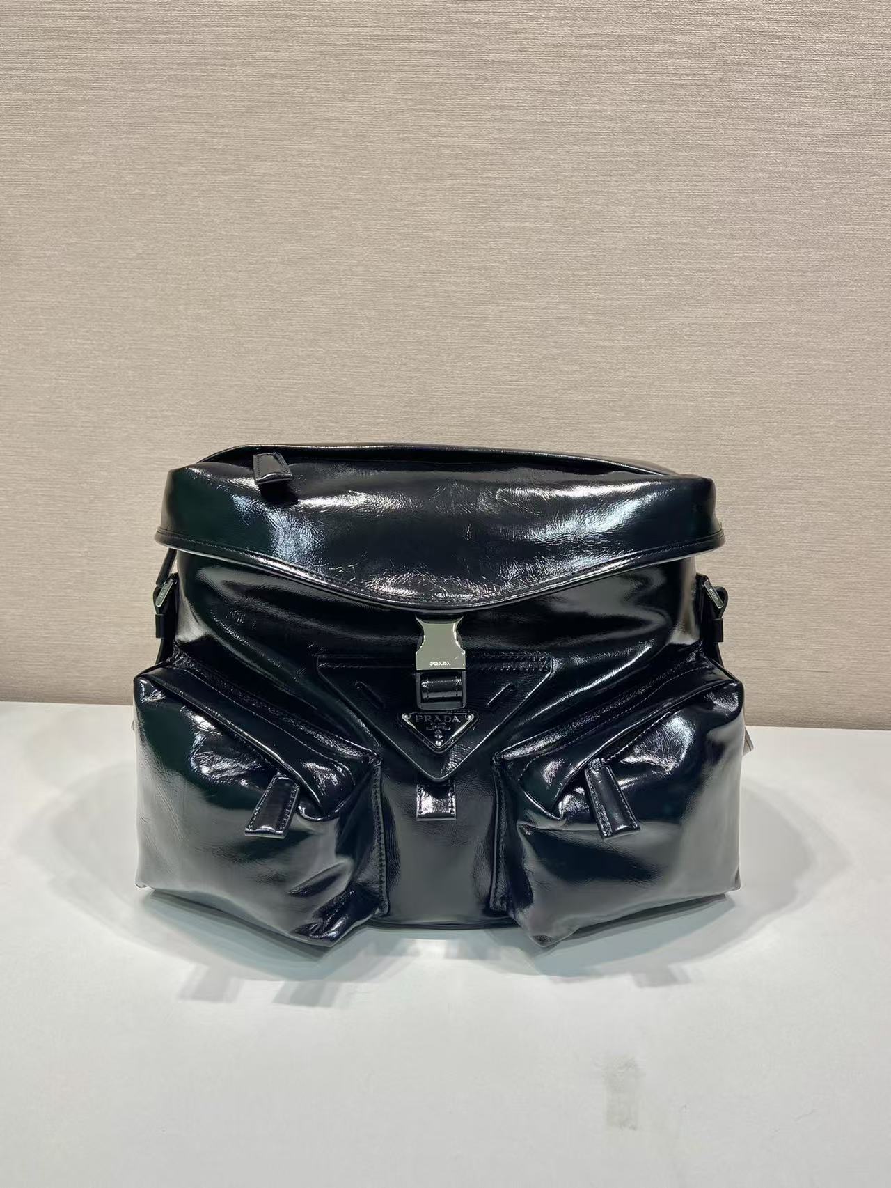 PRADA Explore enamel metal triangular logo zipper open shoulder bag for women, large size PRADA Explore enamel metal triangular logo zipper open shoulder bag for women, large size