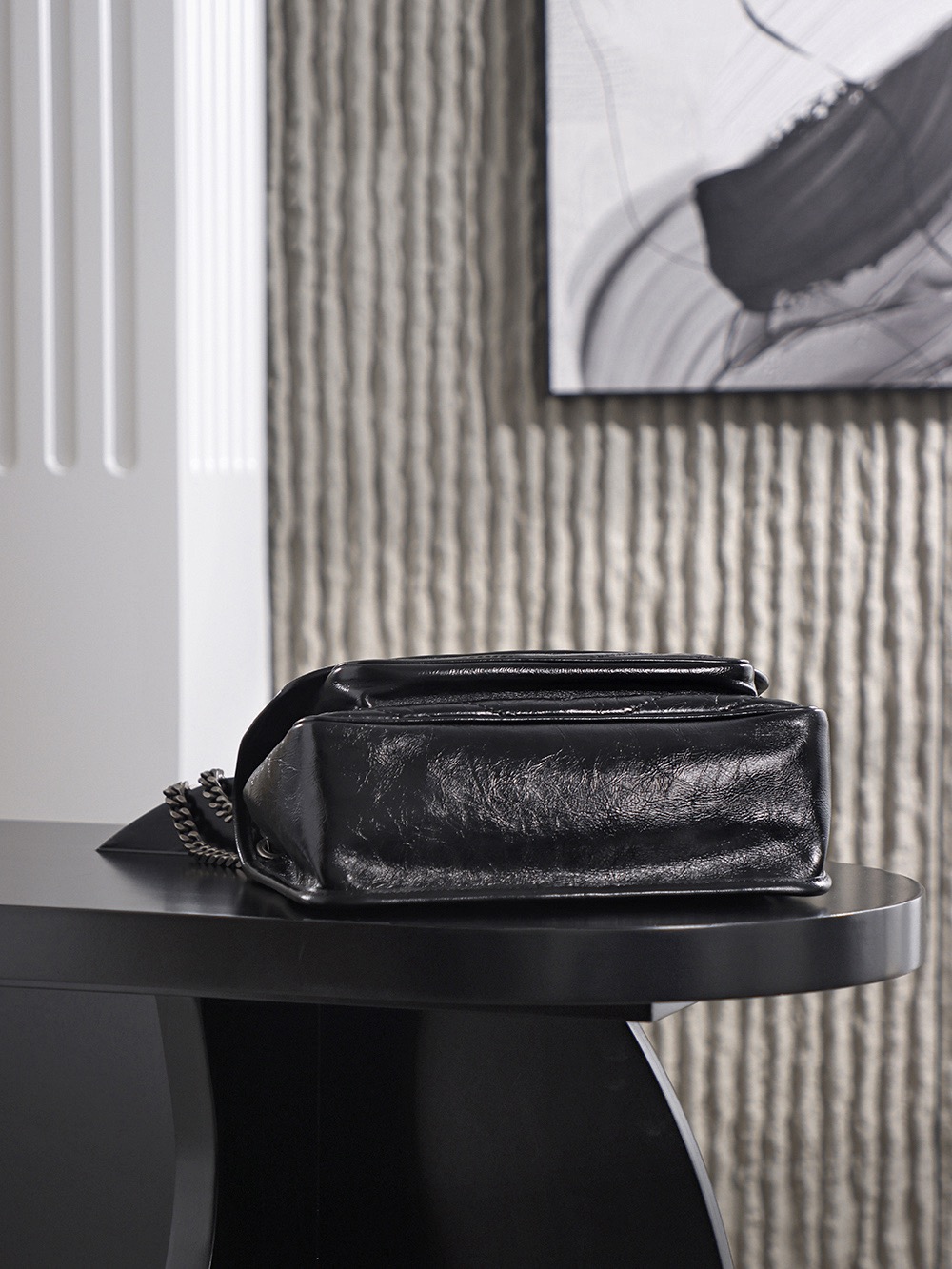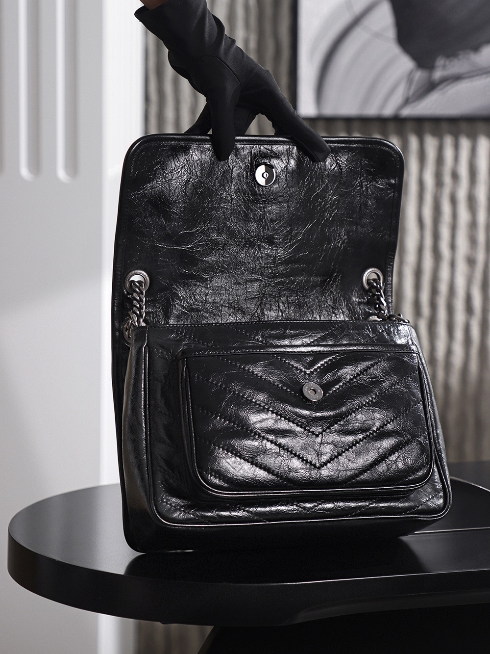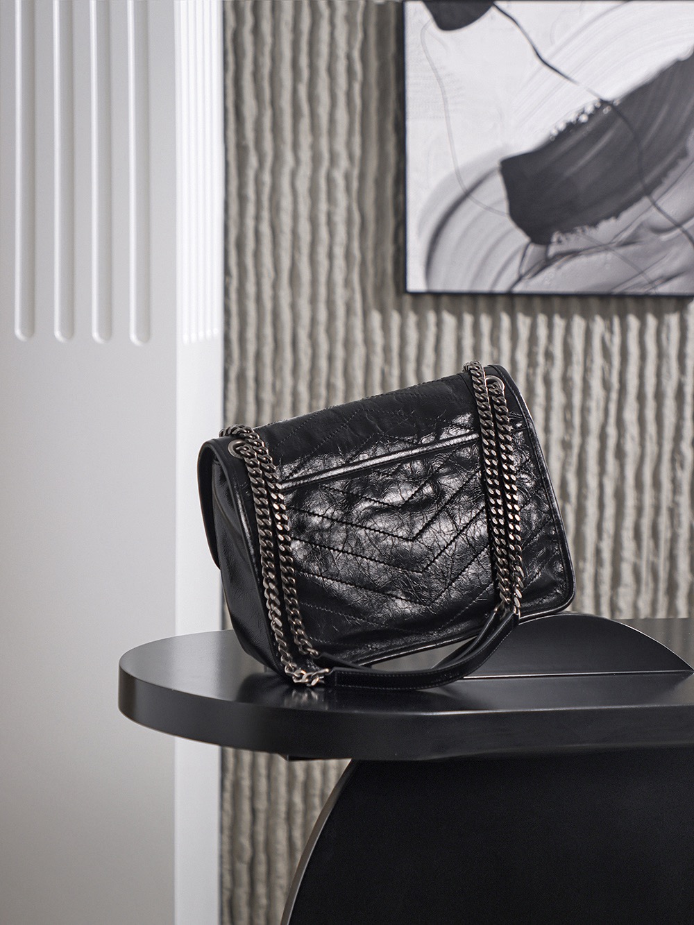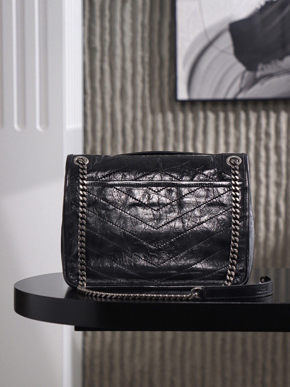 SAINT LAURENT YSL Niki silver chain black Logo retro pleated wandering bag crossbody single-shoulder bag medium size black