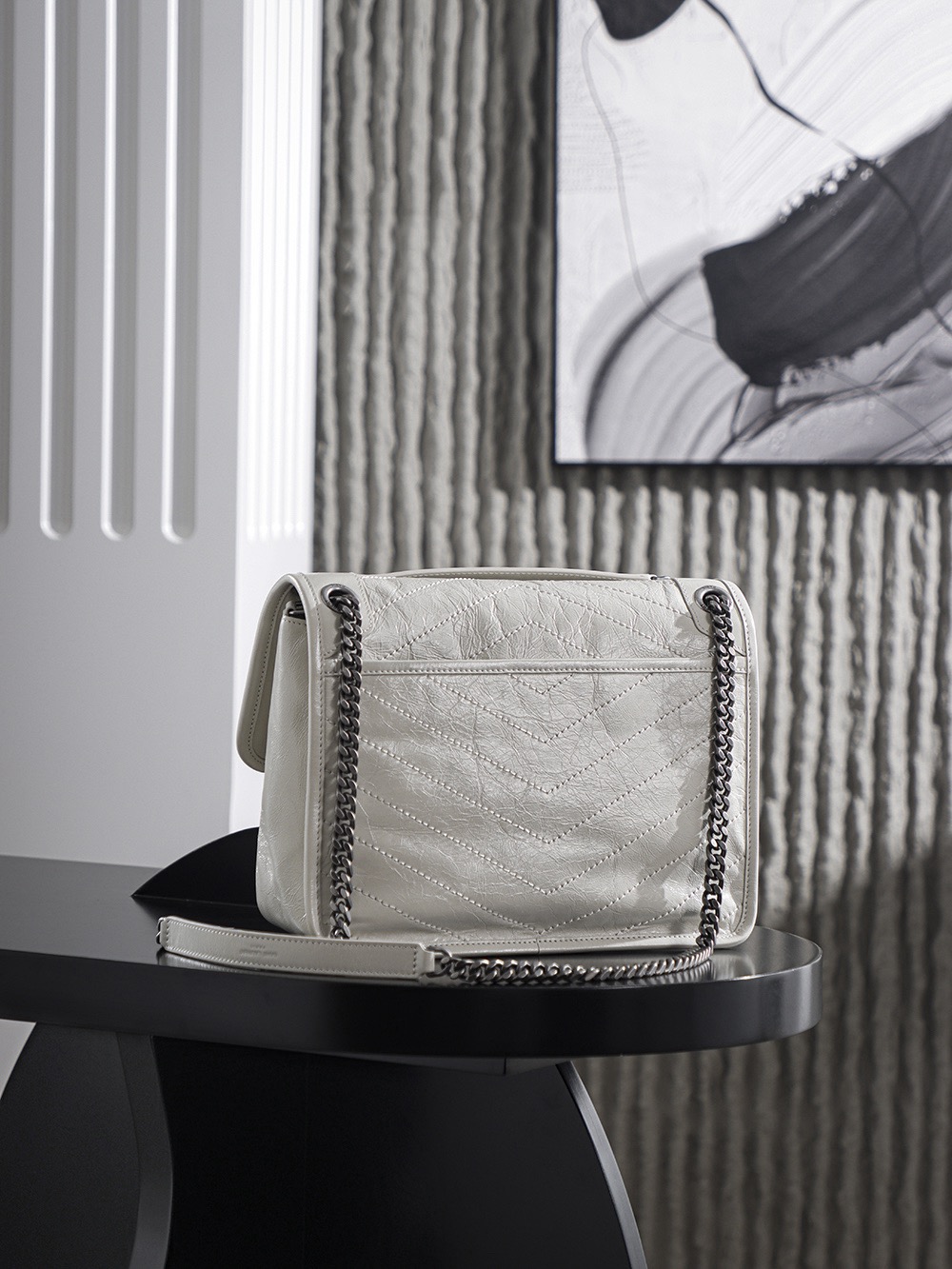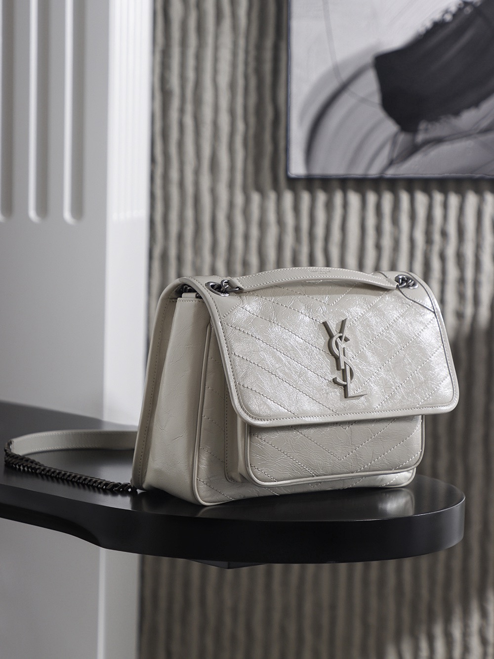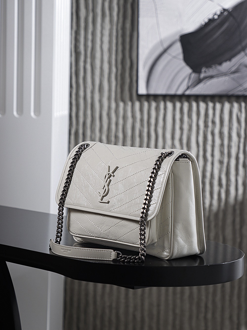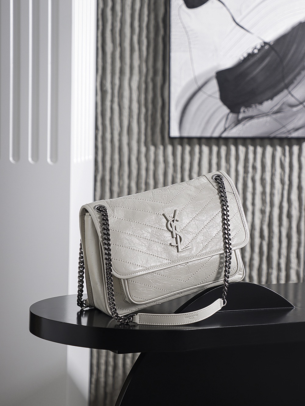SAINT LAURENT YSL Niki white Logo retro pleated leather wandering bag Chain bag crossbody single-shoulder bag medium size white