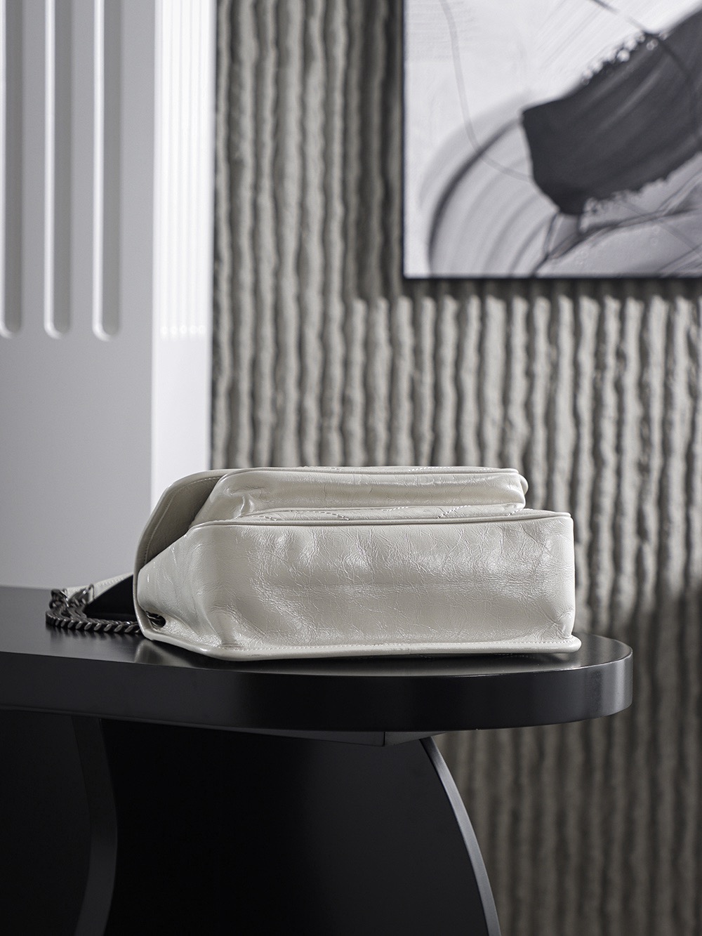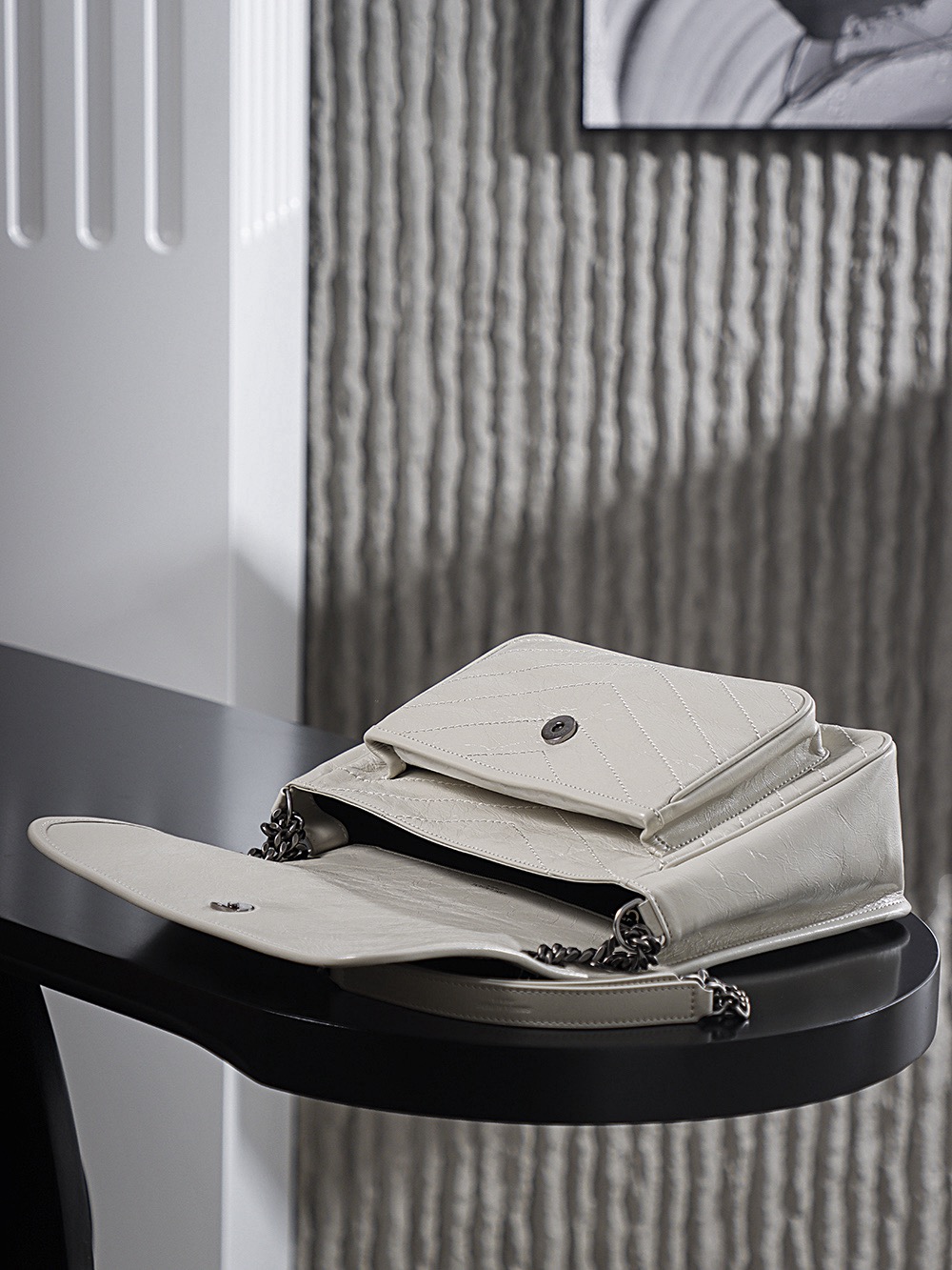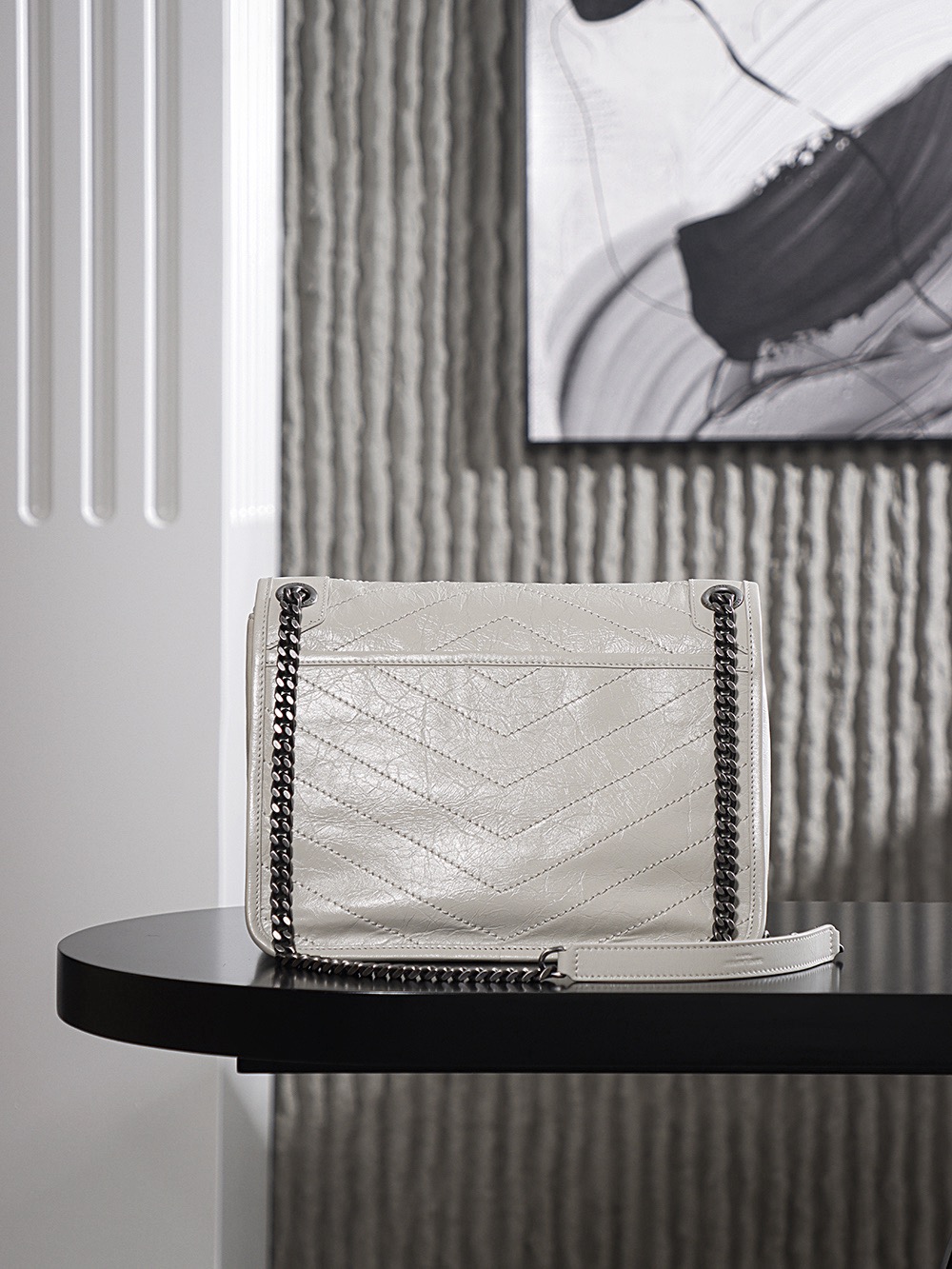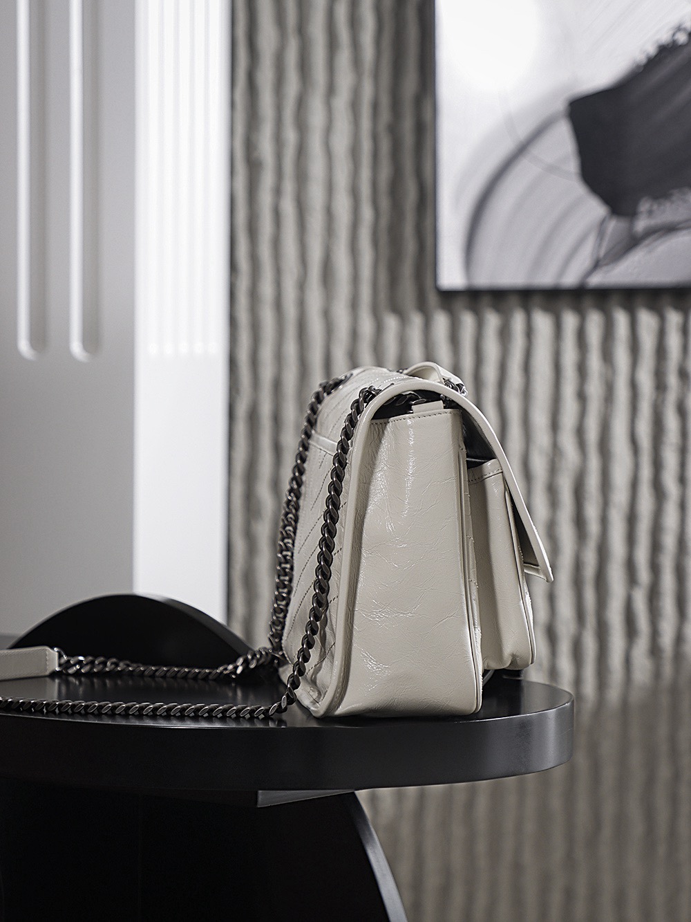 SAINT LAURENT YSL Niki white Logo retro pleated leather wandering bag Chain bag crossbody single-shoulder bag medium size white