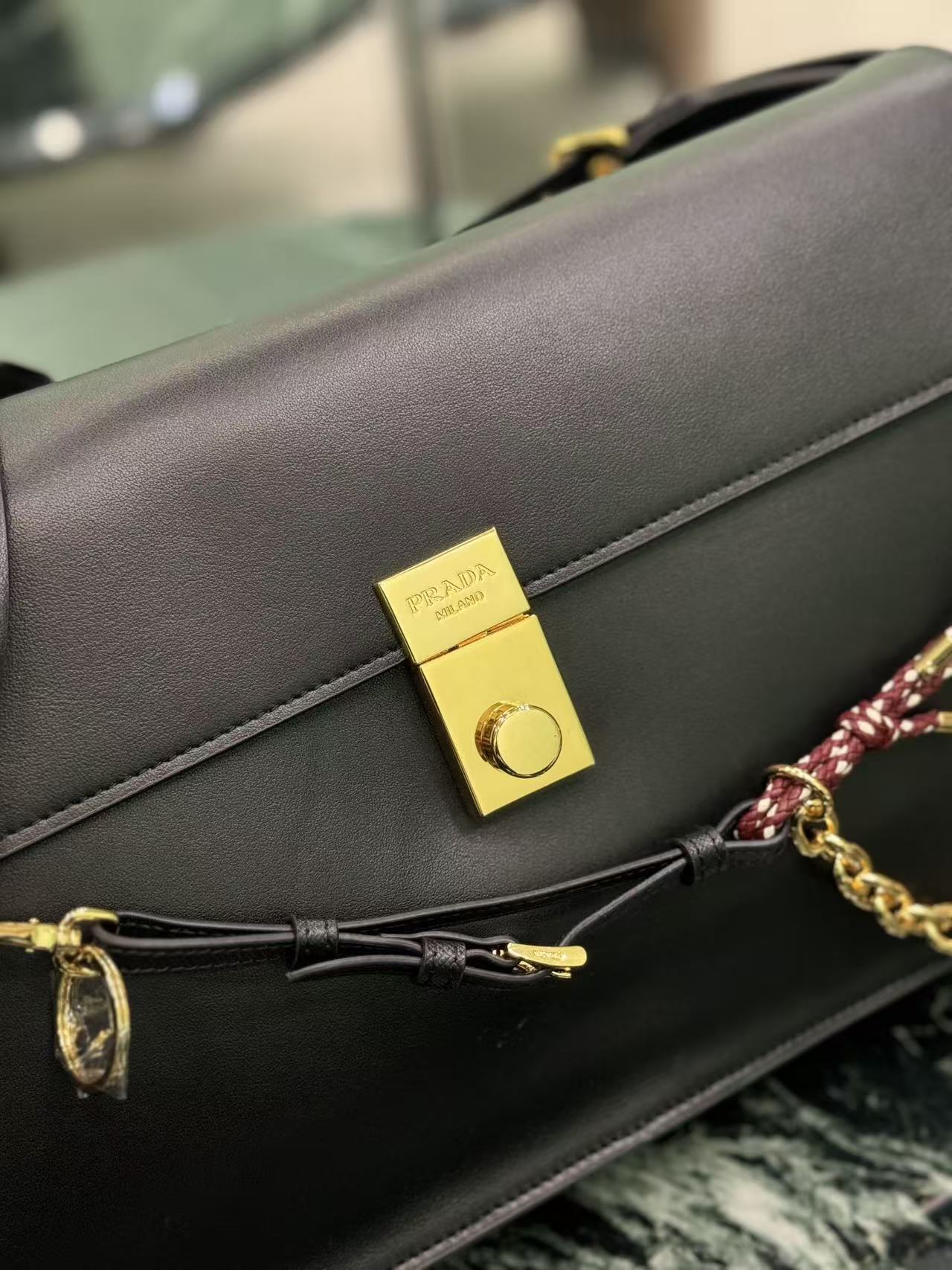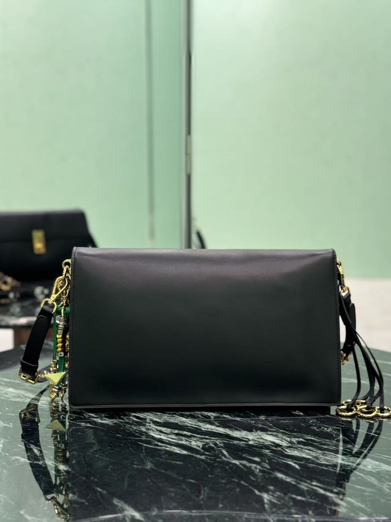 PRADA Soft Sound metal part snap flap opening and closing crossbody single-shoulder bag, large size for women, black