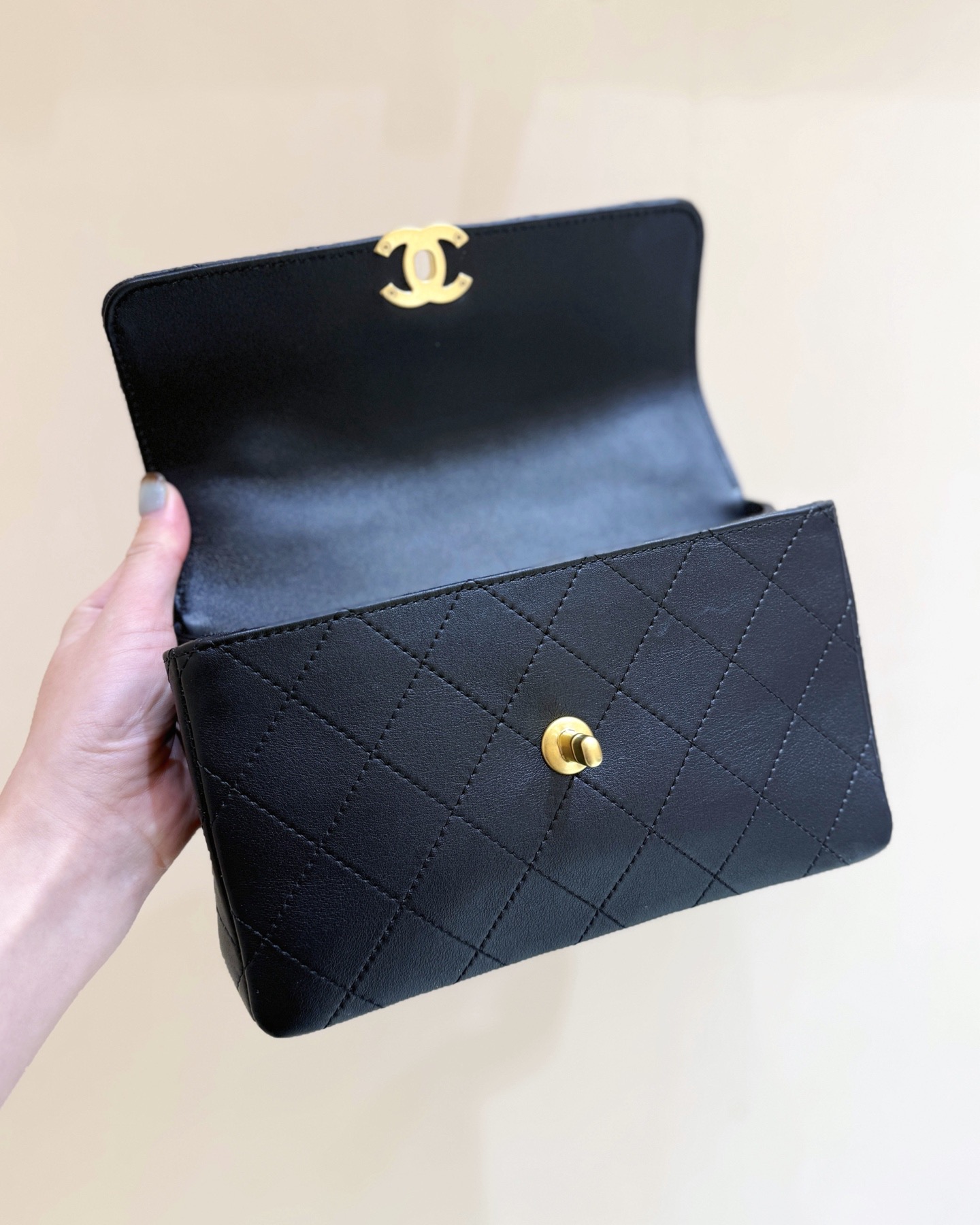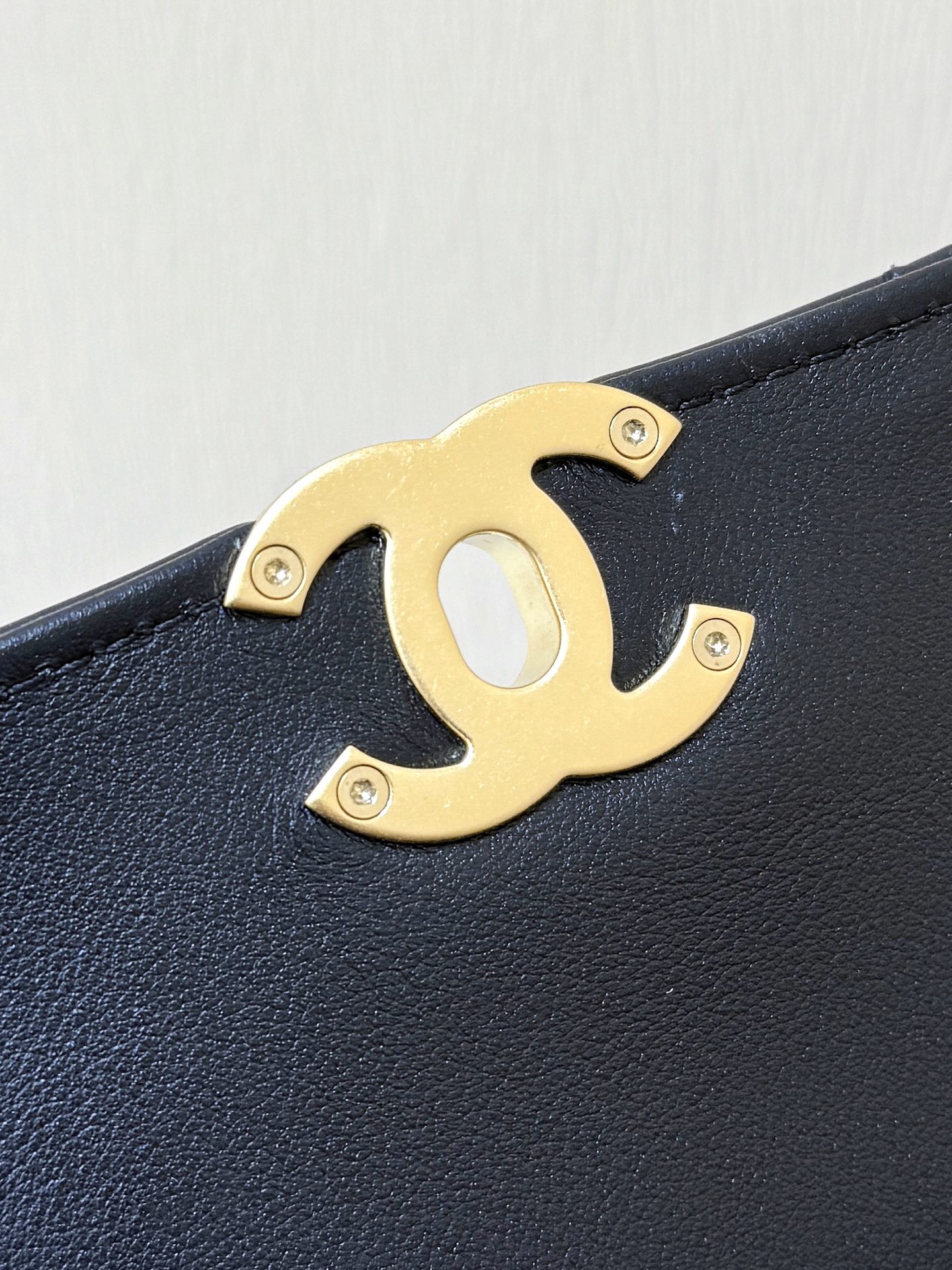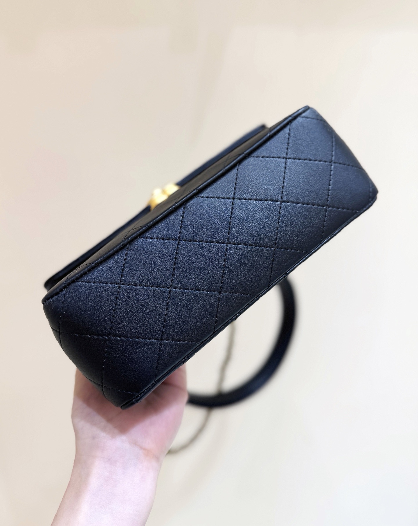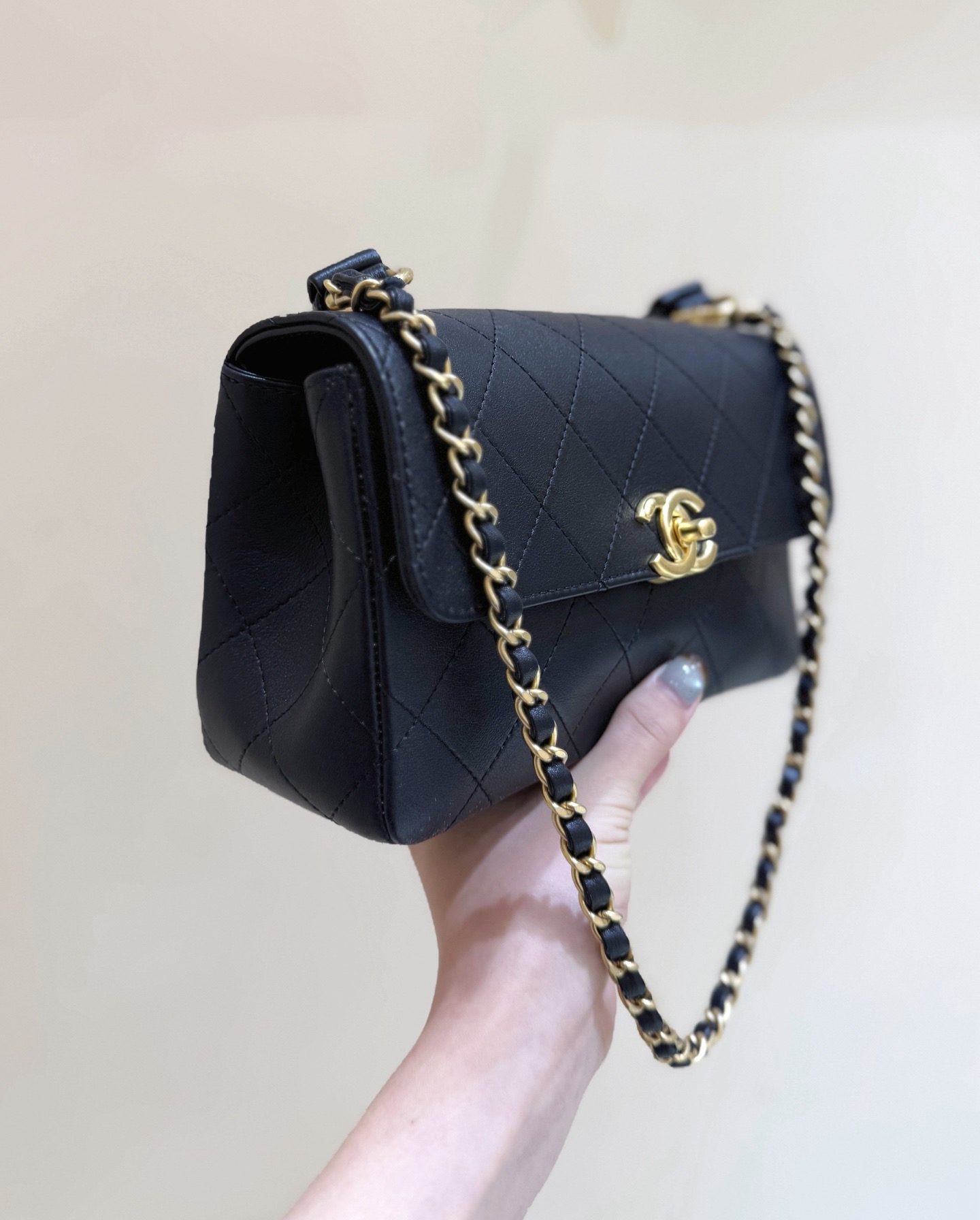 CHANEL 26C gold label Double C Logo diamond-quilted leather chain-through calfskin single-shoulder bag, small black