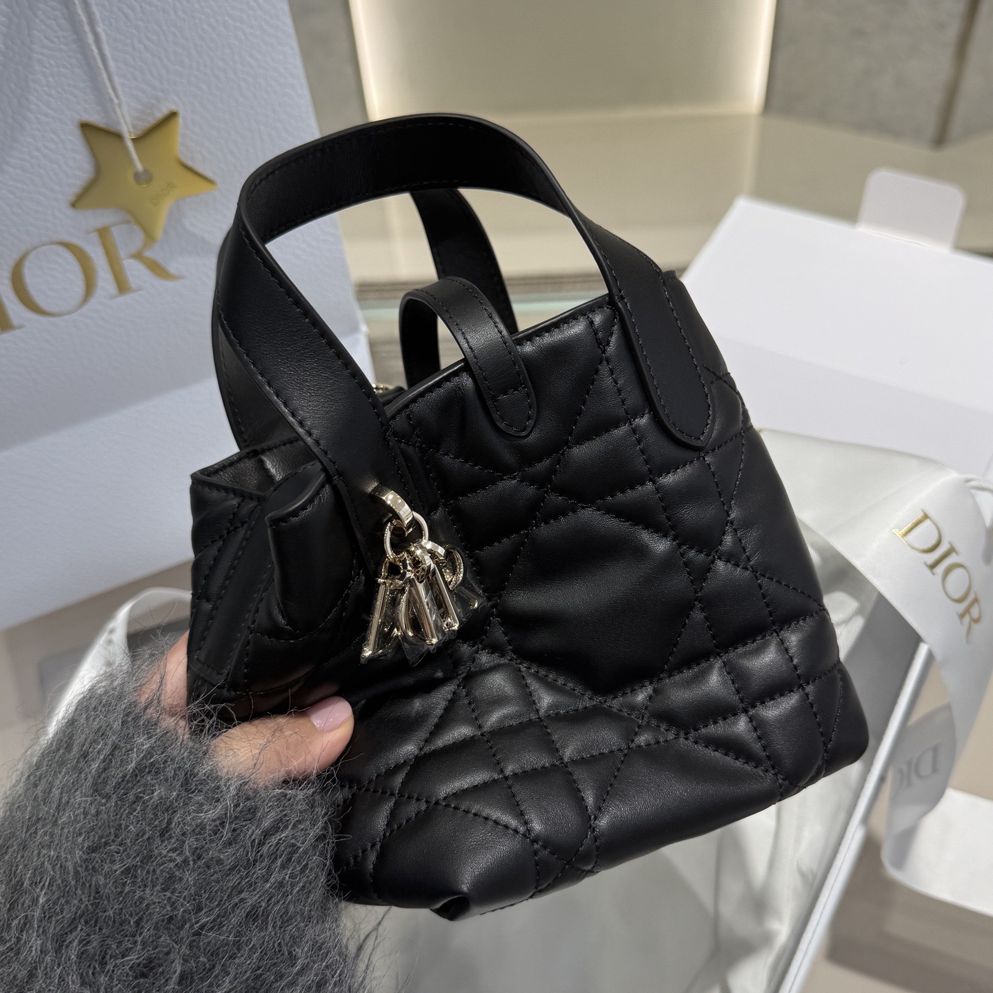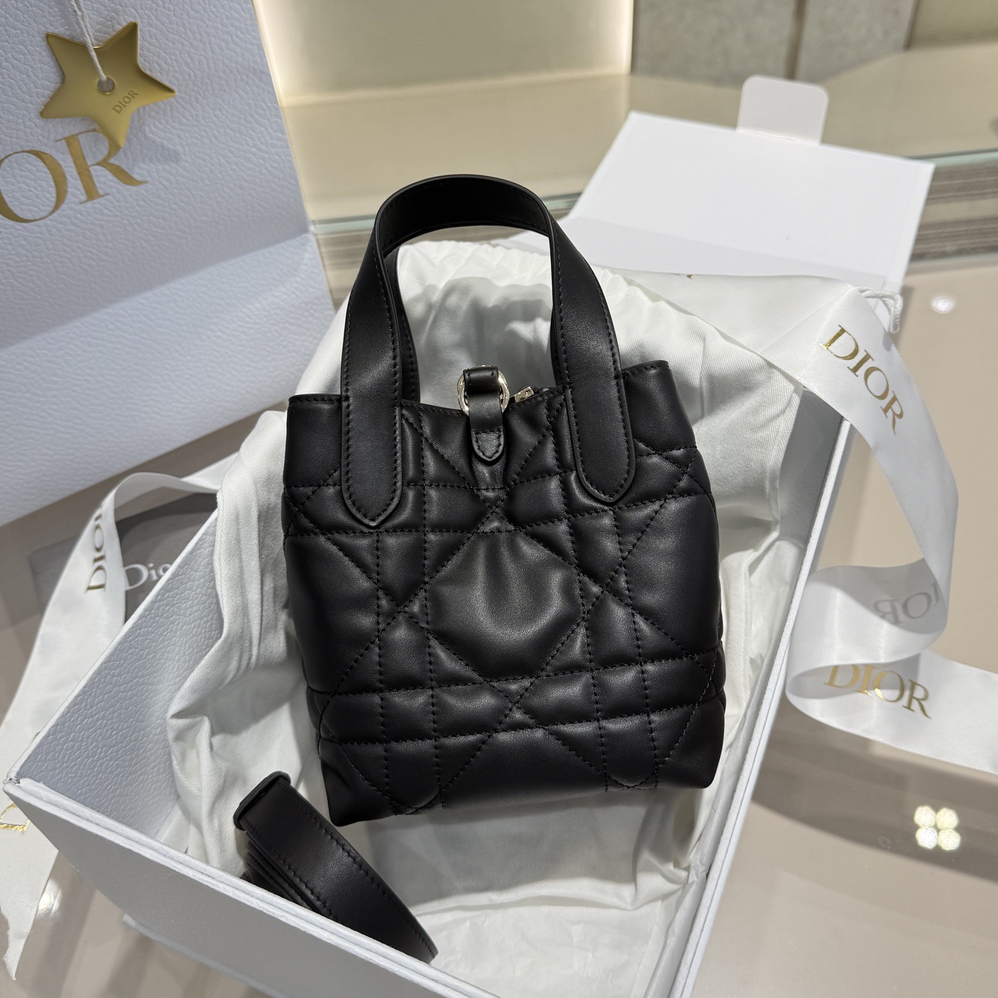DIOR Toujours light gold metal CD Lock buckle detachable shoulder strap Tote bag Tote bag shopping bag single-shoulder handbag regular women\'s style black