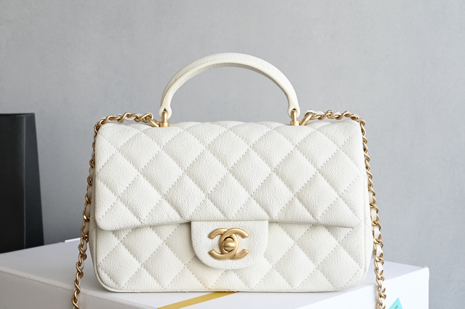CHANEL Classic Flap CF CF collection diamond-shaped leather chain crossbody single shoulder grain caviar cowhide with metal handbag white