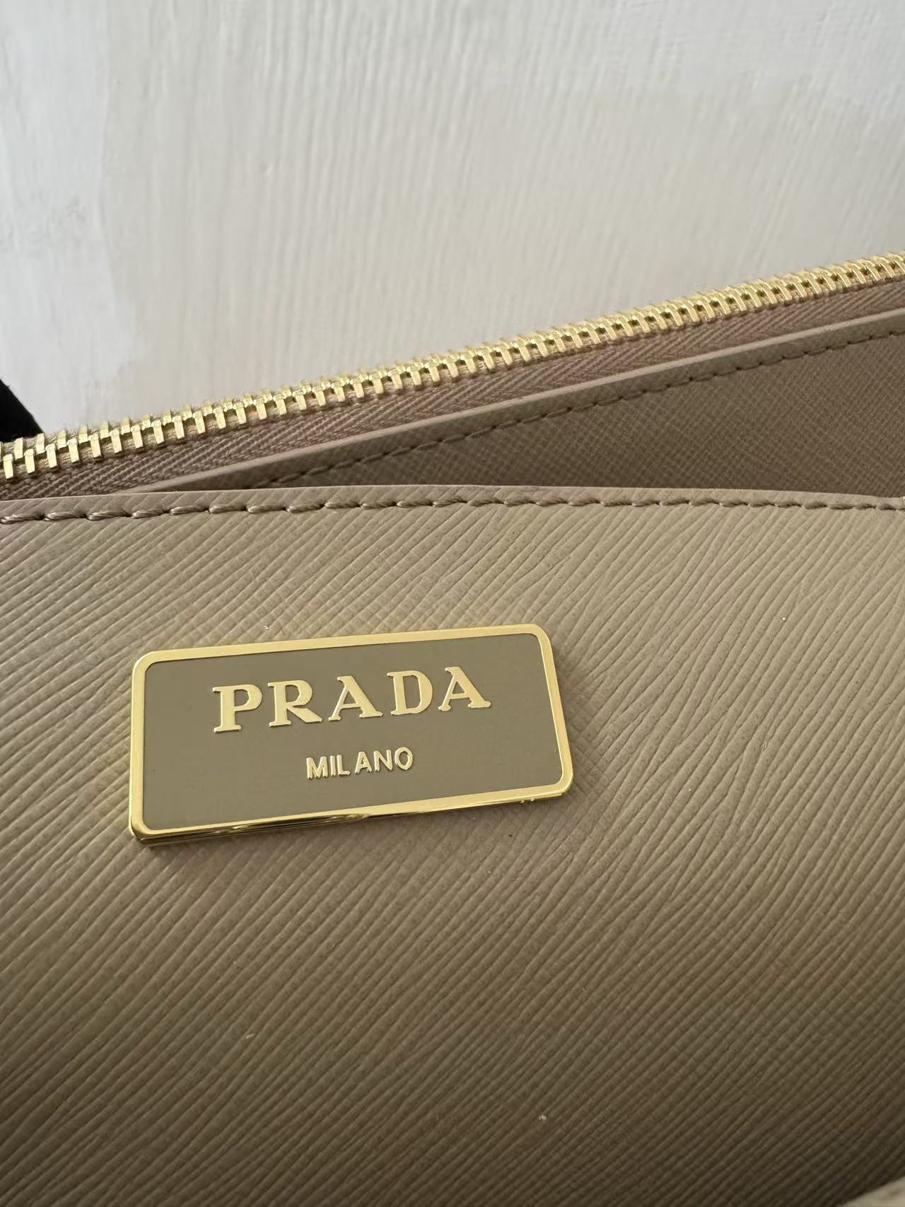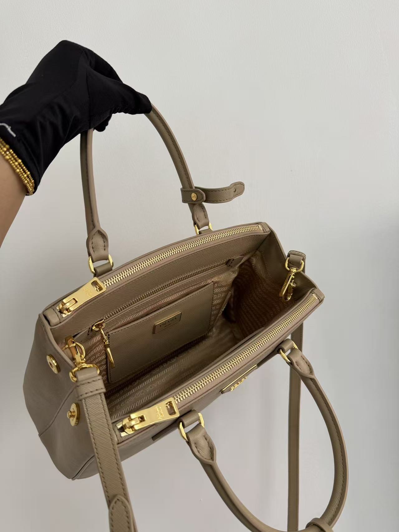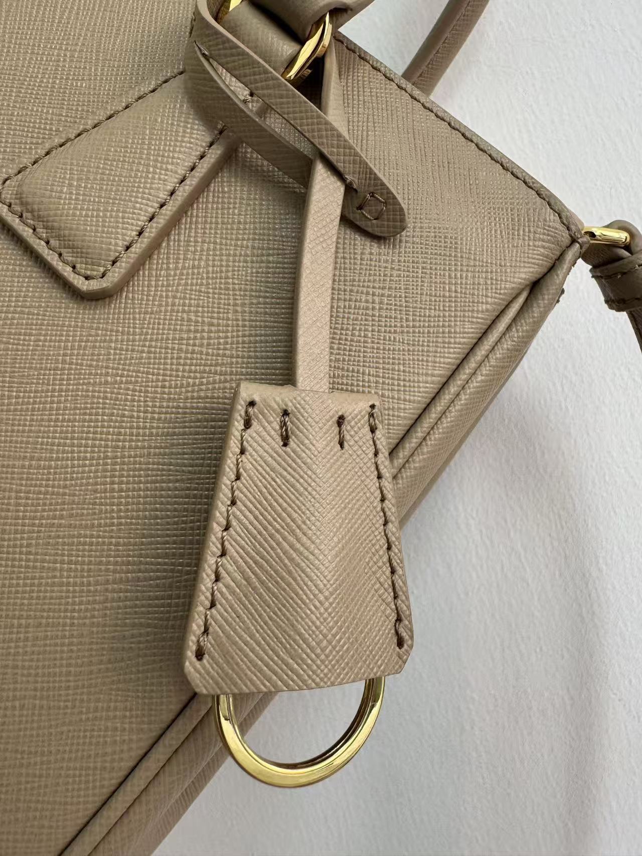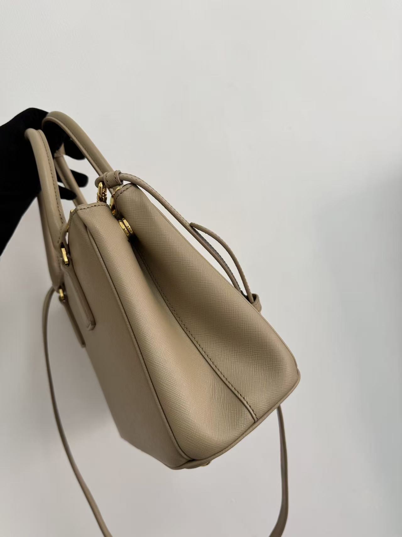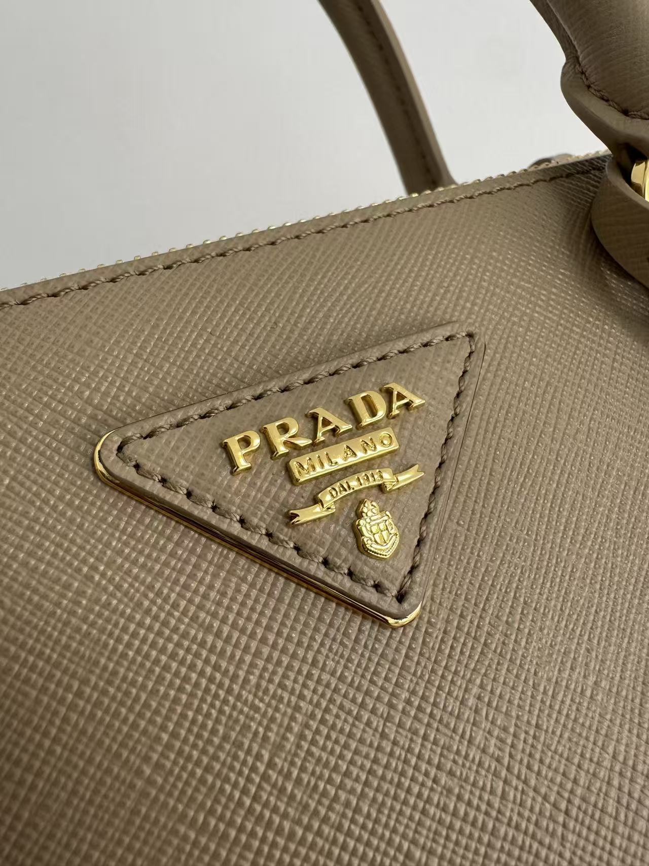 PRADA Galleria detachable and adjustable shoulder strap Logo letter handbag, medium-sized women\'s clay grey