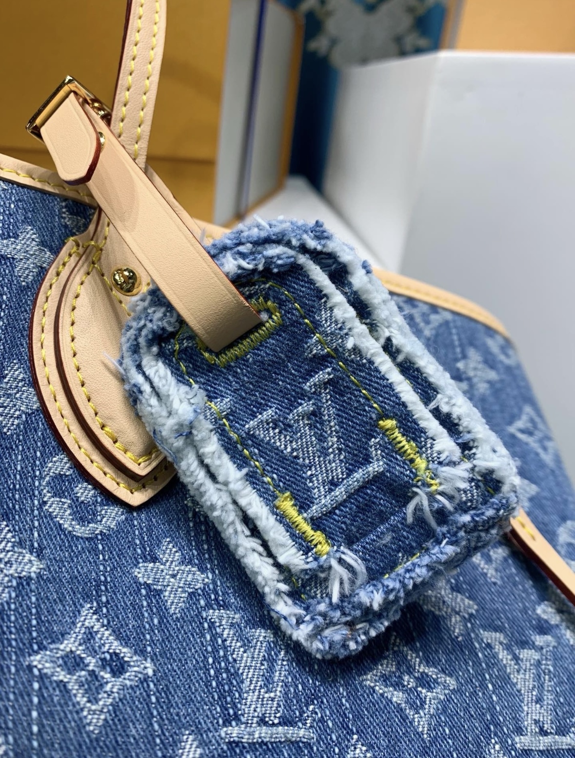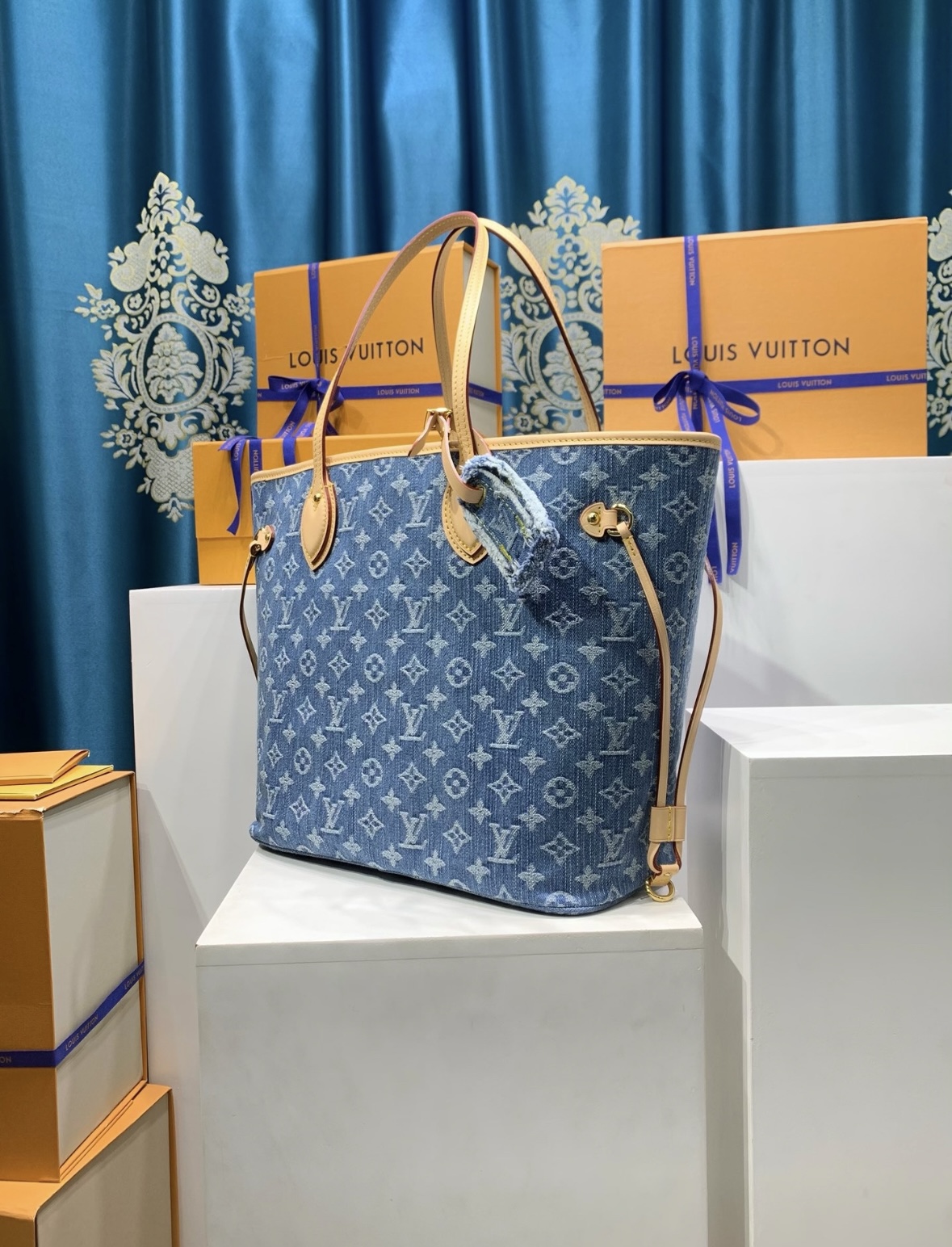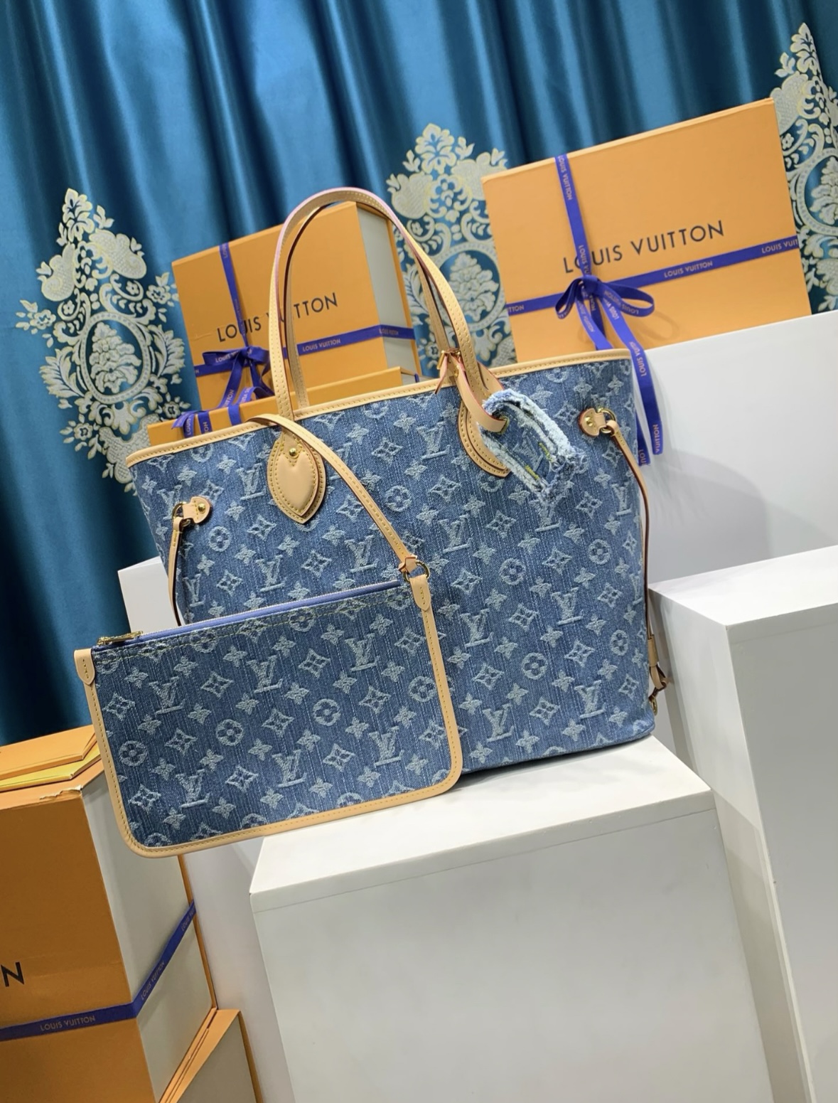 LOUIS VUITTON NEVERFULL Logo printed Tote bag, shopping bag, hand bag, shoulder bag, medium size, blue