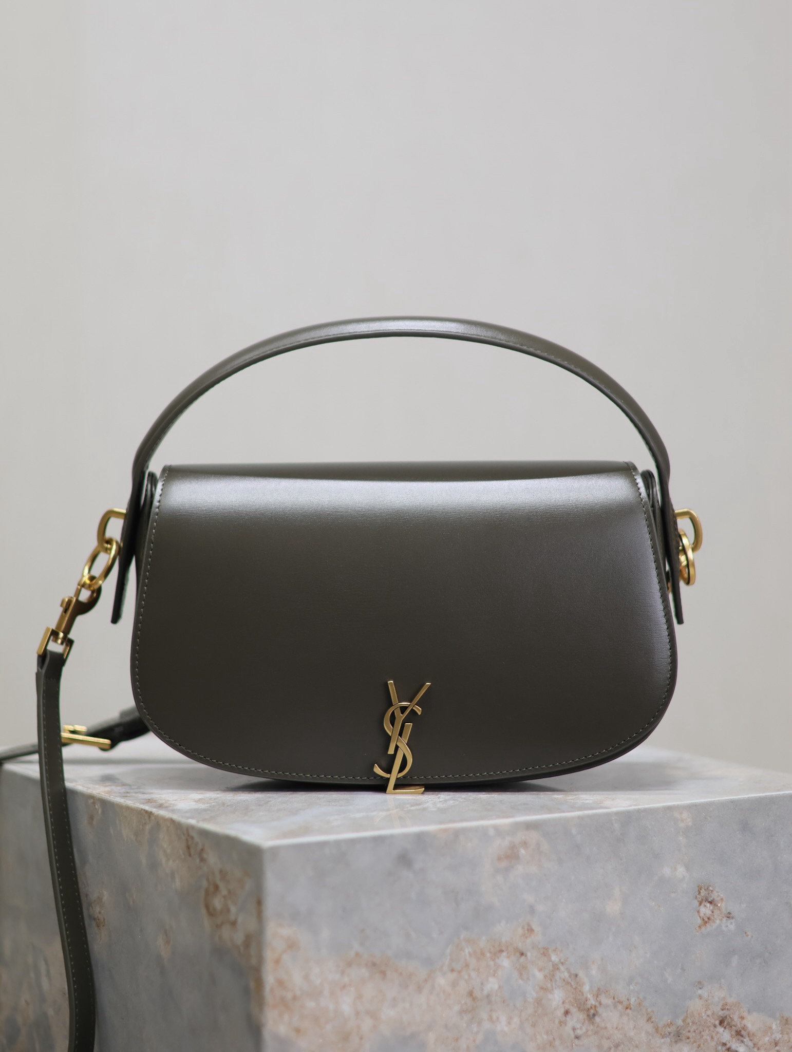 SAINT LAURENT YSL bronze metal hand-held crossbody single-shoulder bag for regular women in deep musk color