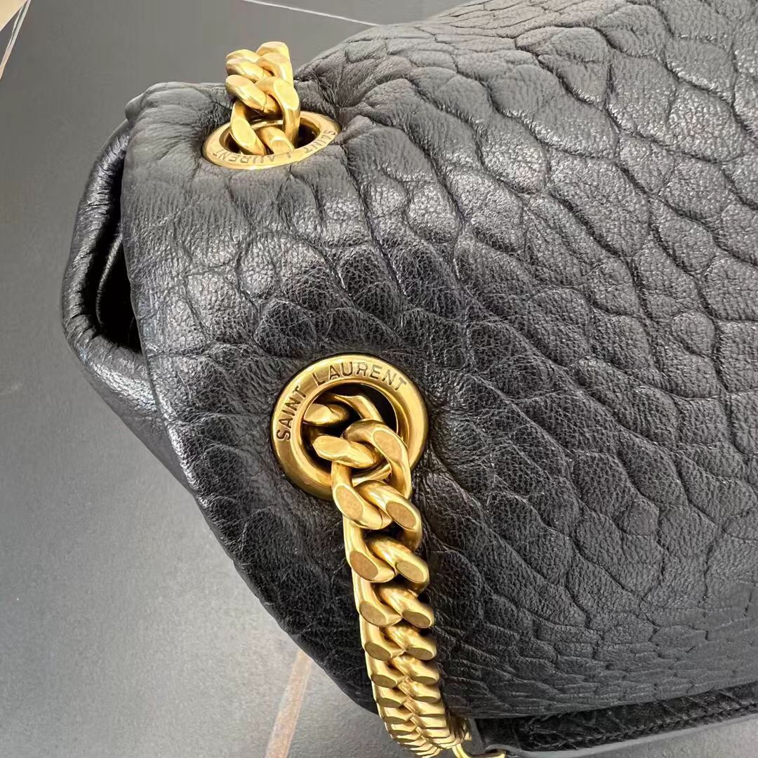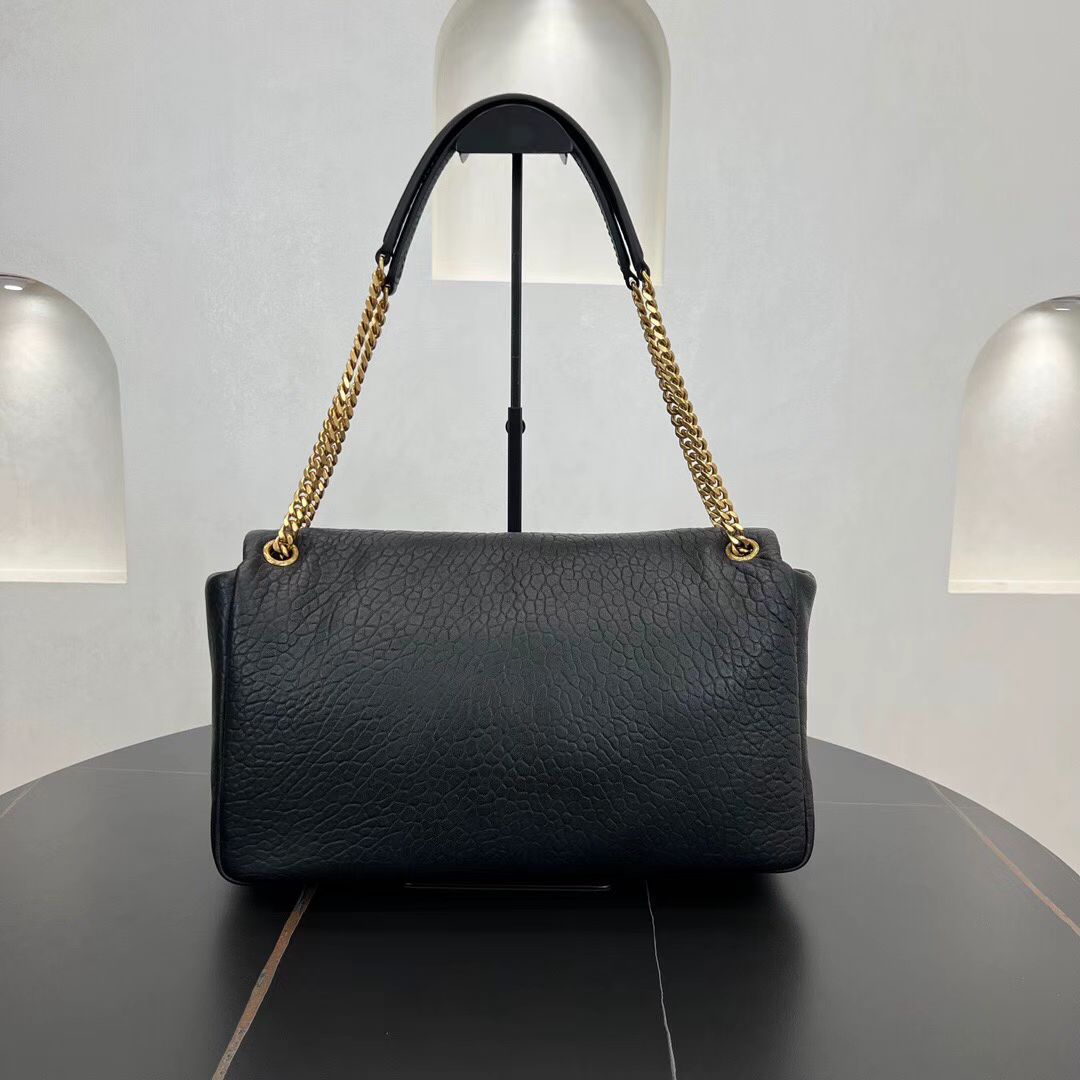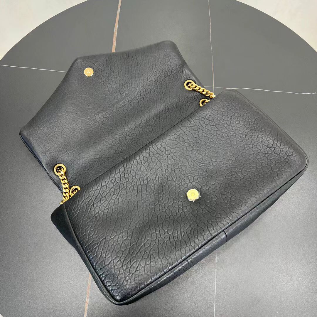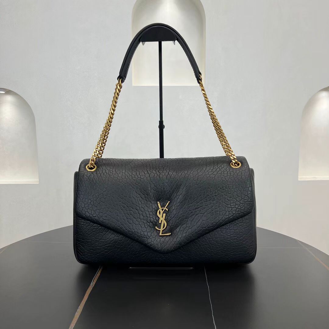 SAINT LAURENT YSL CALYPSO Gold Logo snap-on opening and closing hand-held shoulder bag, large size for women, black
