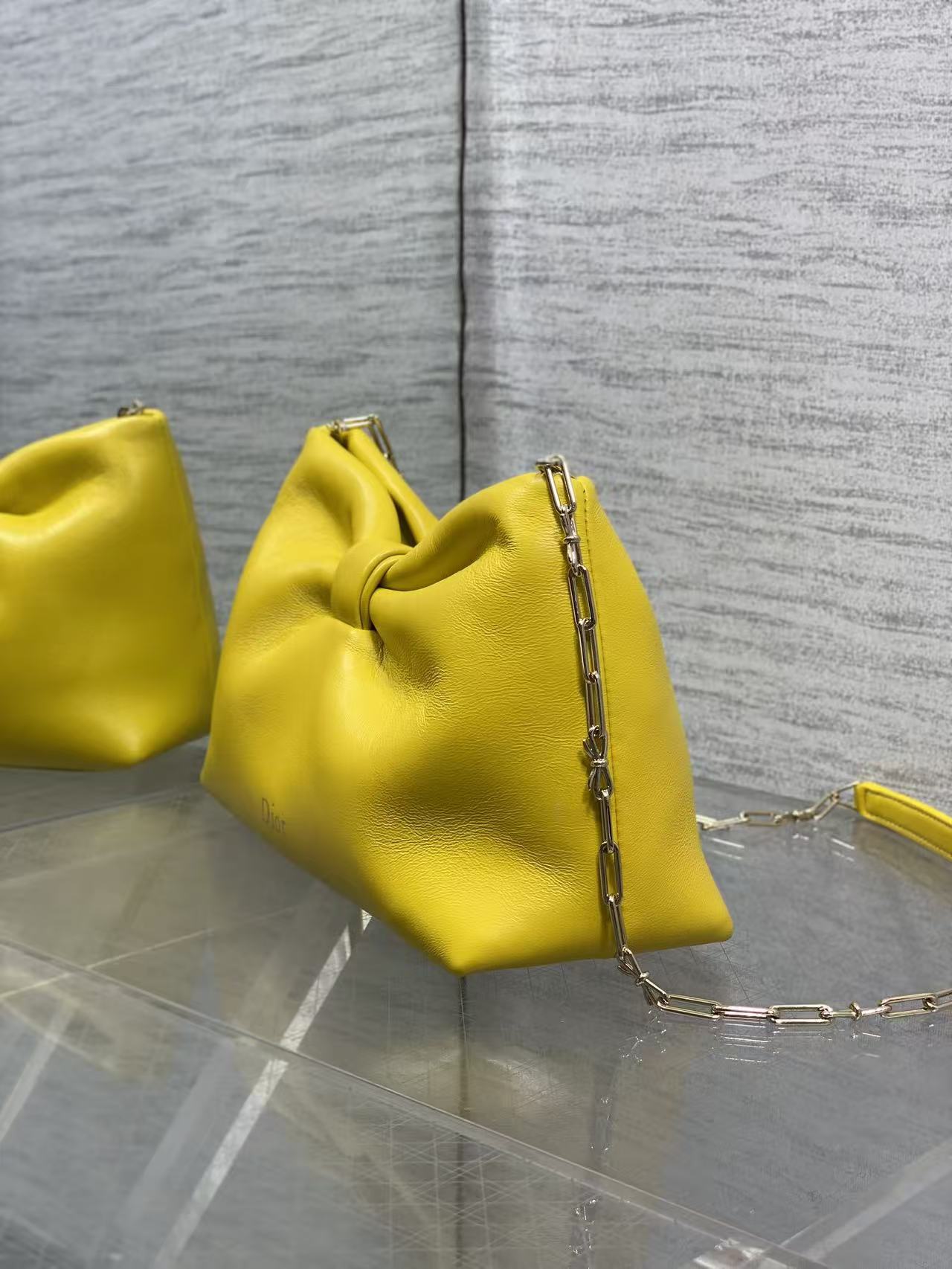 DIOR Bow hot-pressed gold-toned LOGO bow shaped clutch bag, single-shoulder bag, small size for women, yellow