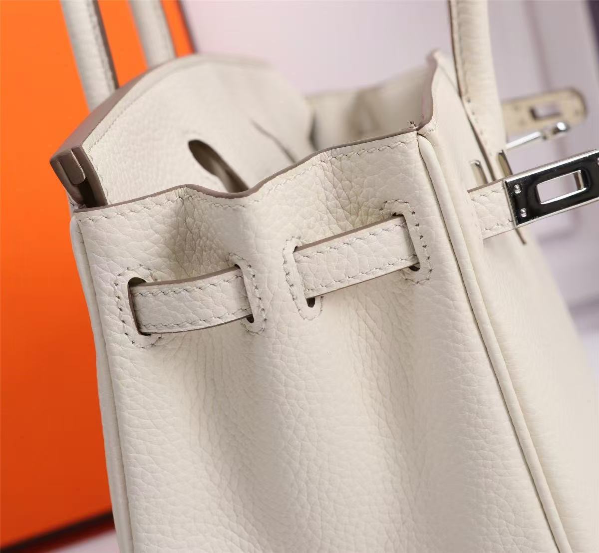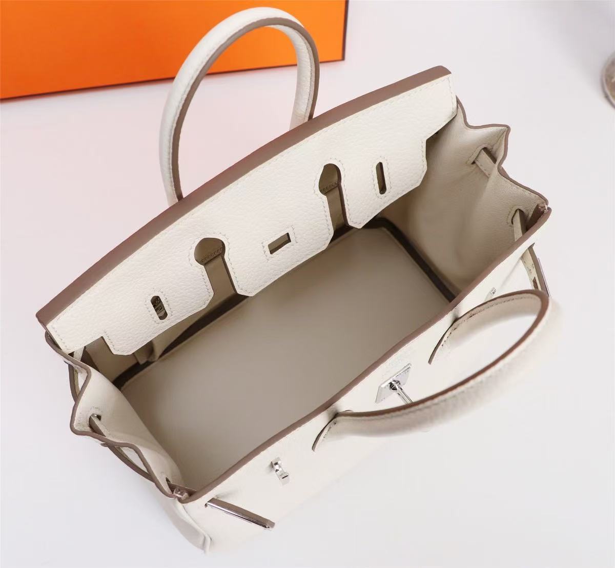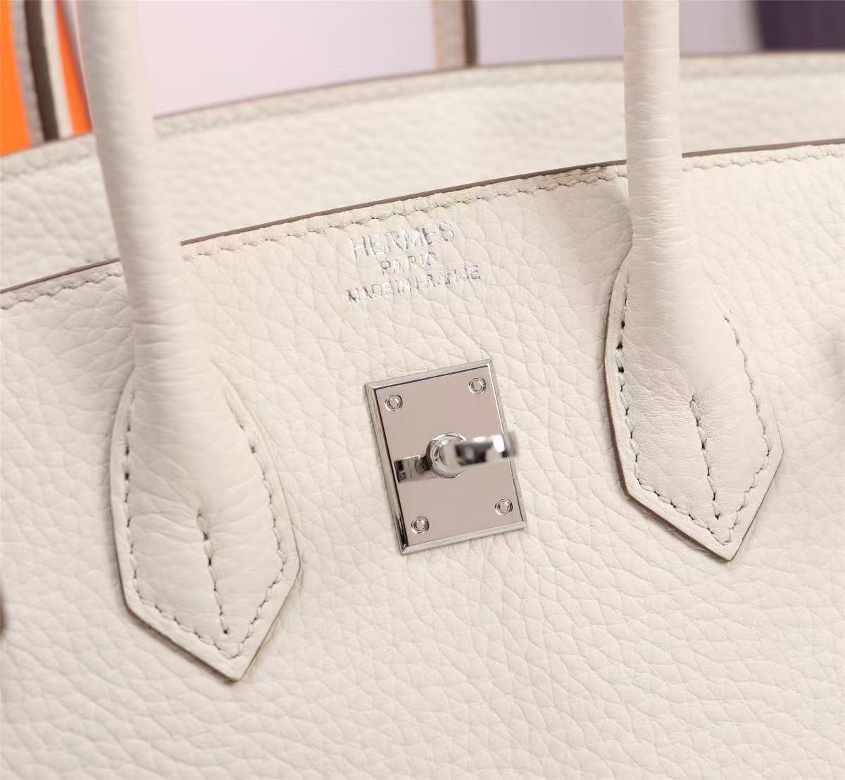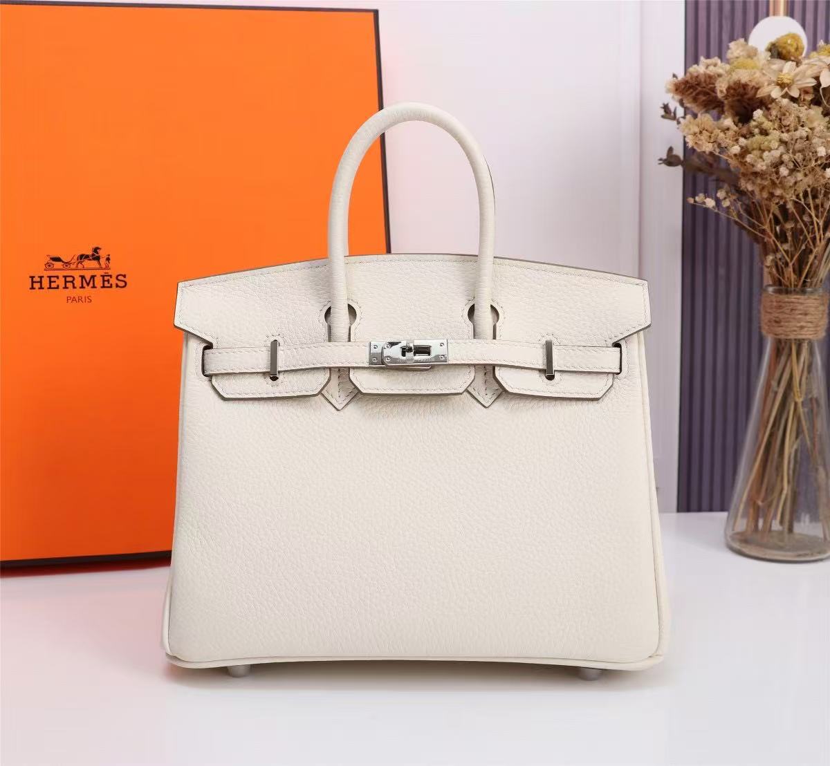 HERMES Birkin 25 Silver clasp Women\'s 8L Beton Glacier White