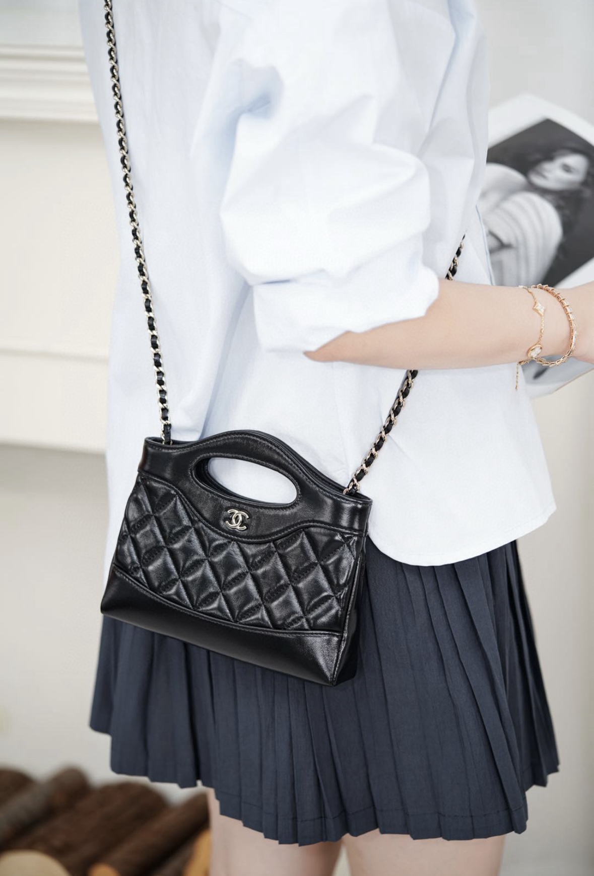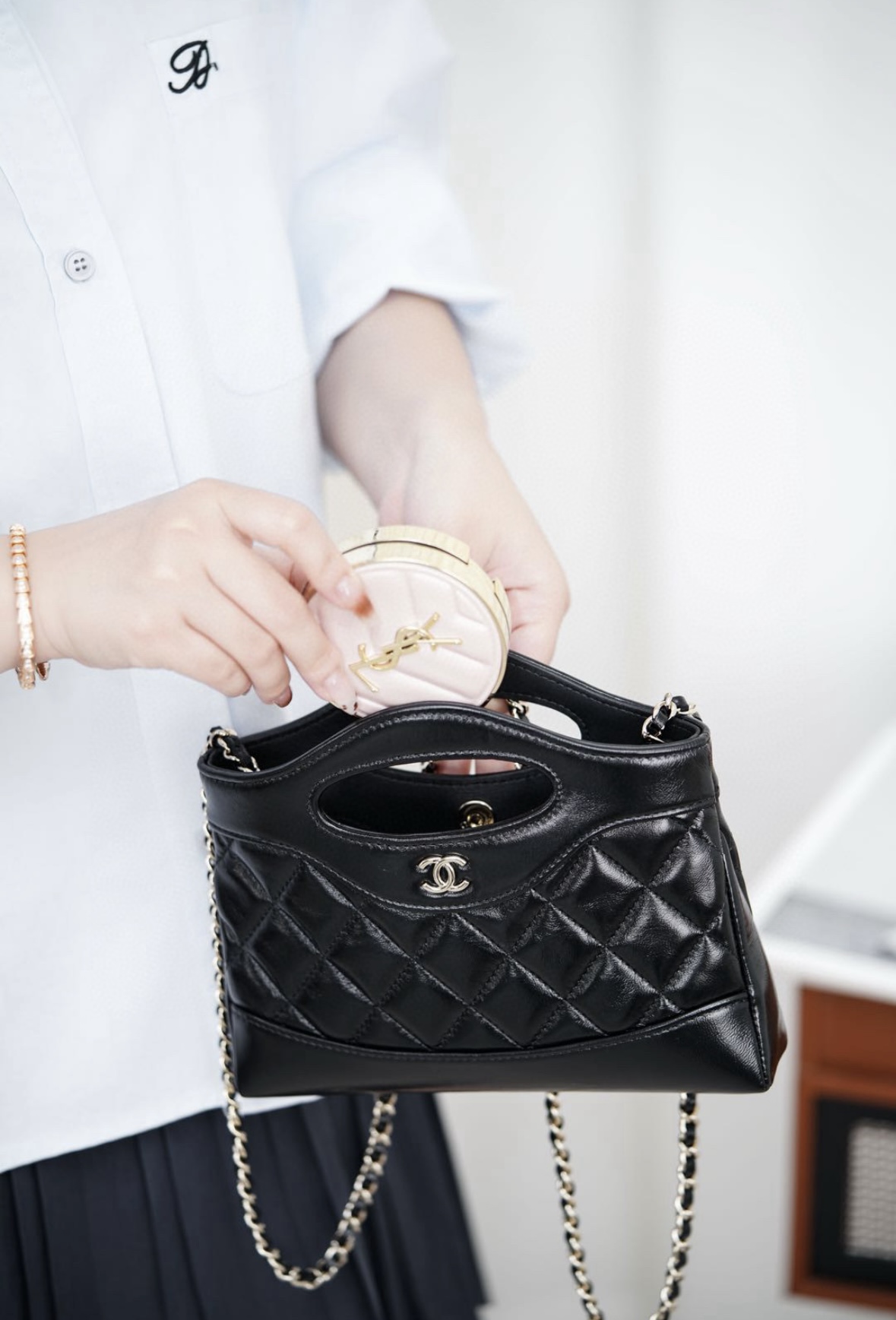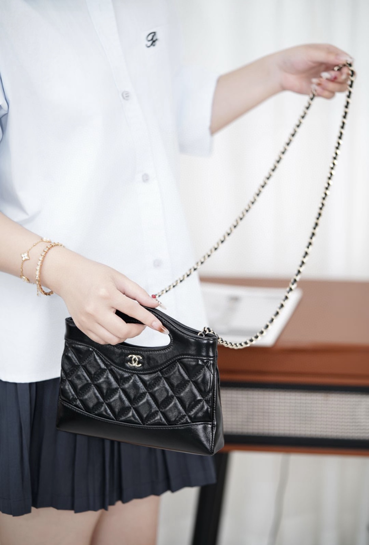 CHANEL Classic Flap CF chain leather interlocking diamond grainy calfskin crossbody shoulder bag medium size apricot color