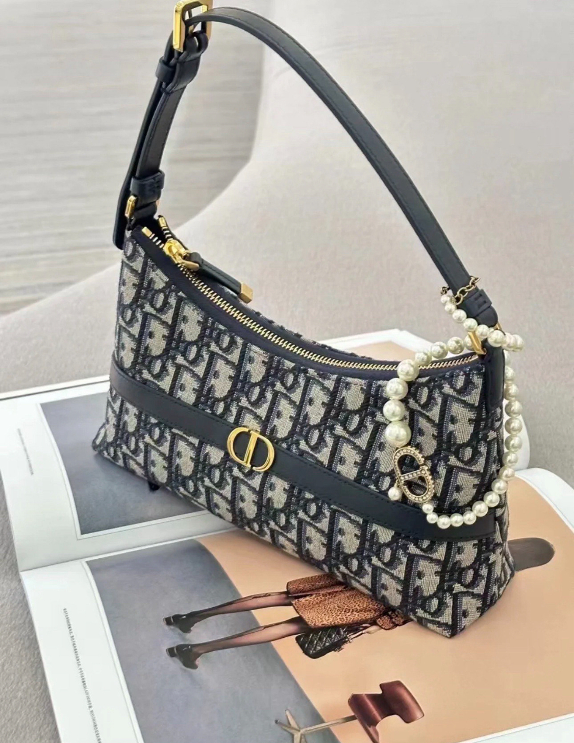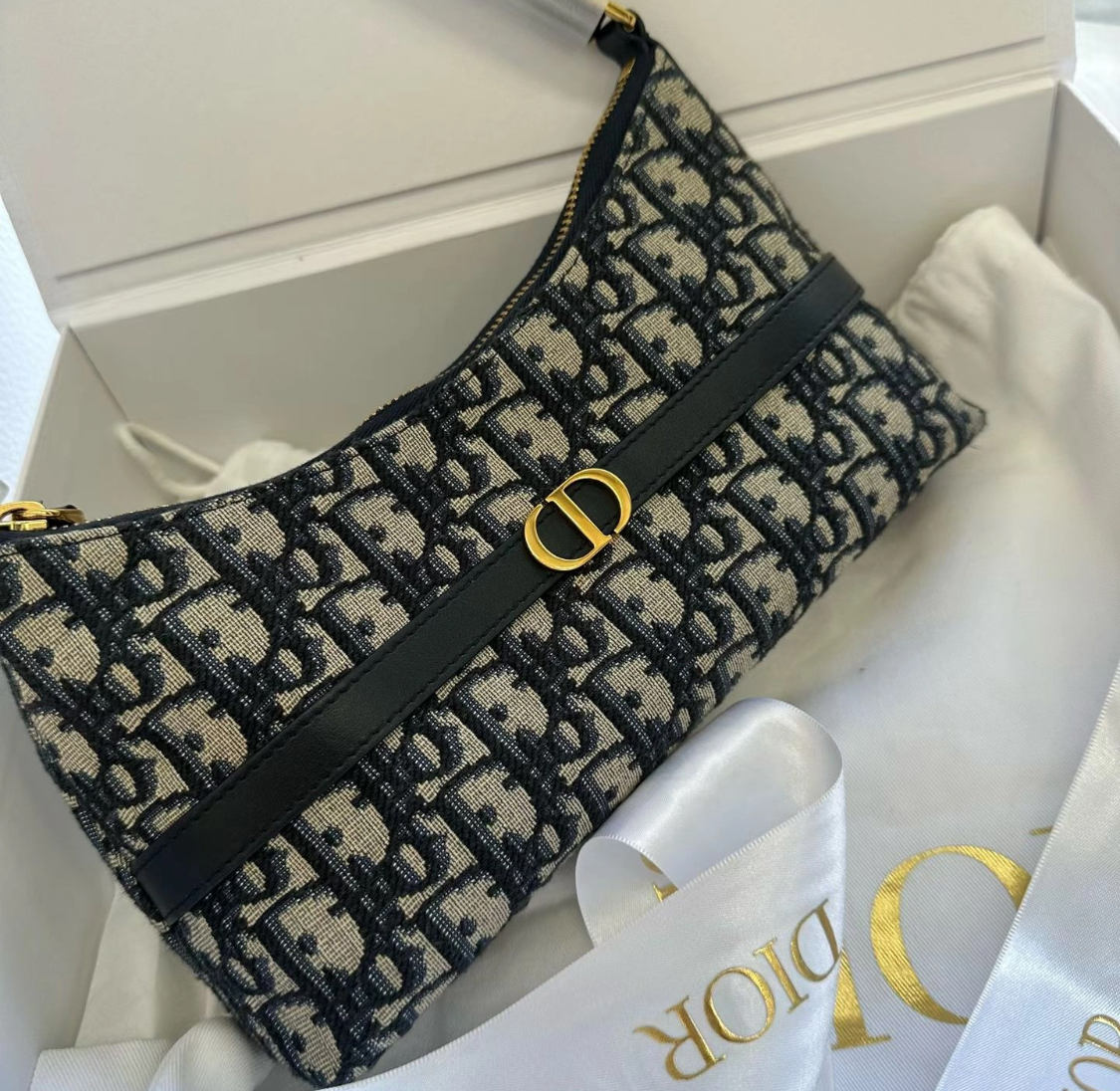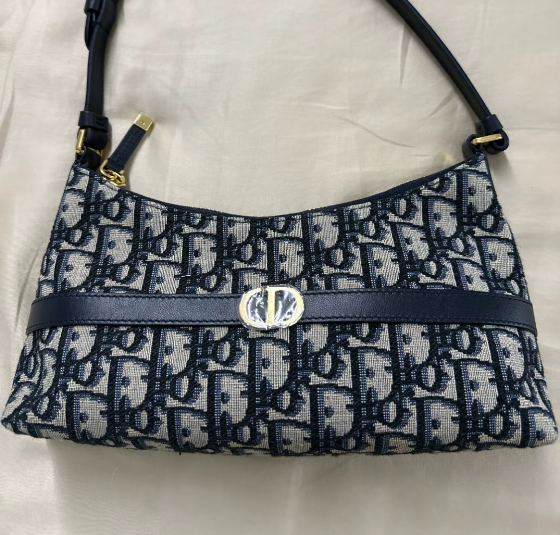 DIOR 30 Montaigne adjustable shoulder strap zipper open and close dumpling bag, handbag, single-shoulder bag, mini women\'s blue