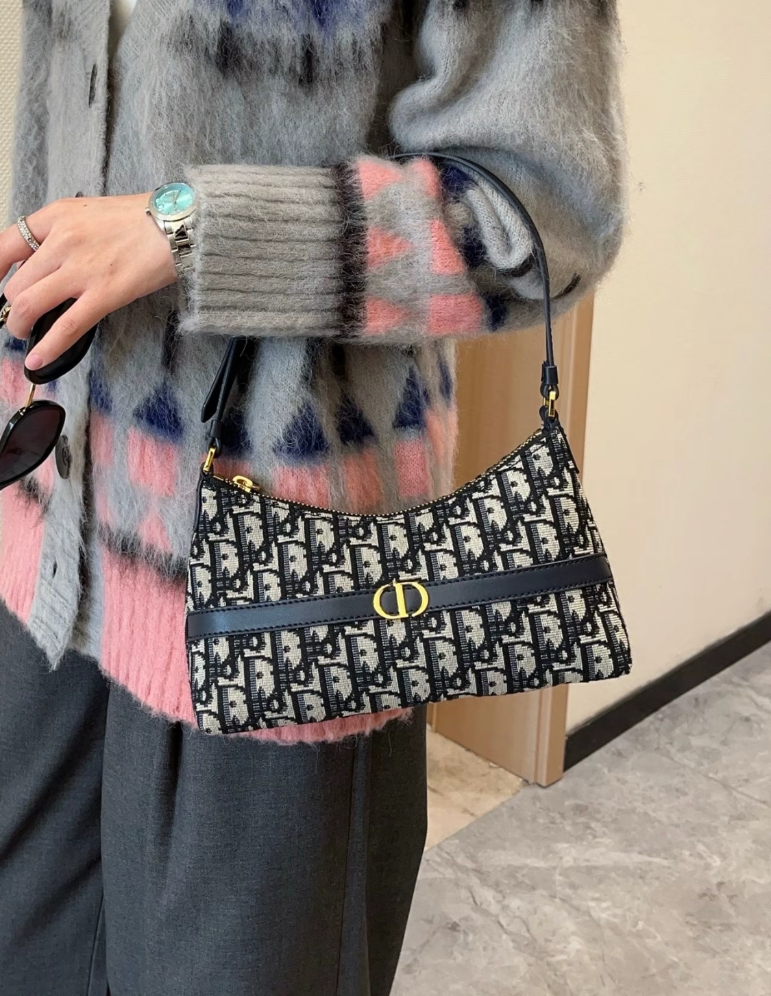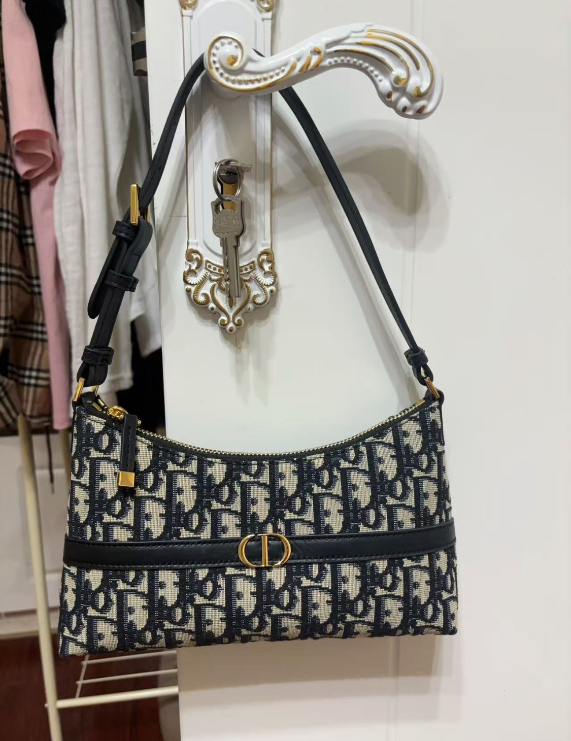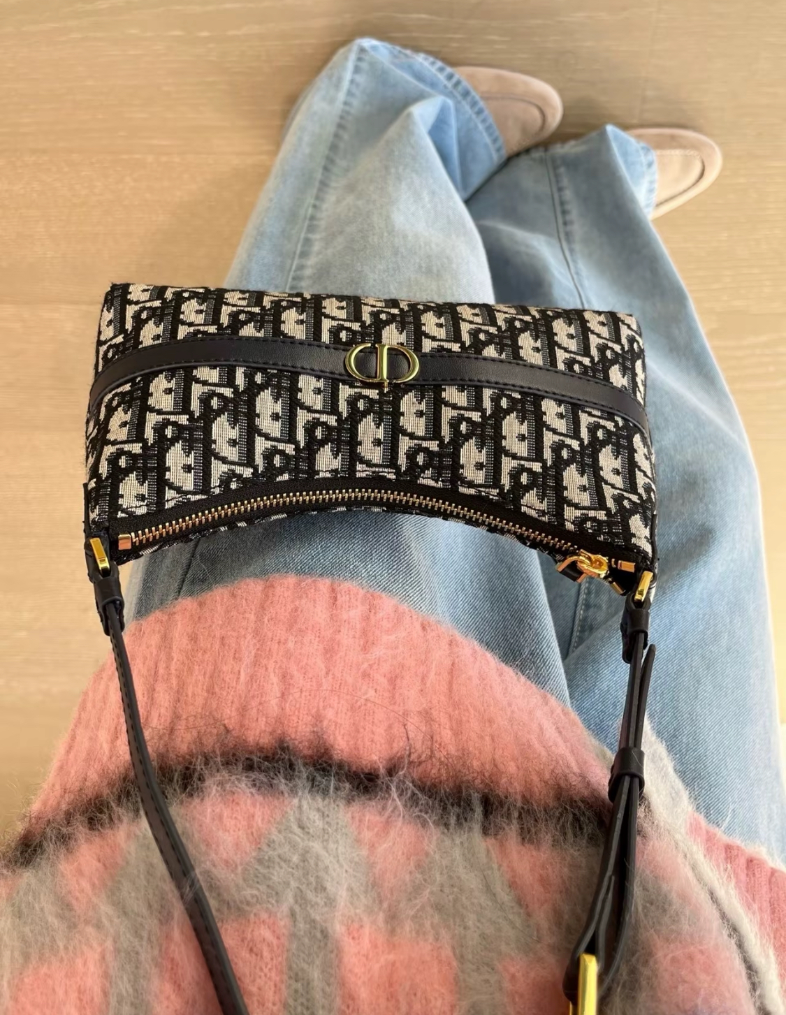 DIOR 30 Montaigne adjustable shoulder strap zipper open and close dumpling bag, handbag, single-shoulder bag, mini women\'s blue