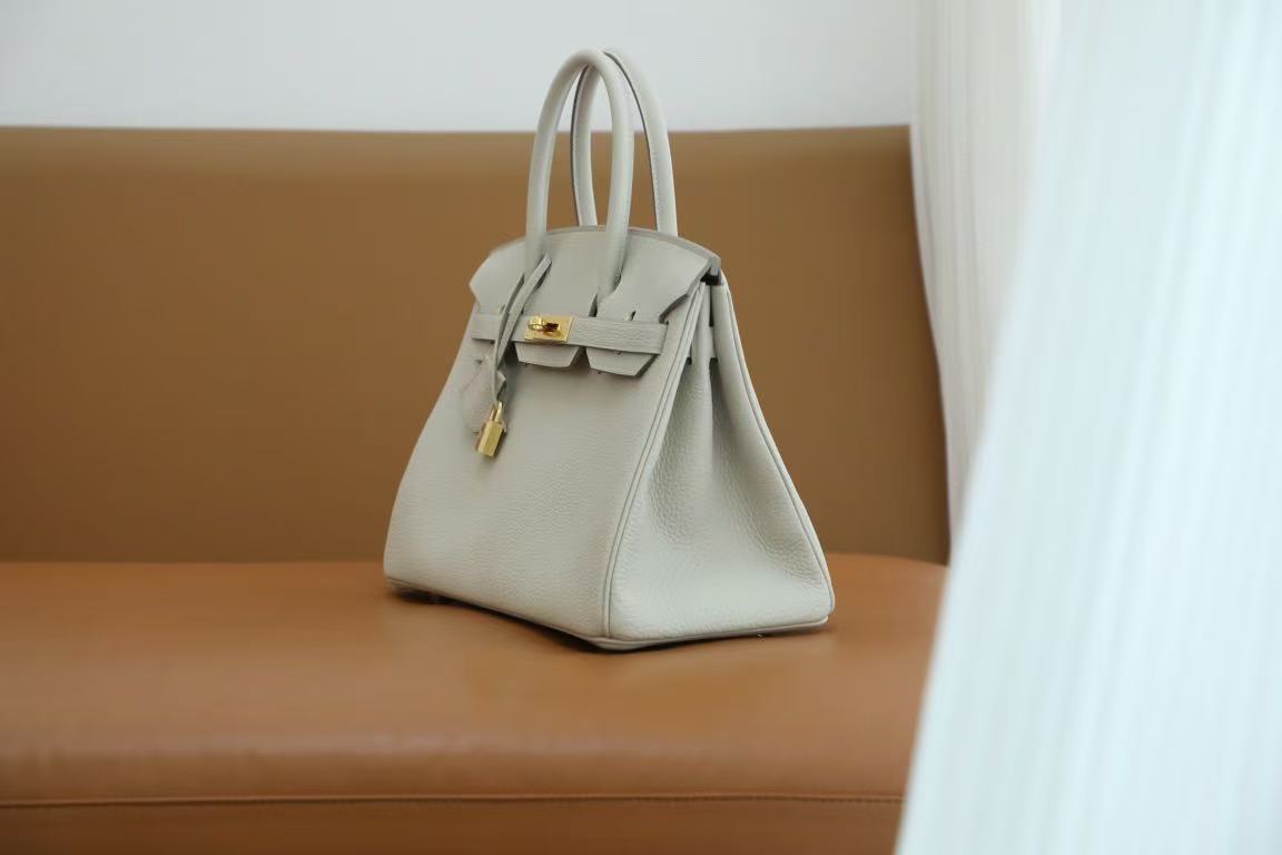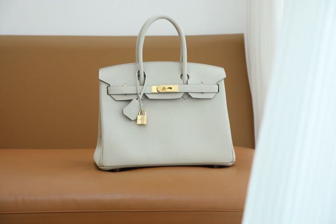 HERMES Birkin 25 Gold Buckle Women\'s 10 Craie Milkshake White