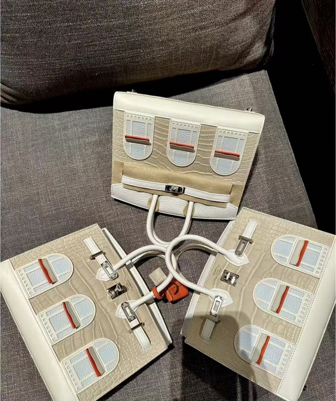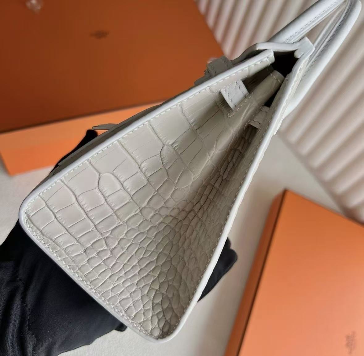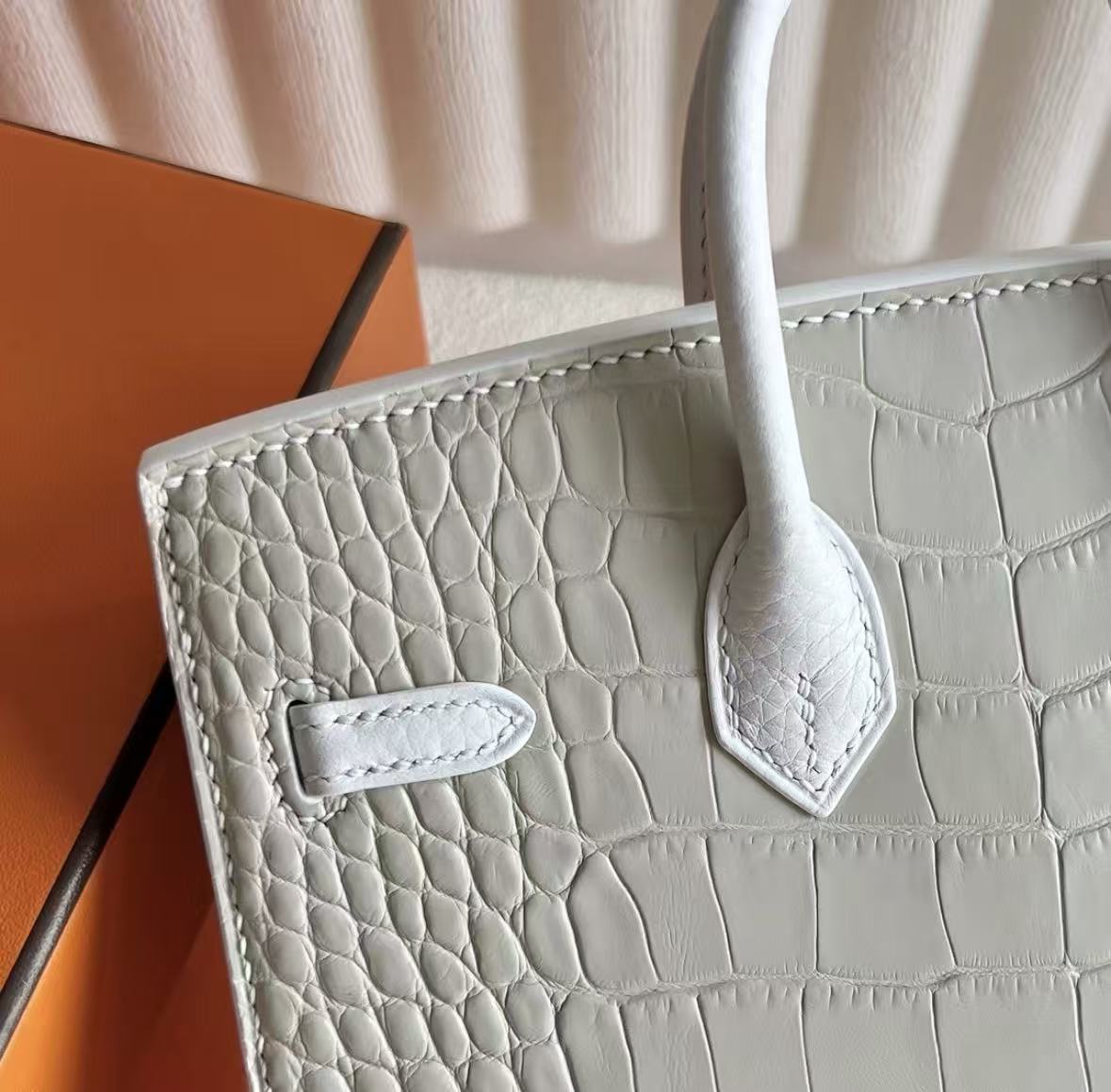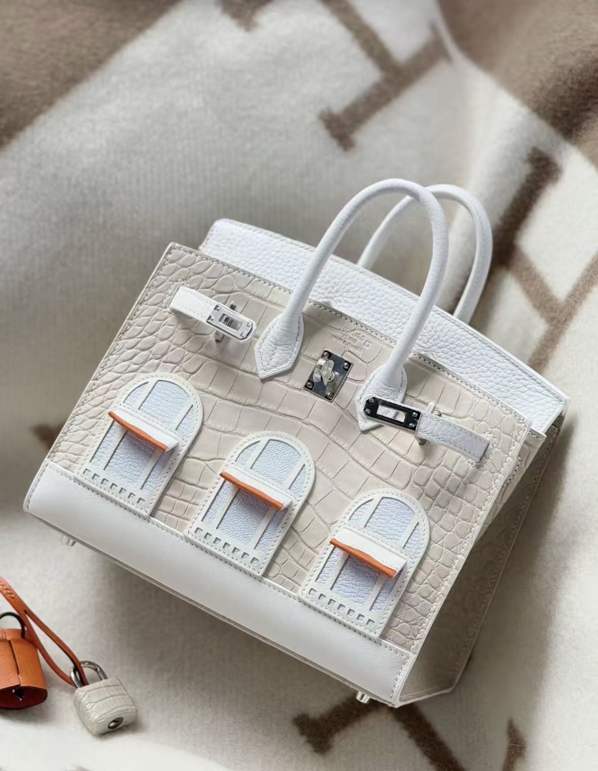 HERMES Birkin 20 silver clasp, snow-white house bag, platinum bag for women, cement grey, white and haze blue