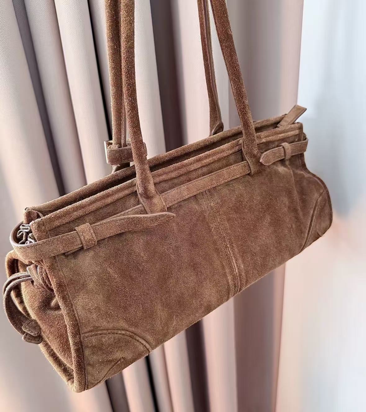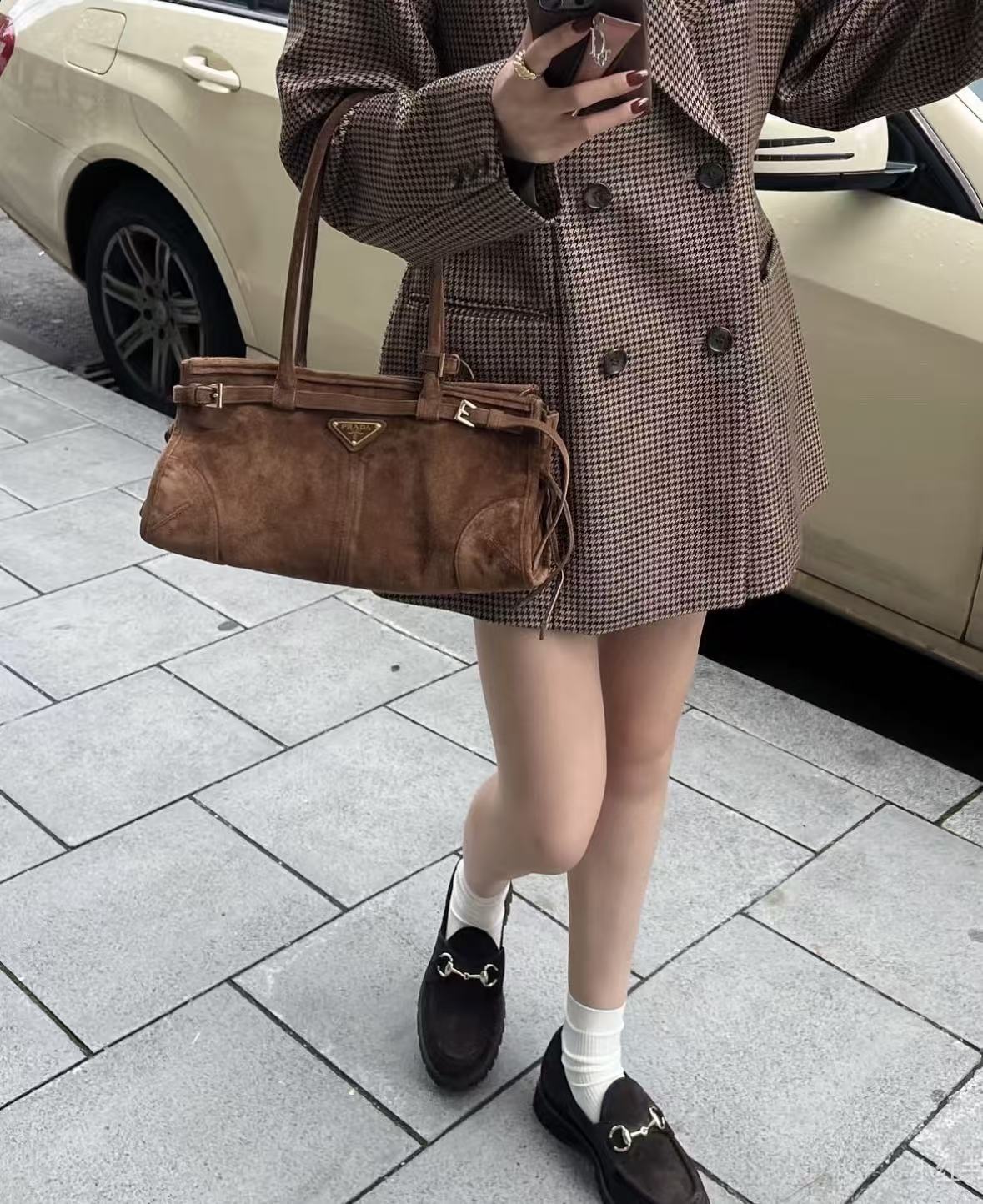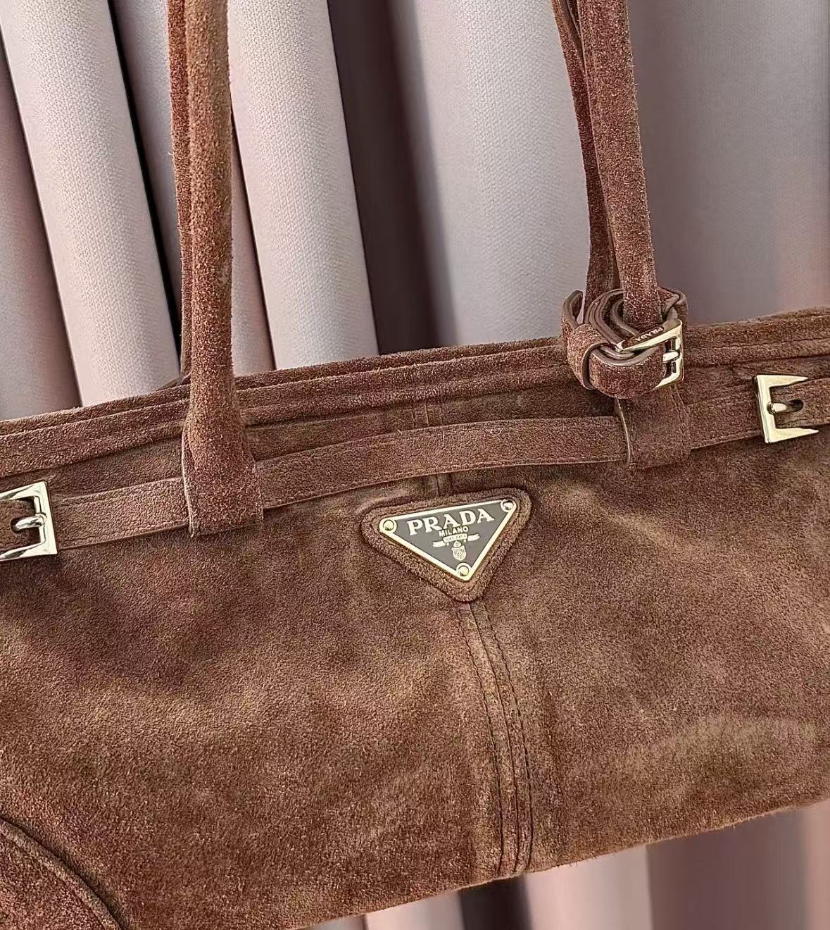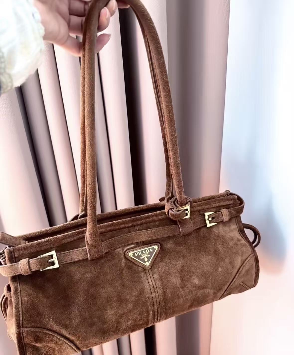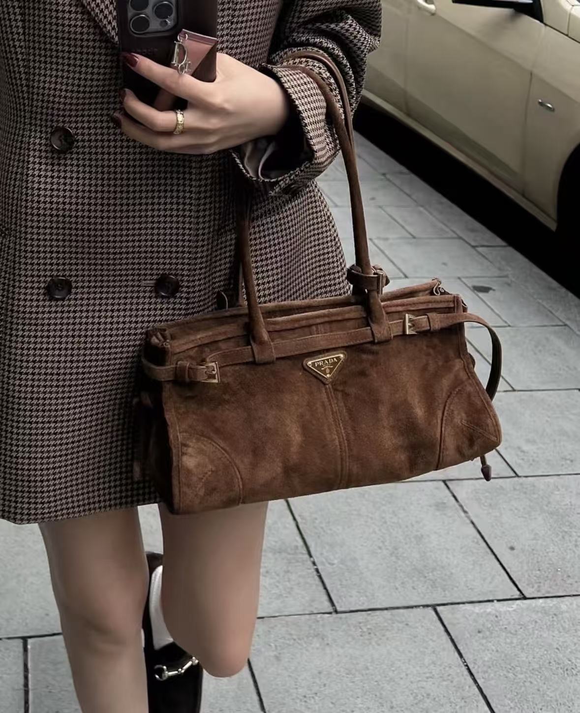 PRADA Bonnie soft lux series single-shoulder handbag, medium size for women, cocoa brown