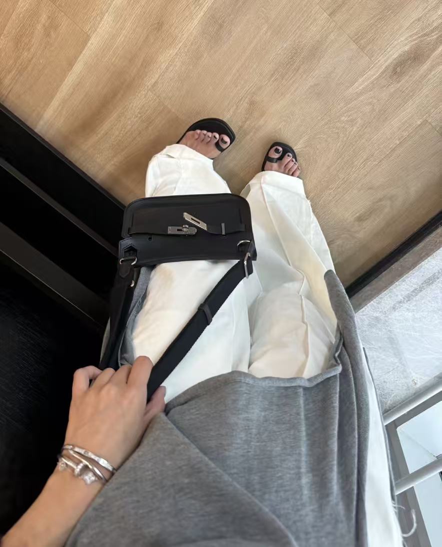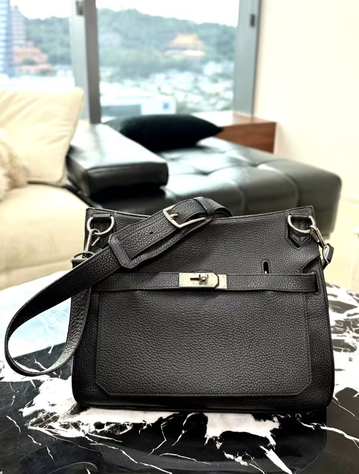 HERMES Jypsiere Gypsy silver buckle crossbody bag for women, Noir black