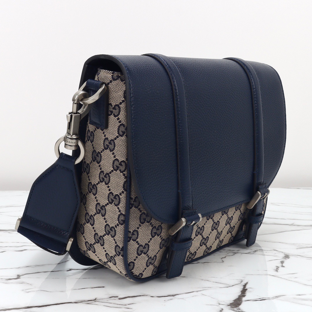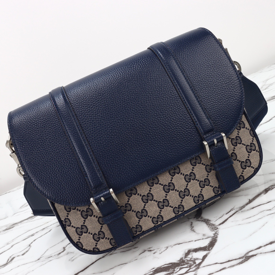 GUCCI Original brand Logo flip cover crossbody single-shoulder bag for men, beige and blue
