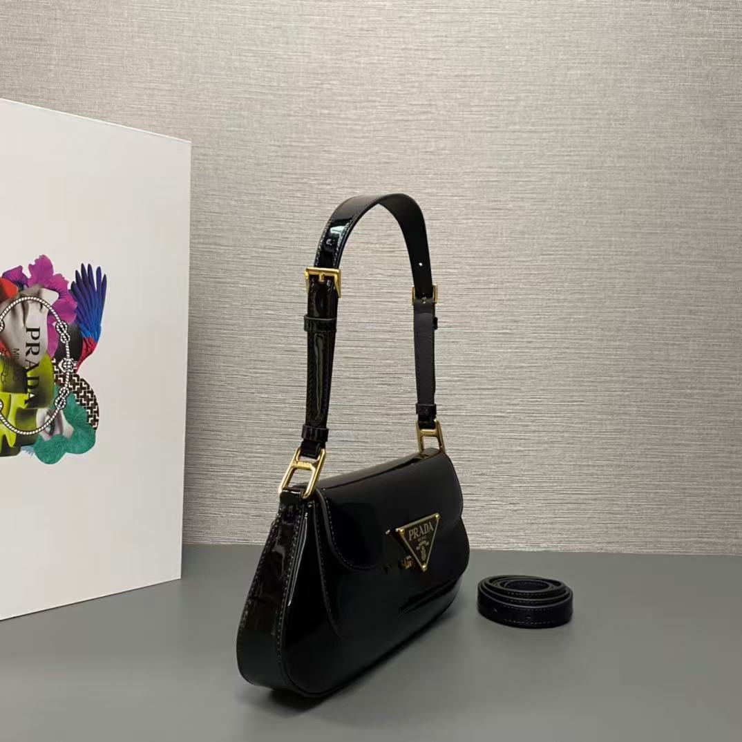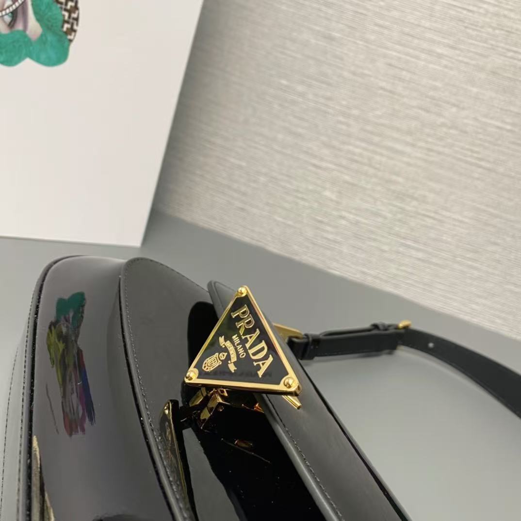 PRADA Enamel metal triangular logo clasp single-shoulder bag for women in black