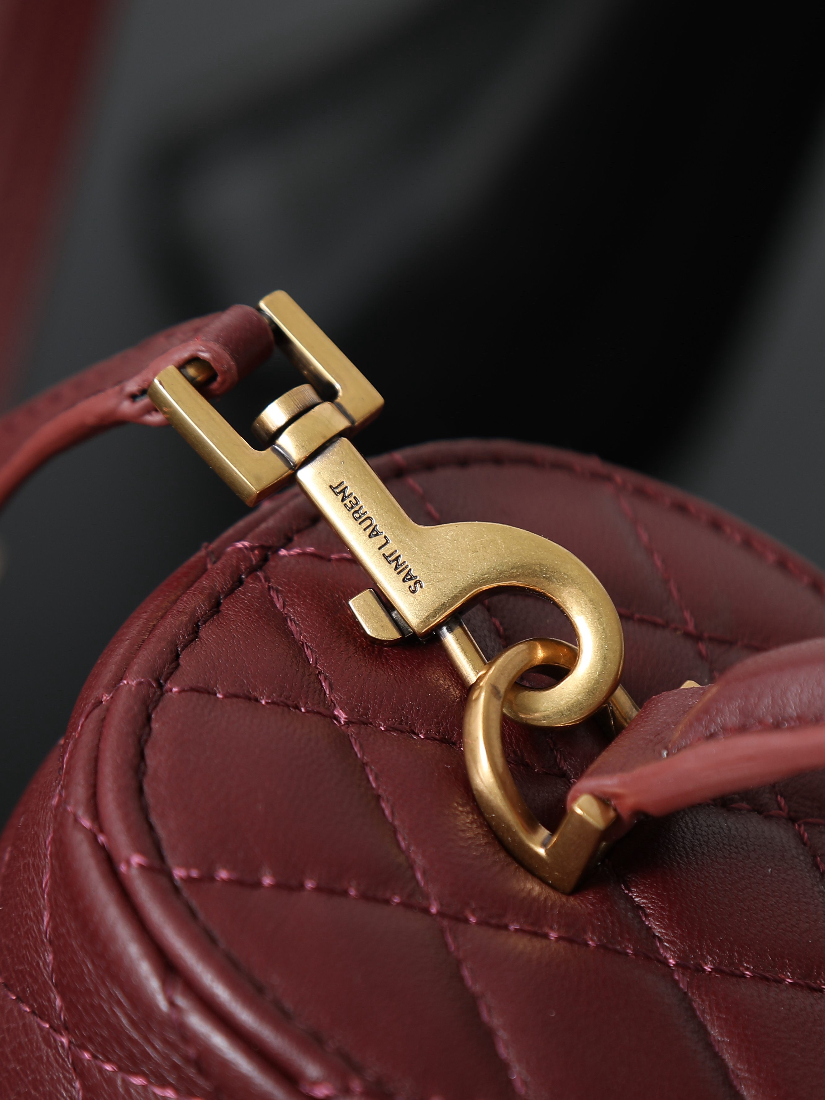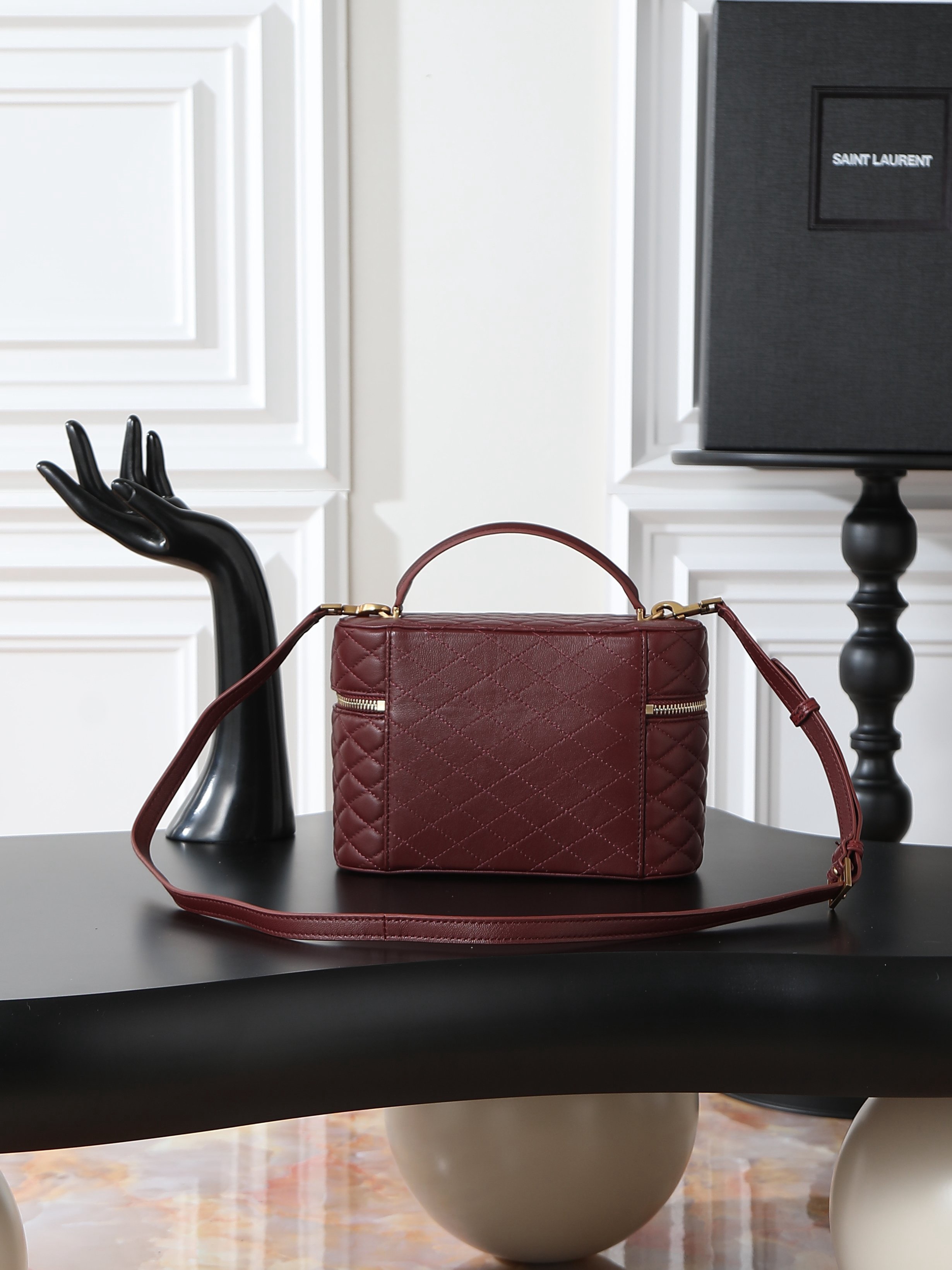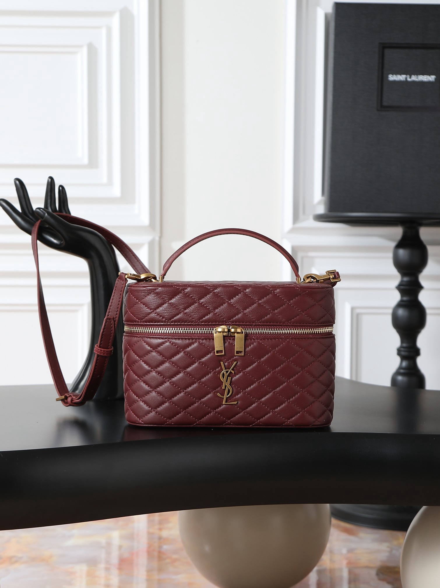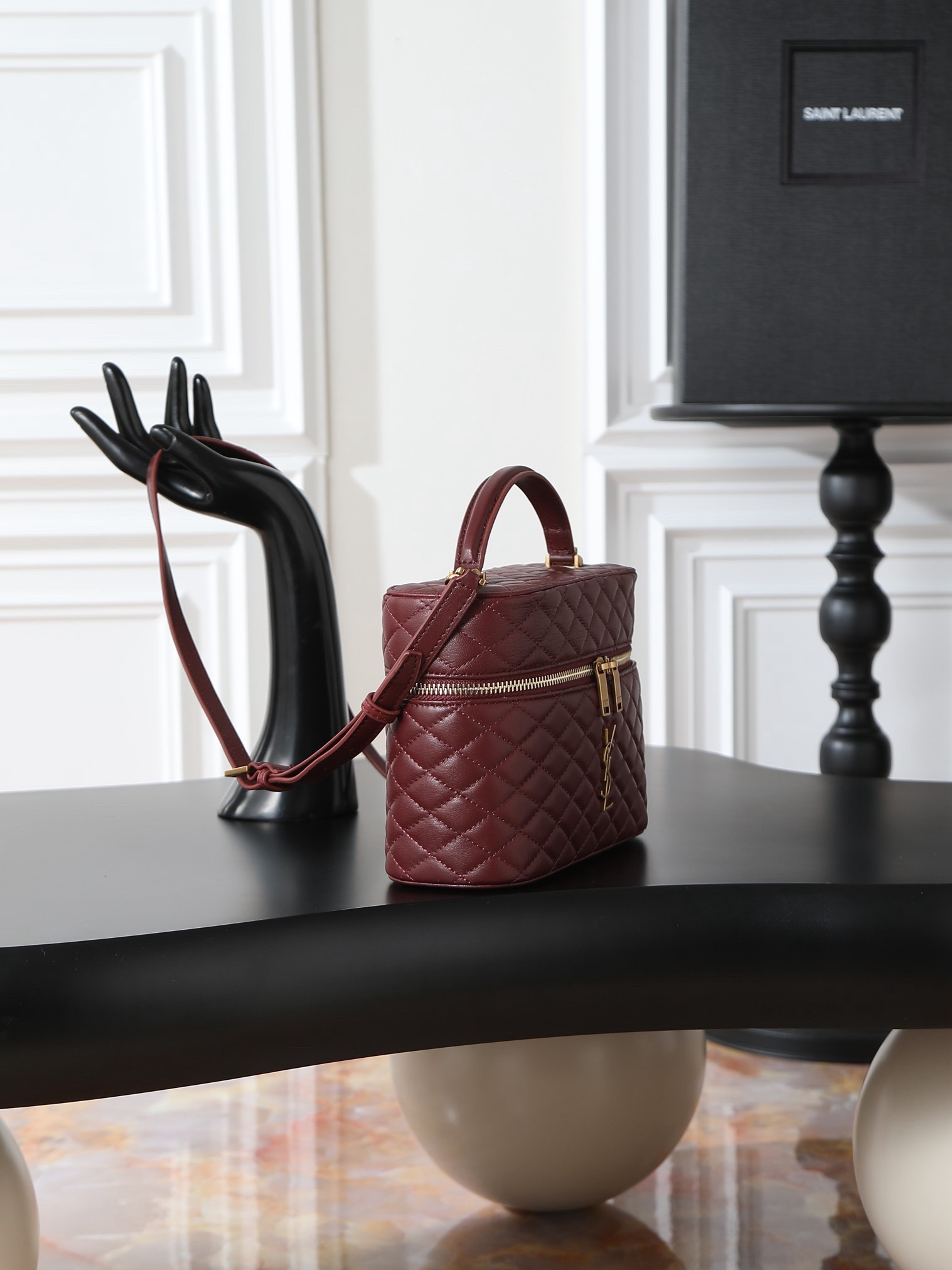 SAINT LAURENT YSL GABY diamond-quilted design single-shoulder hand-carry sheepskin cosmetic bag, large Cabernet Sauvignon red