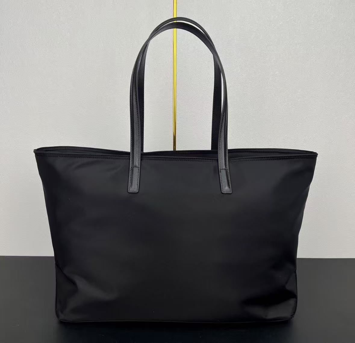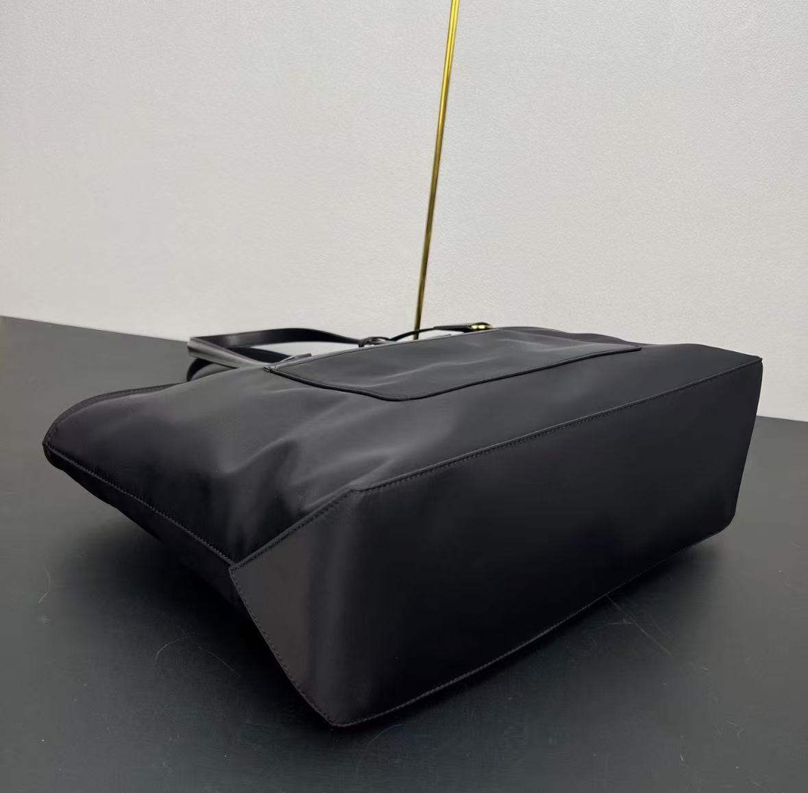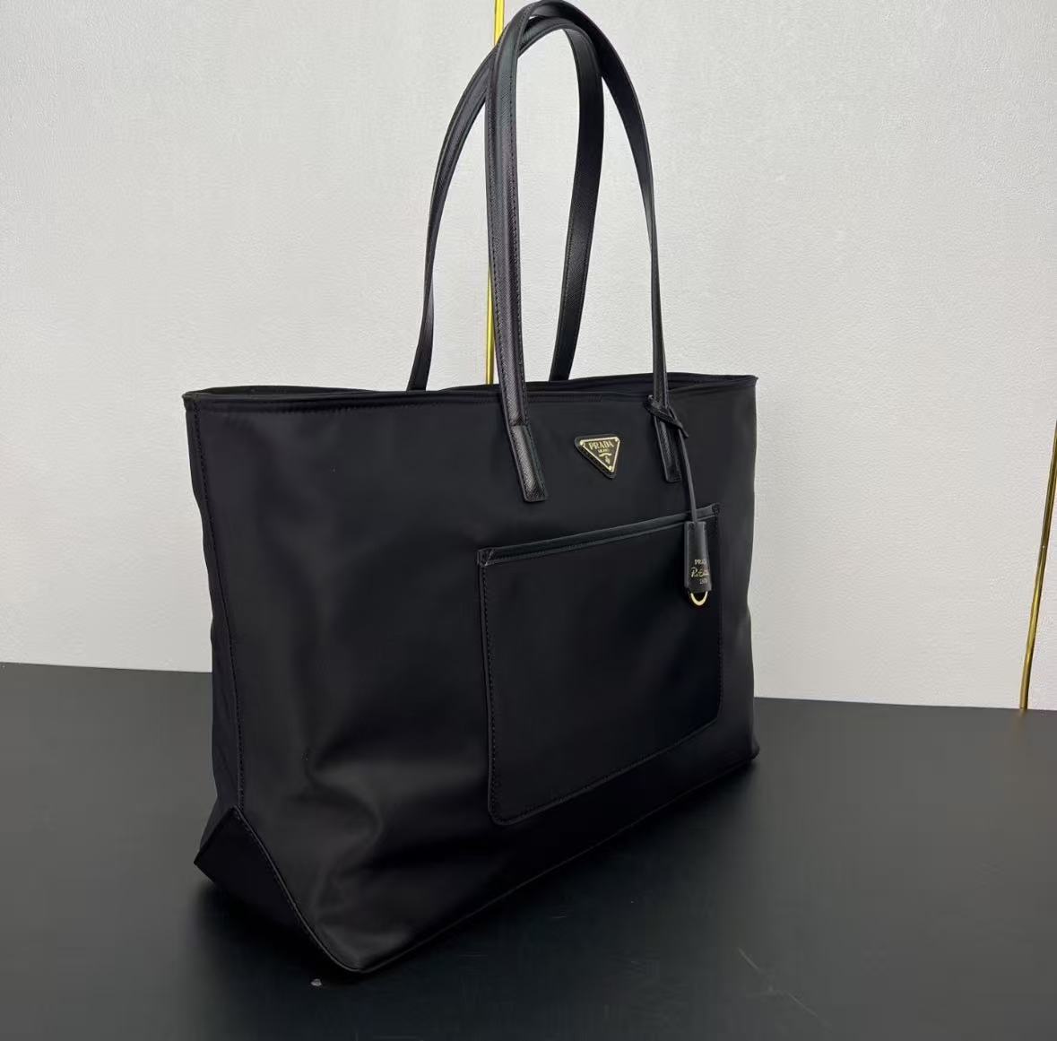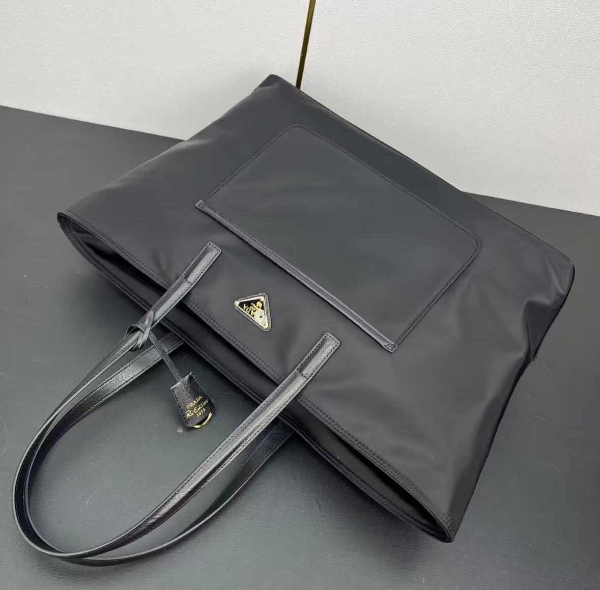 PRADA Enamel triangular metal logo Tote bag, shopping bag, handbag, large size for women, black