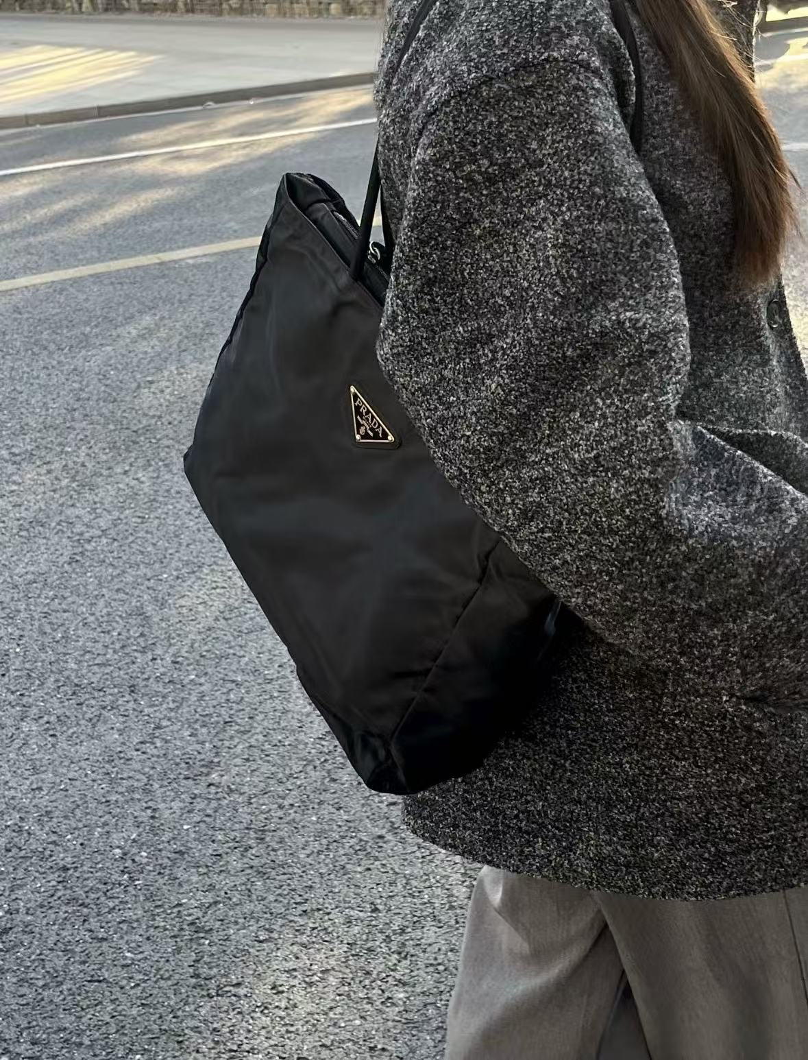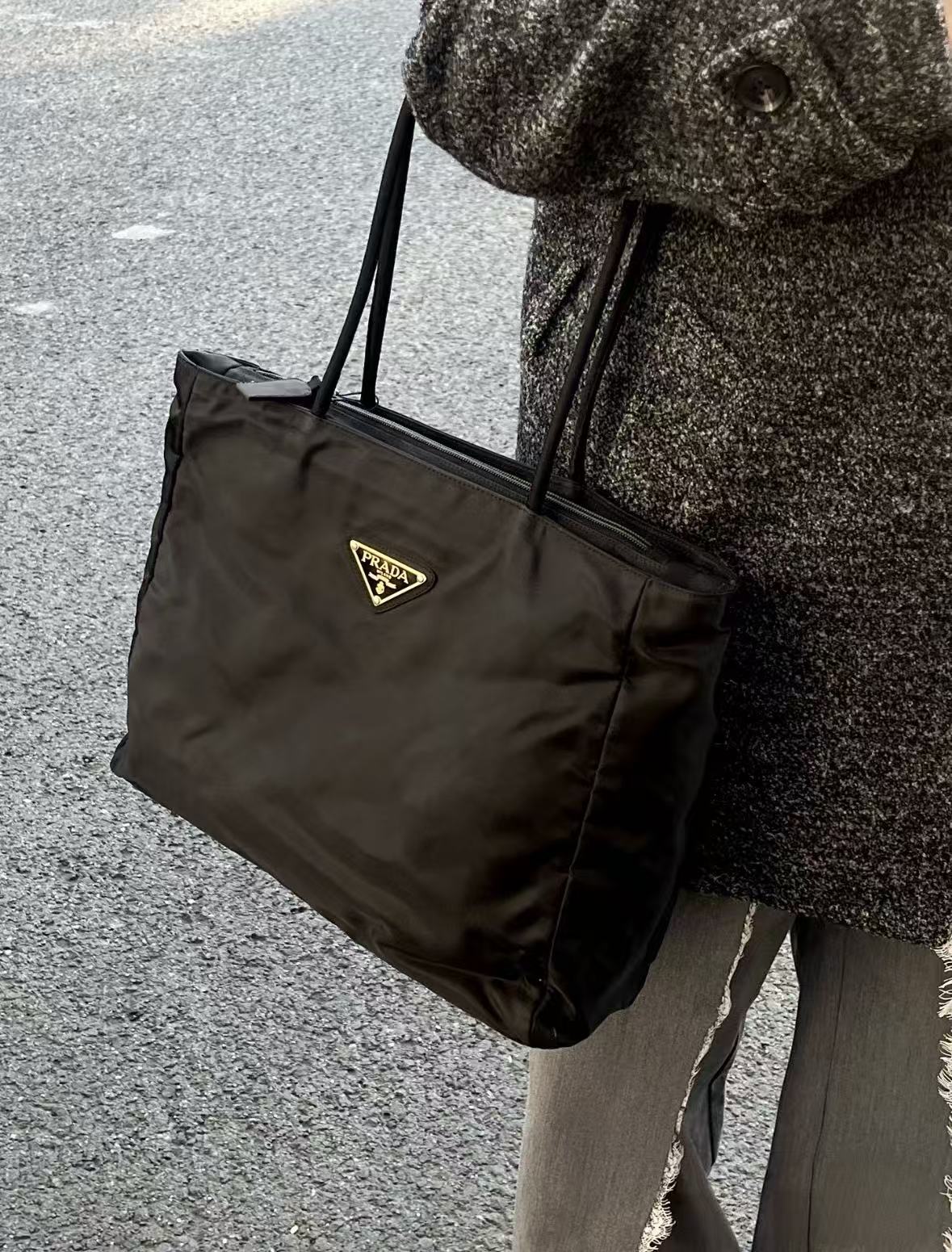 PRADA Explore enamel metal triangular logo zipper open shoulder bag for women, large size