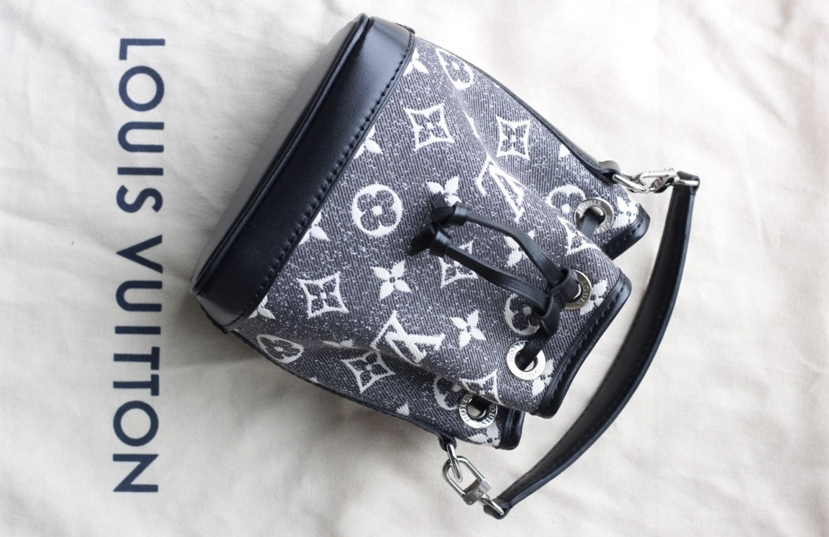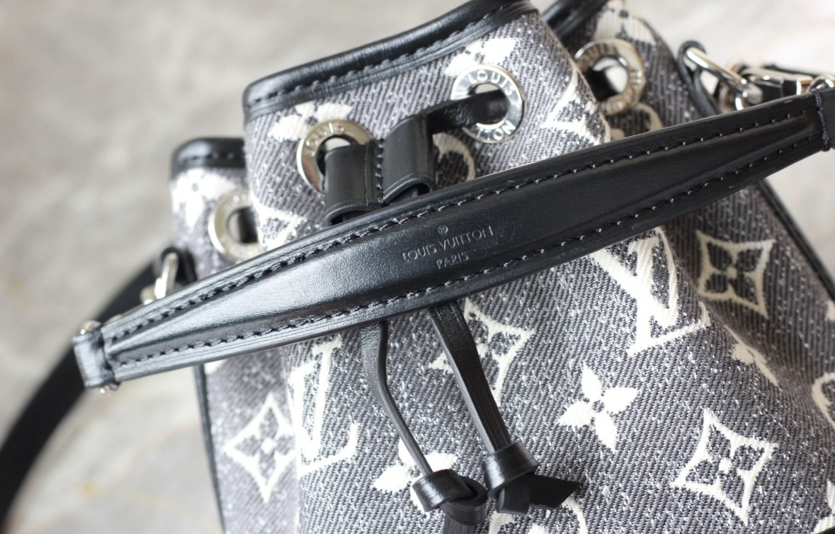LOUIS VUITTON NOE logo printed drawstring bucket bag, hand and shoulder crossbody bag, super mini grey
