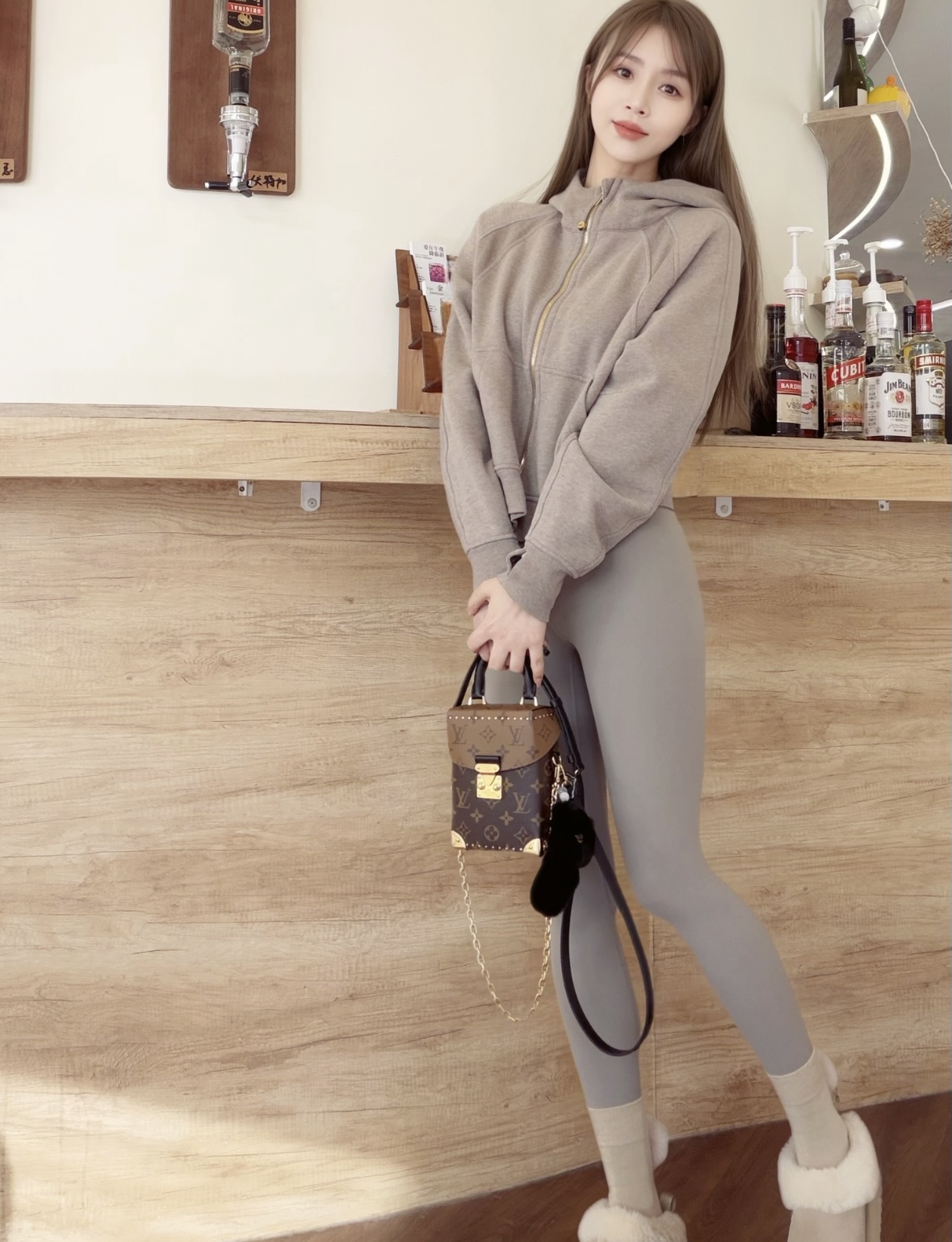 LOUIS VUITTON CAMERA BOX, monogram full-print lock opening chain box bag, mobile phone bag, hand bill, shoulder crossbody bag, brown