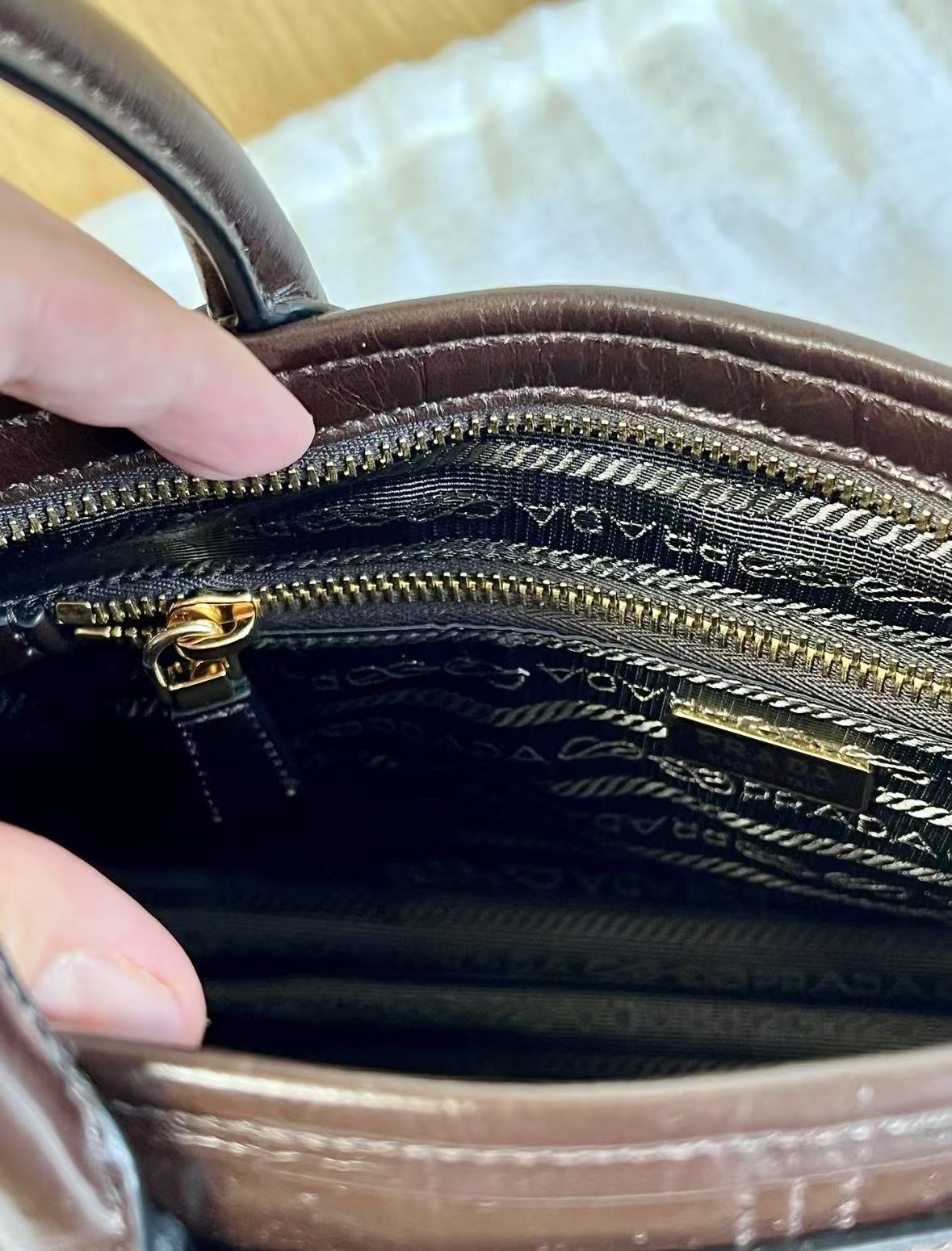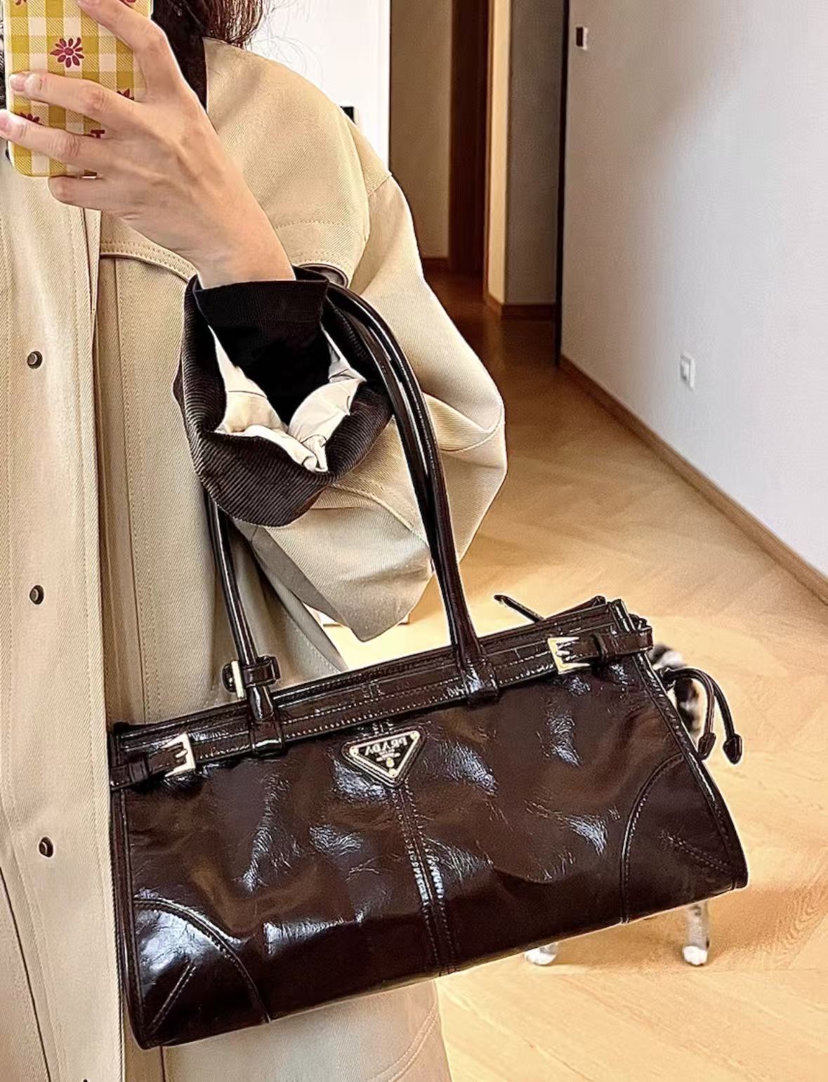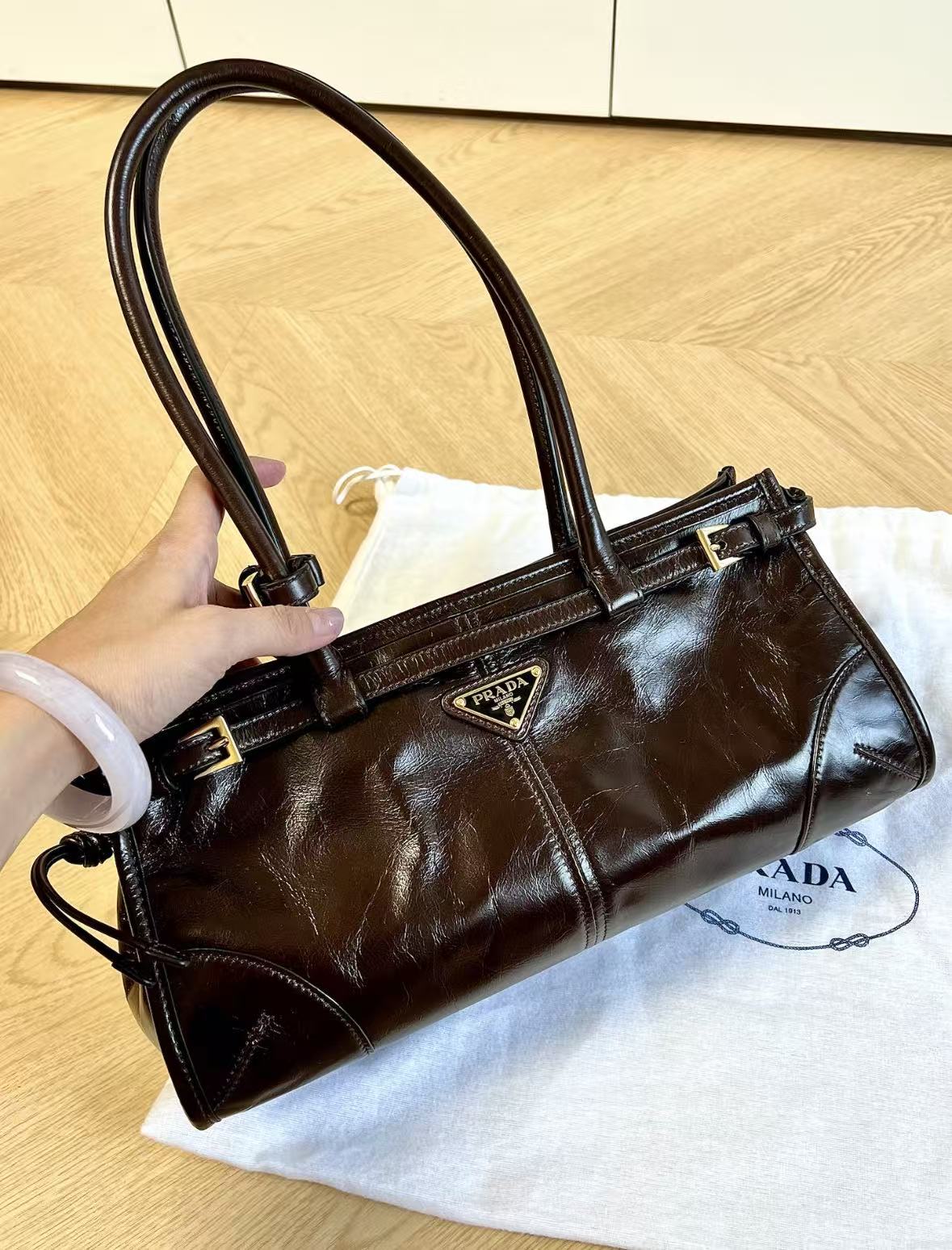 PRADA Explore enamel metal triangular logo zipper open shoulder bag for women, large size