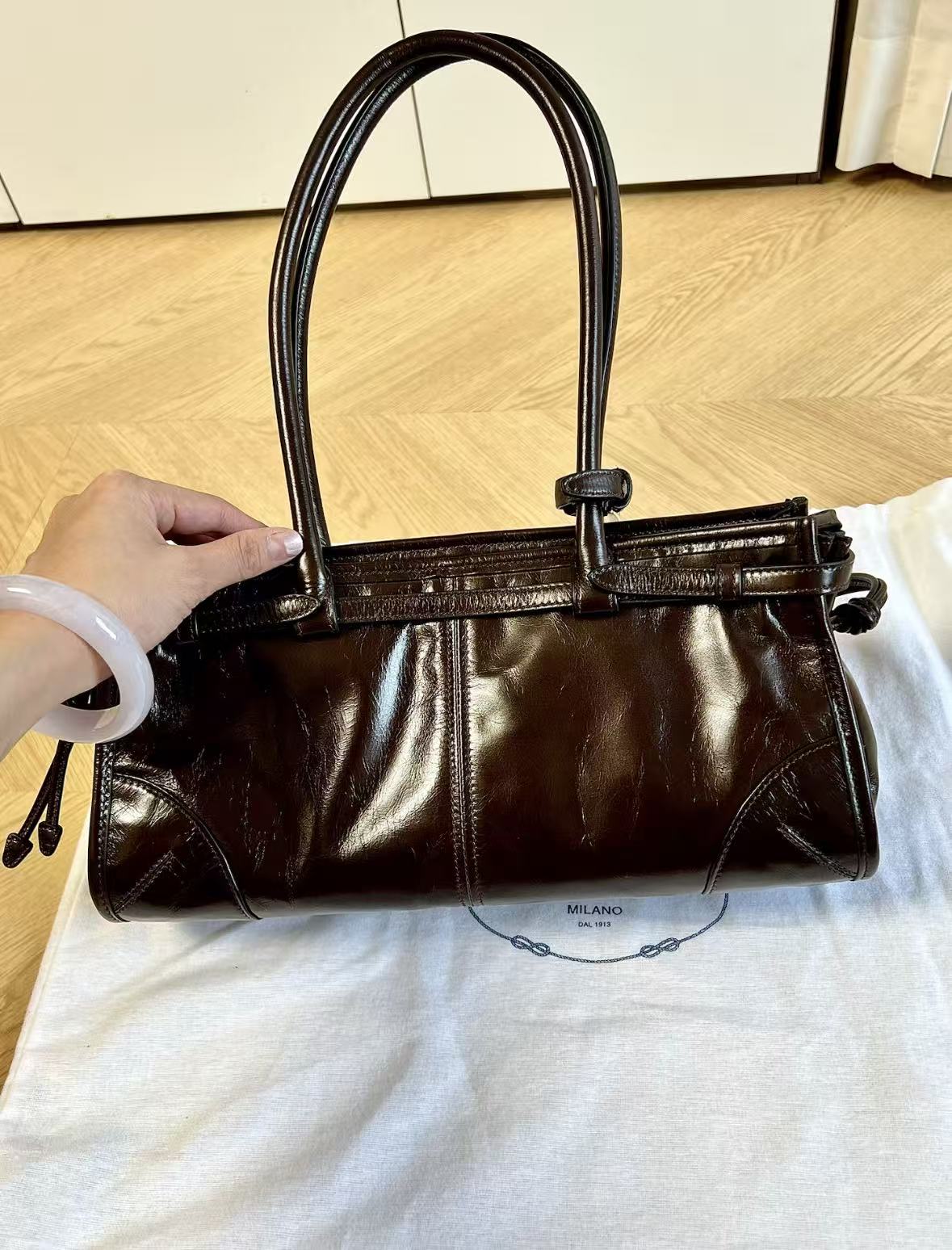 PRADA Bonnie Enamel metal triangular logo handbag, medium-sized women\'s rosewood