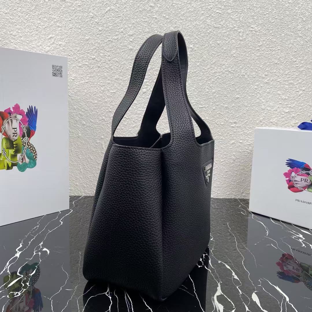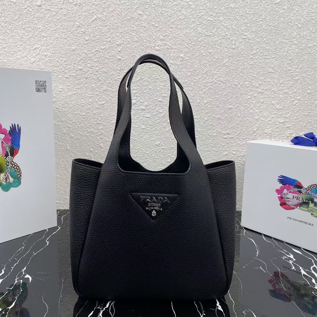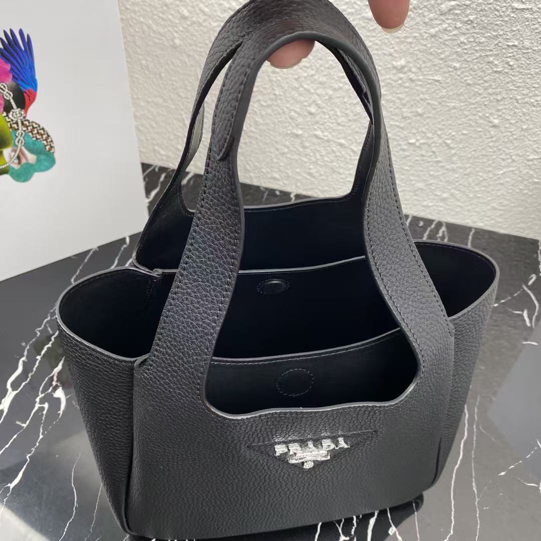 PRADA metal engraved baskets, tote bags, bucket bags, shopping bags, women\'s black style