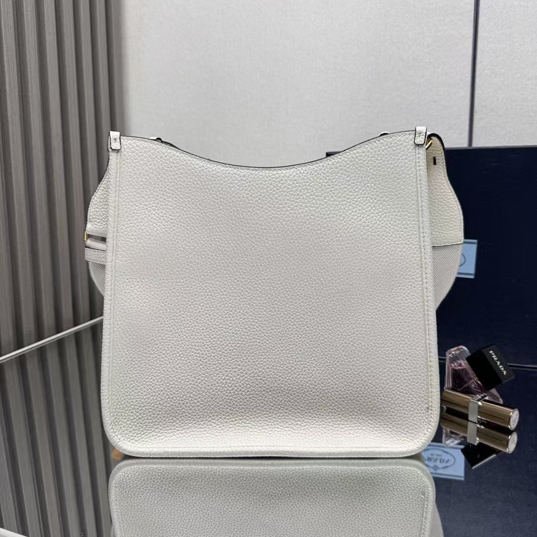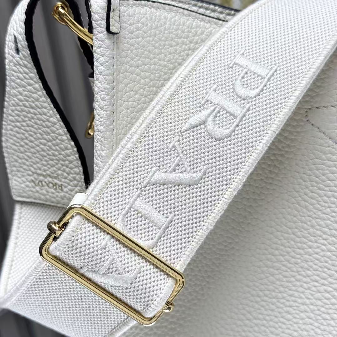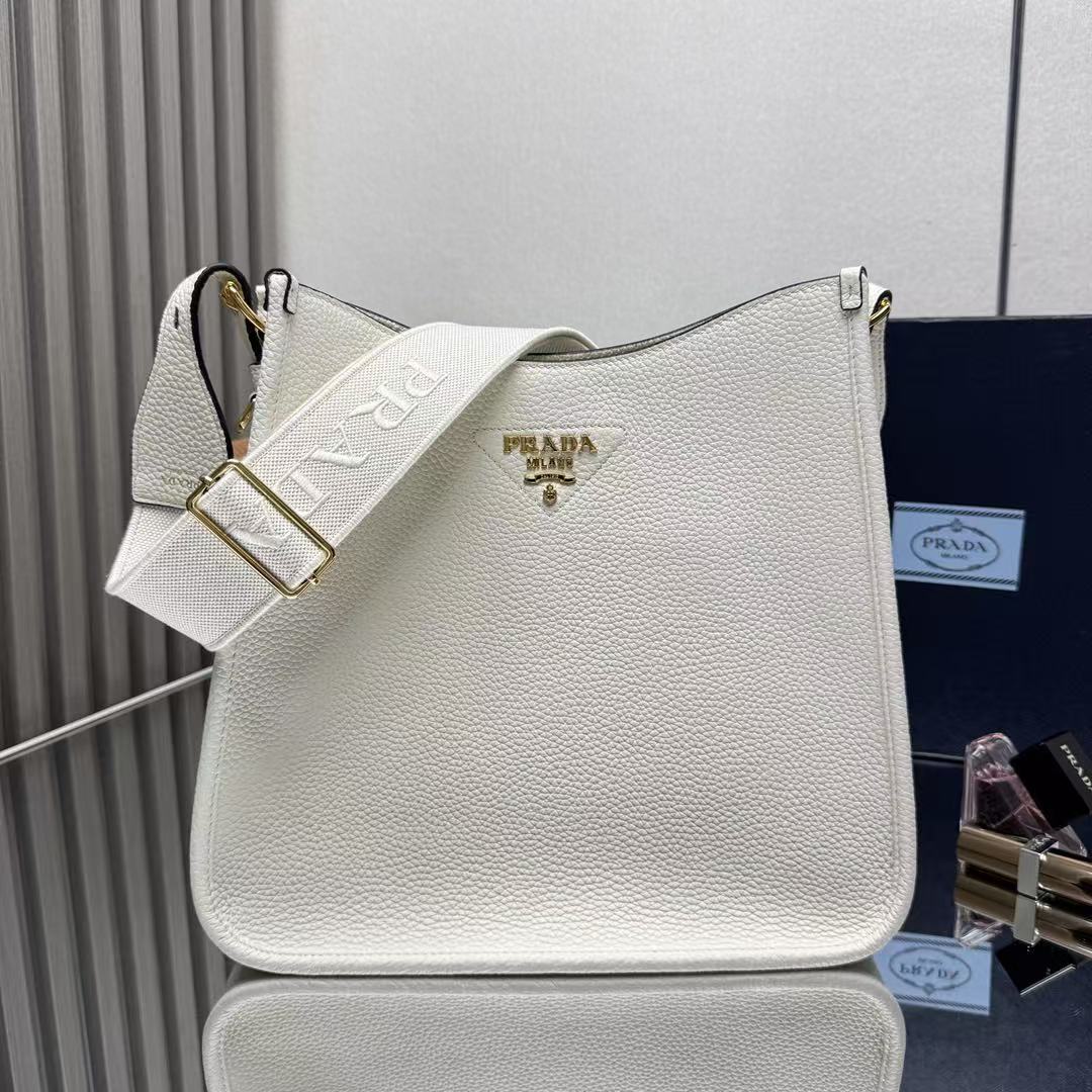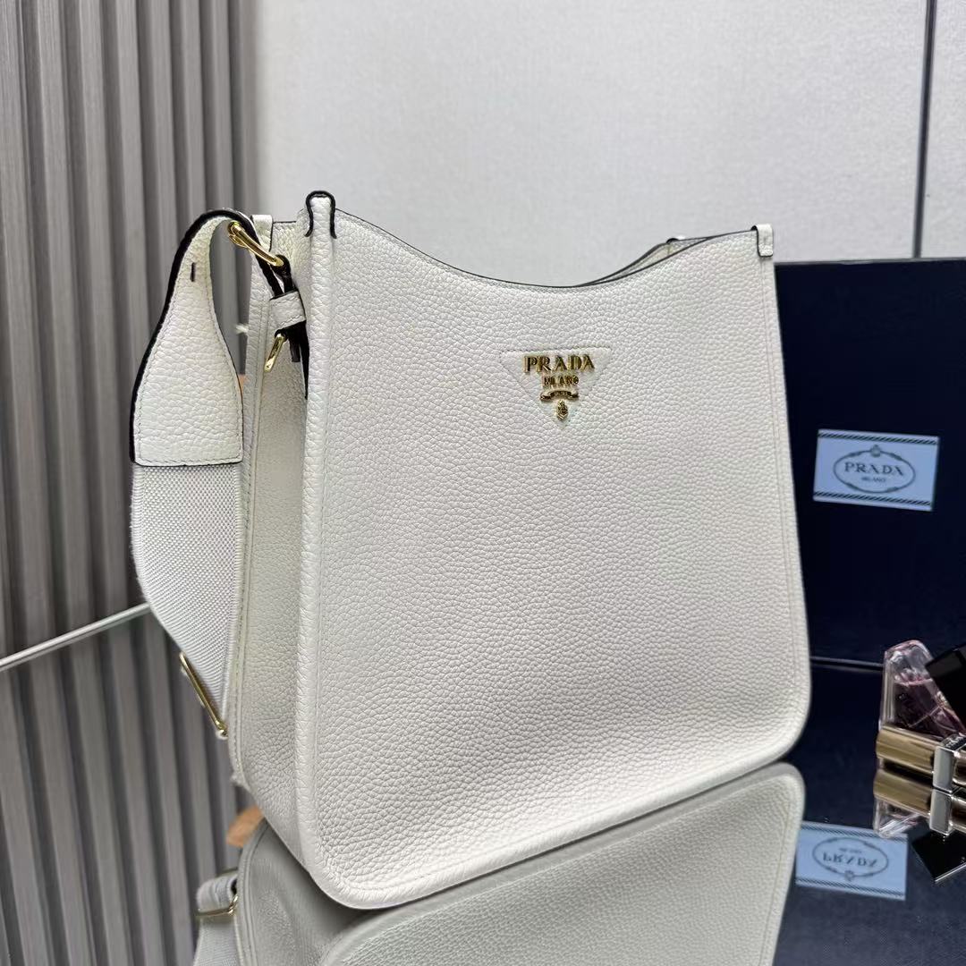 PRADA Metal engraved logo crossbody single-shoulder bag, medium size for women, white