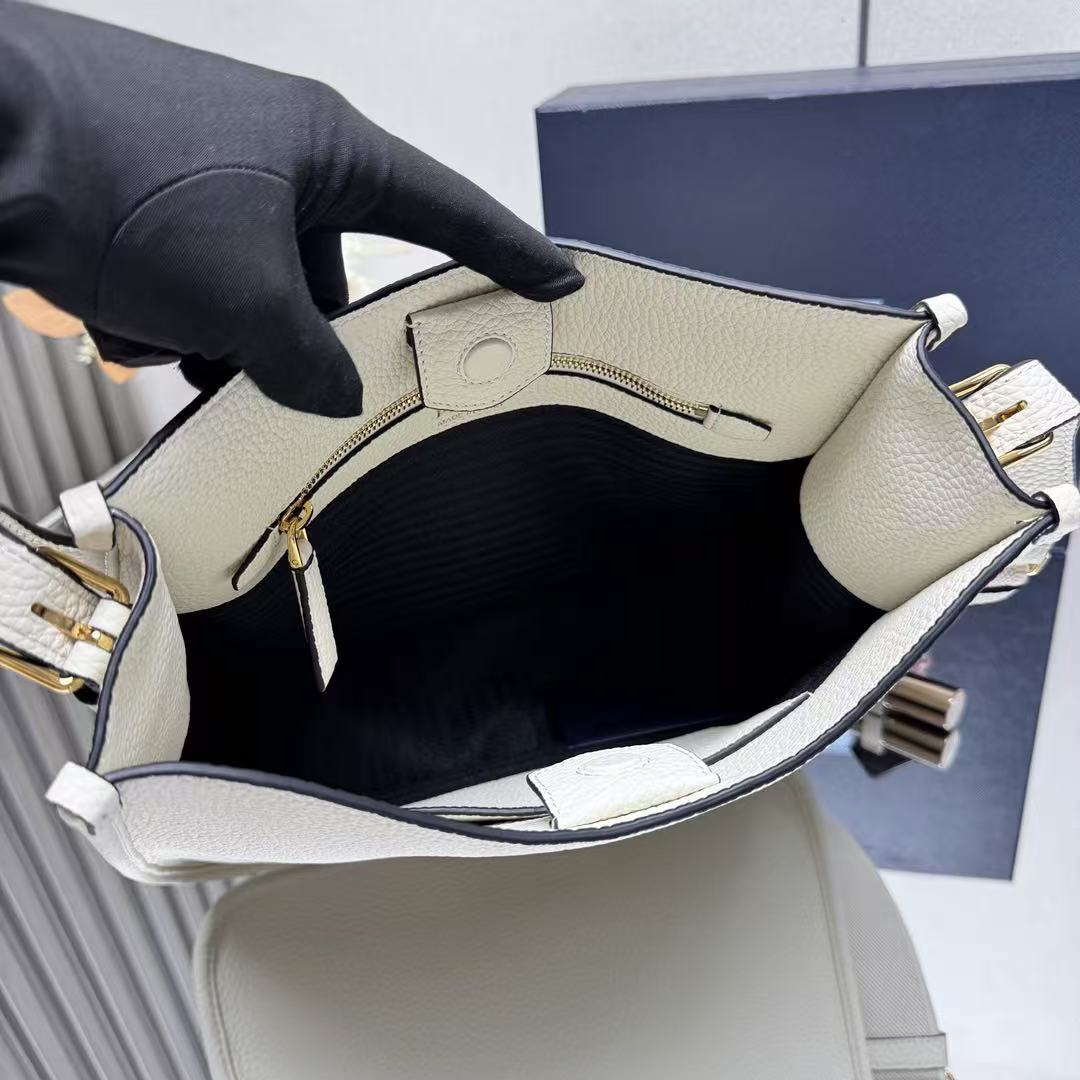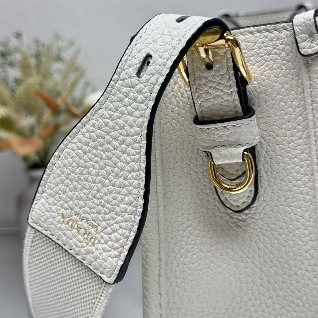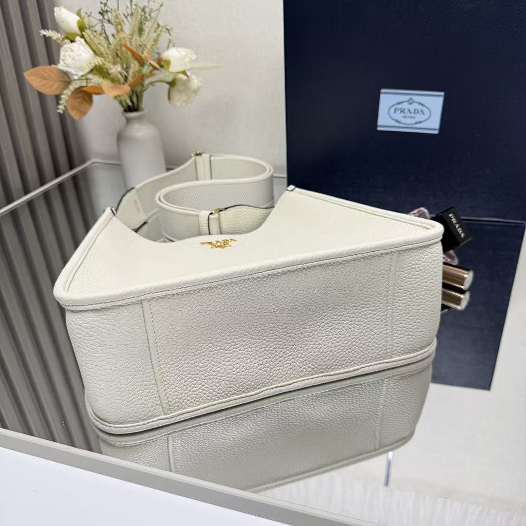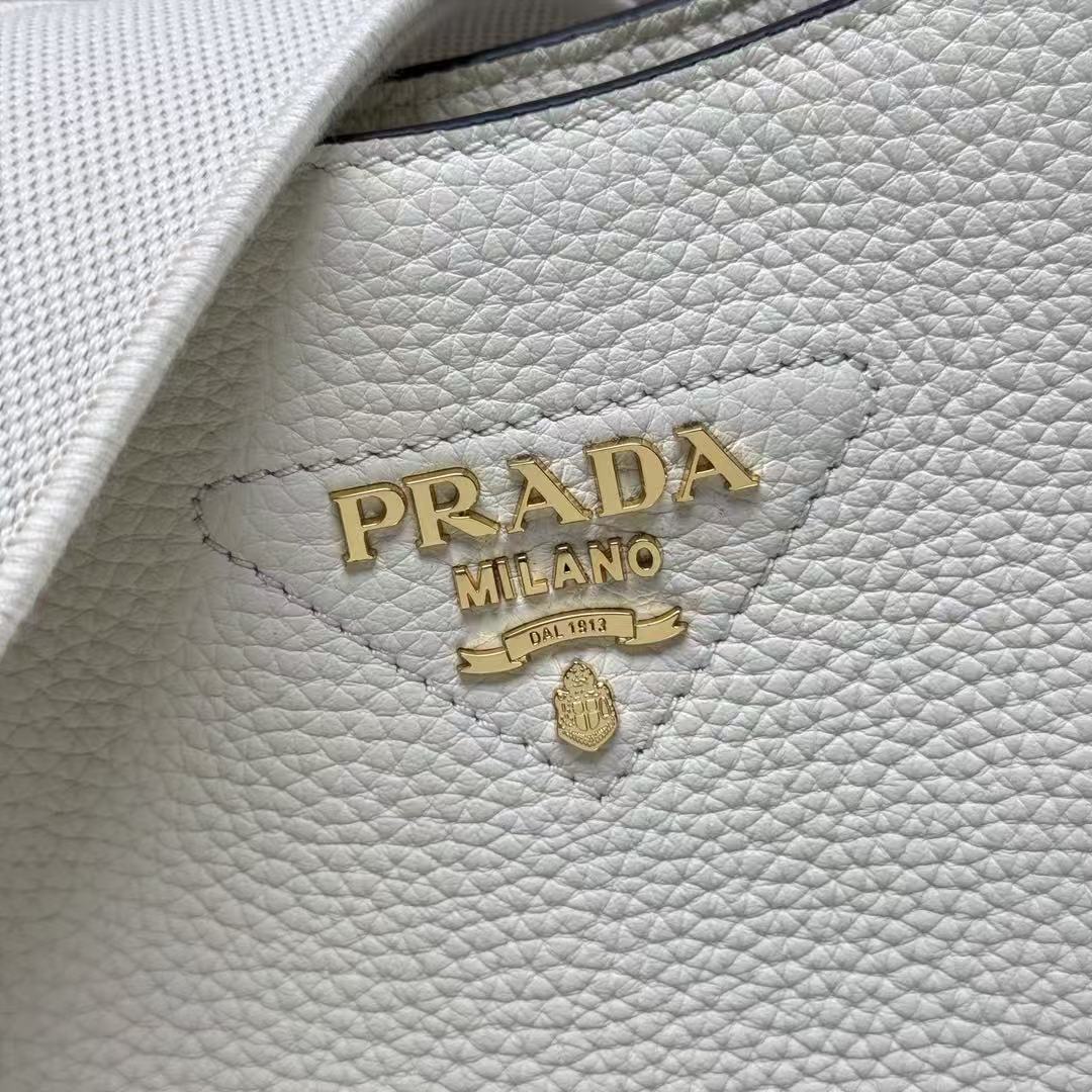 PRADA Metal engraved logo crossbody single-shoulder bag, medium size for women, white