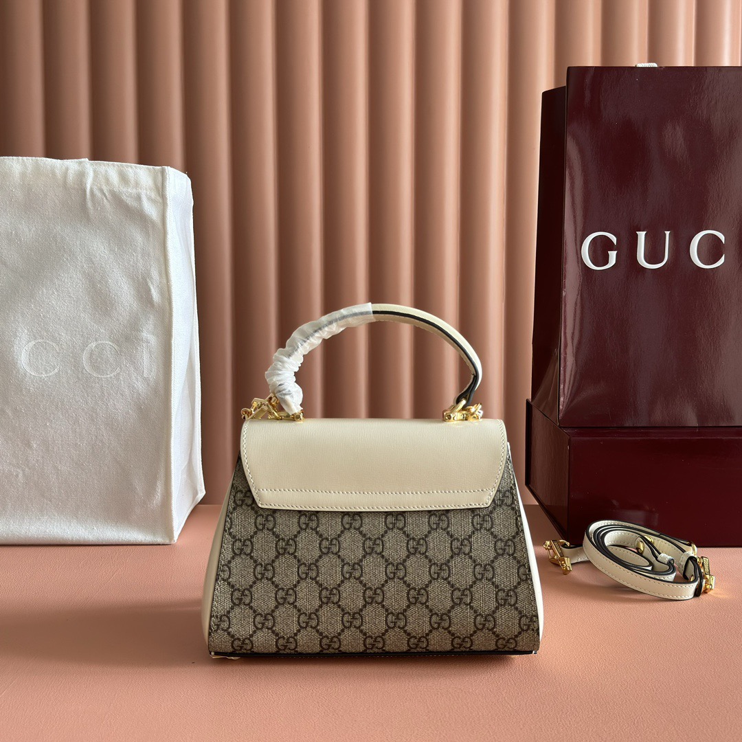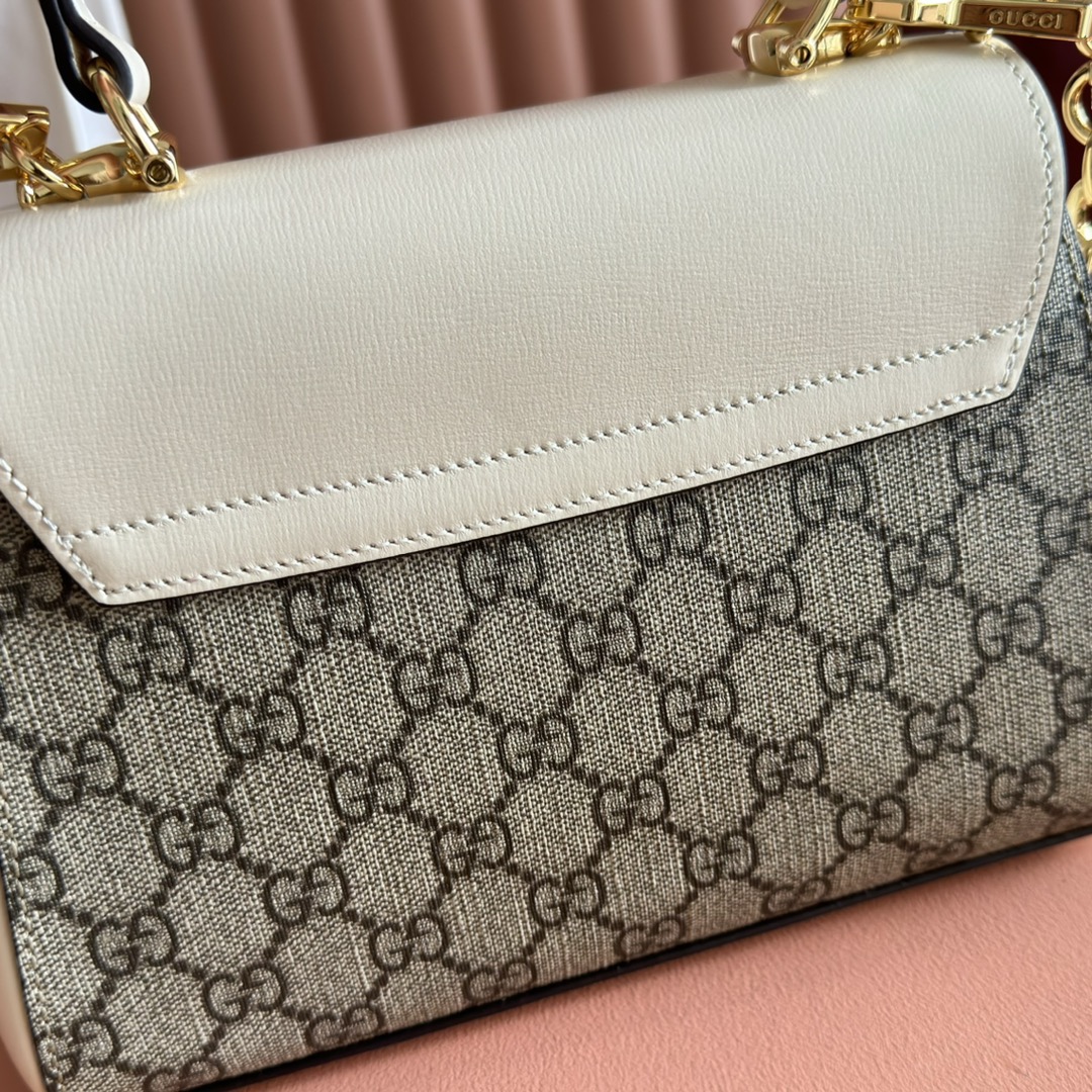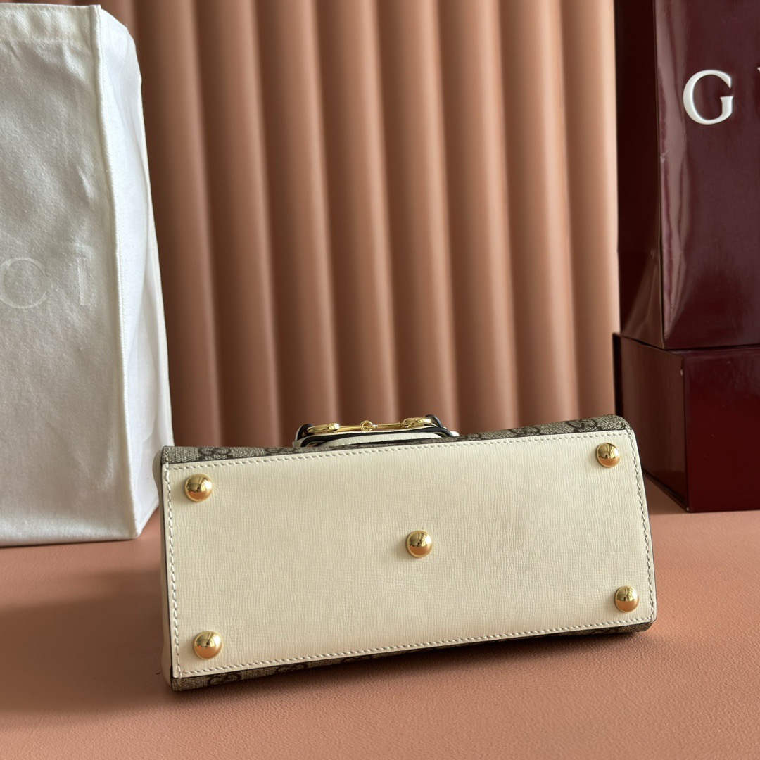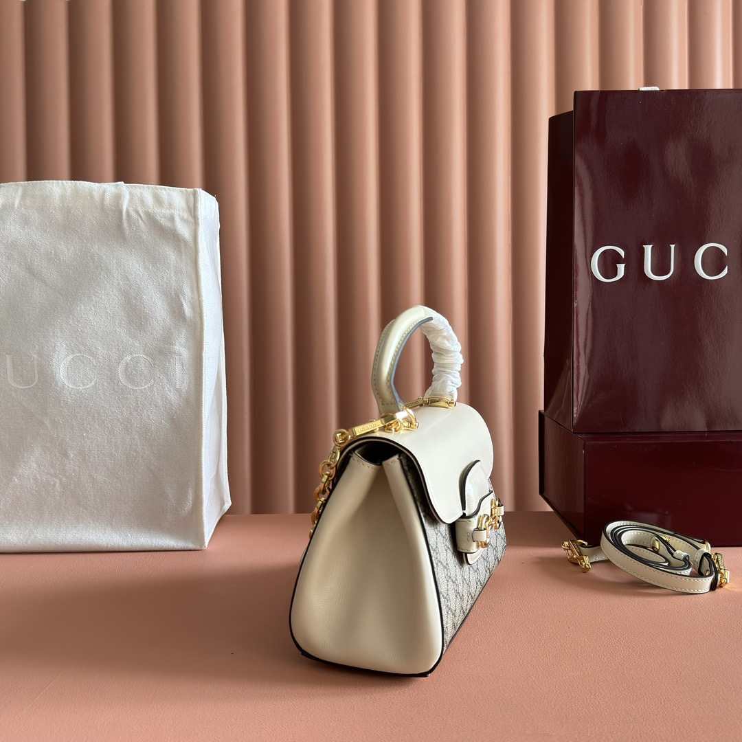 GUCCI Horsebit 1955 Shiny gold metal-decorated chain single-shoulder crossbody handbag mini Women\'s white with ebony color