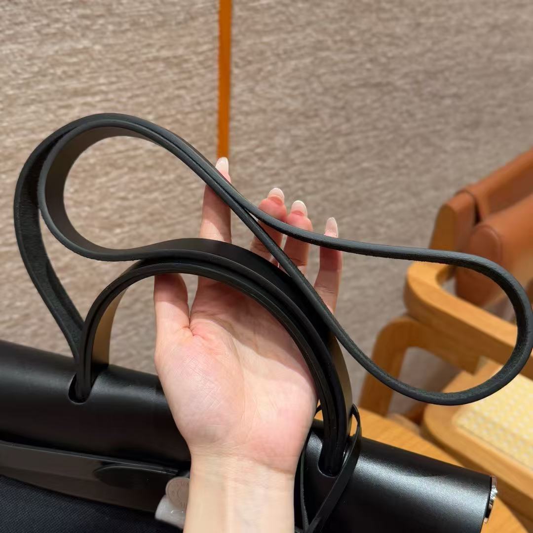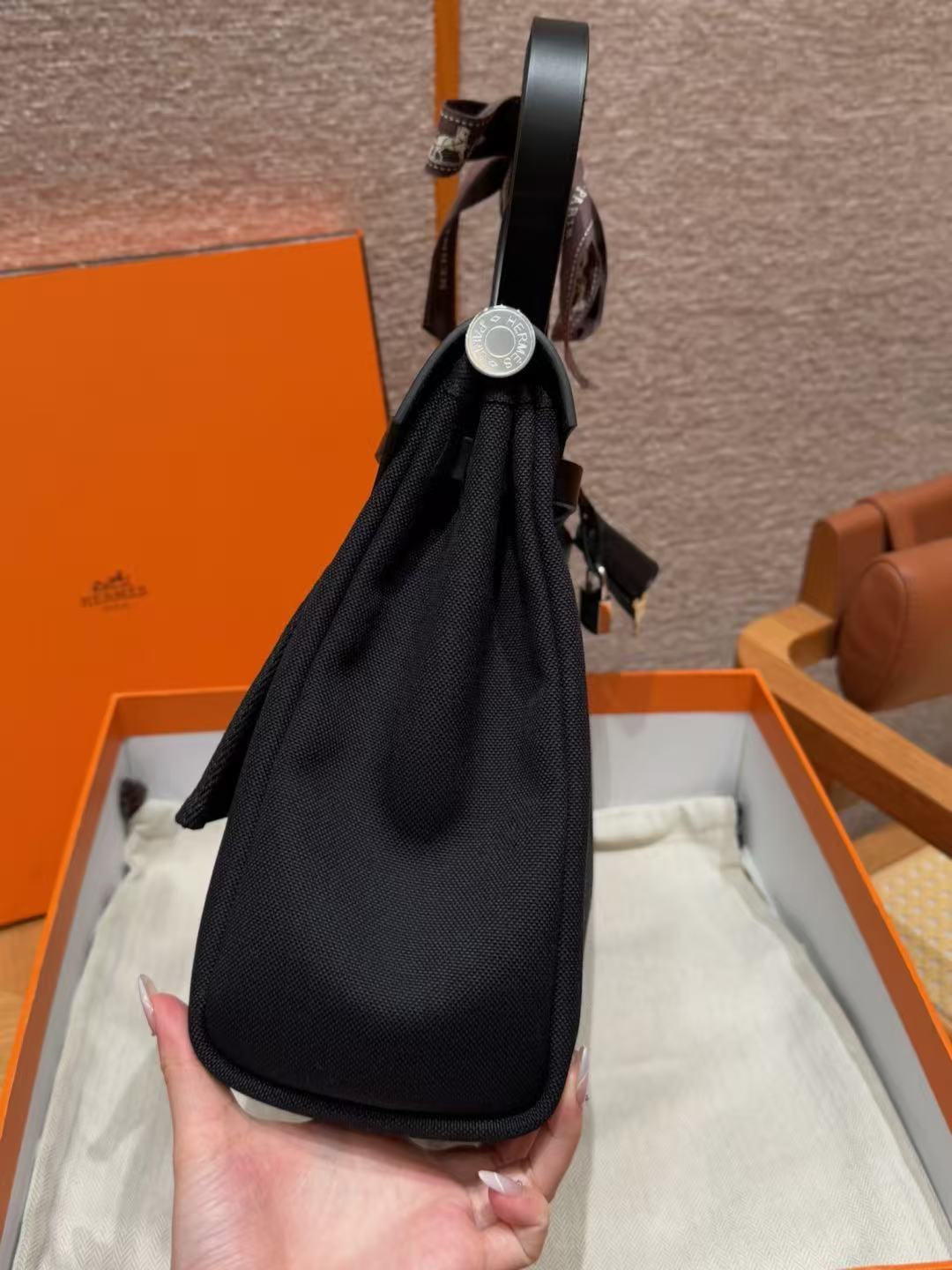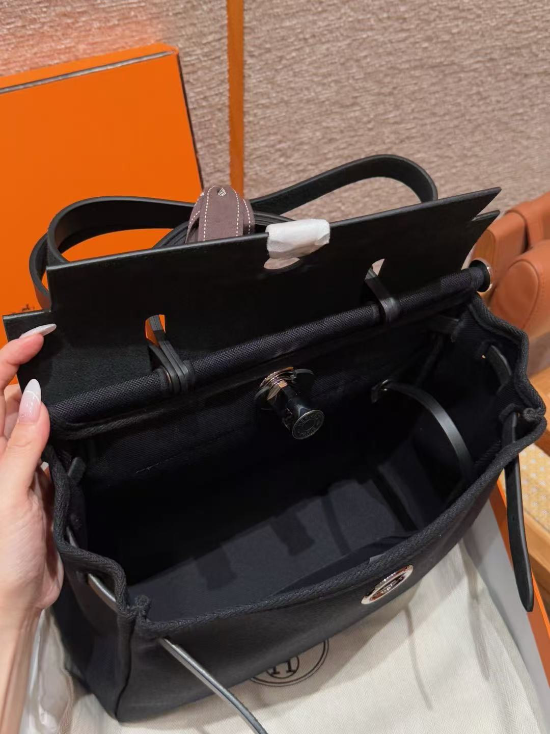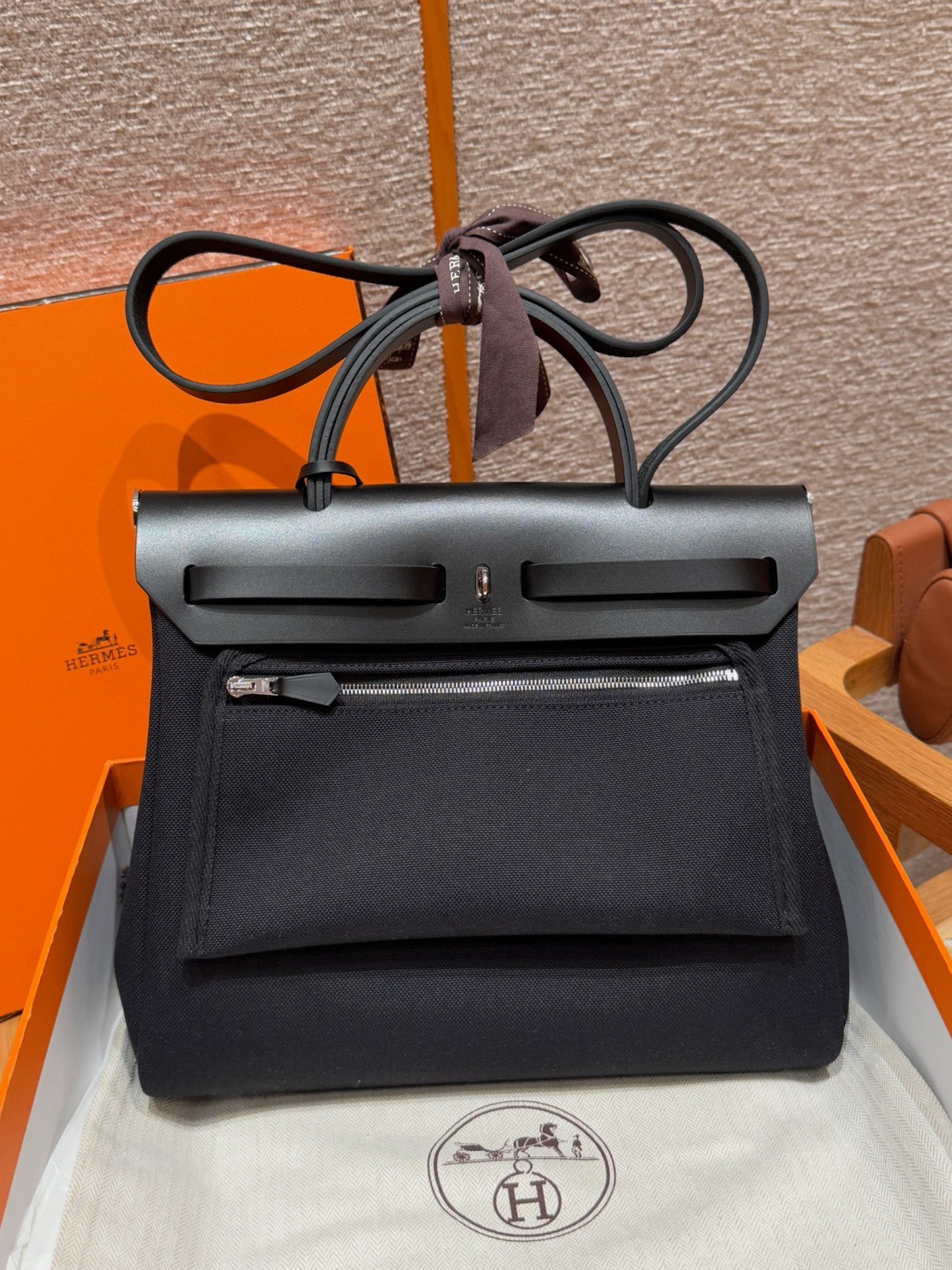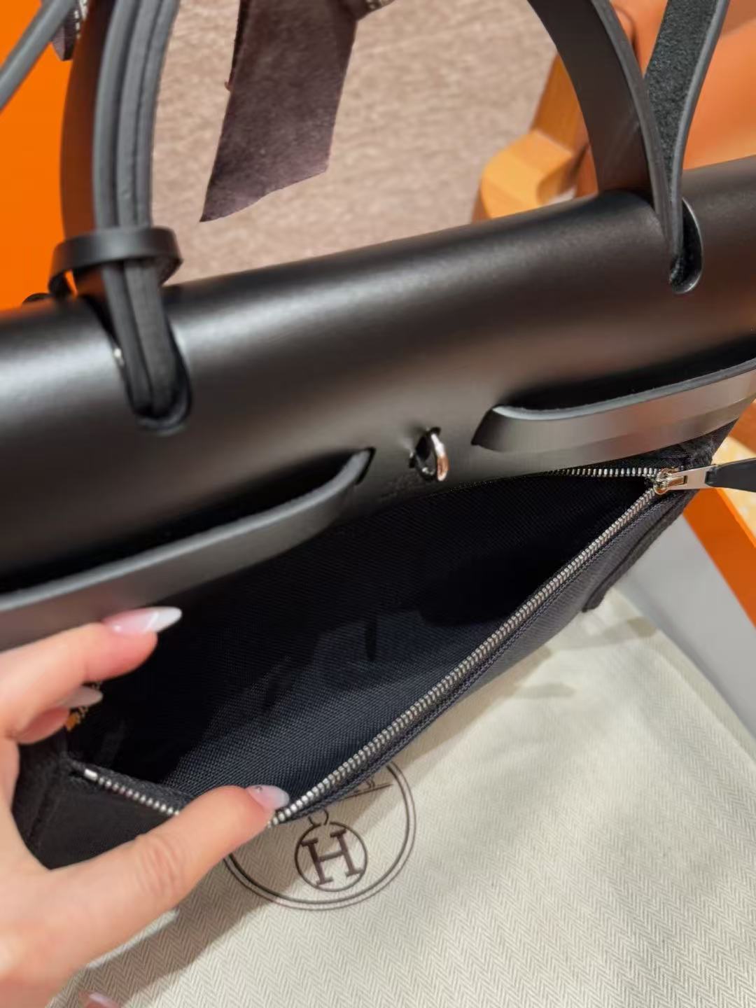 HERMES Herbag Zip 31 laque Silver buckle shoulder crossbody handbag 31 Unisex Couple Style 89 Noir Black
