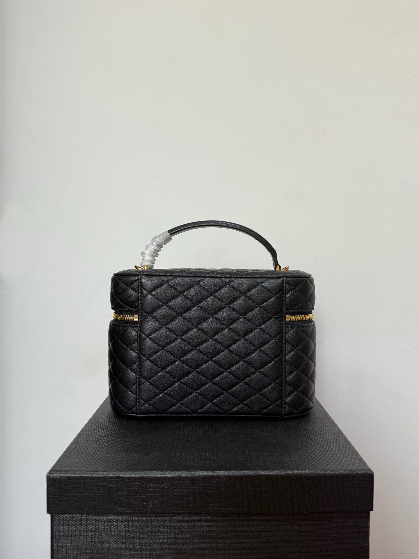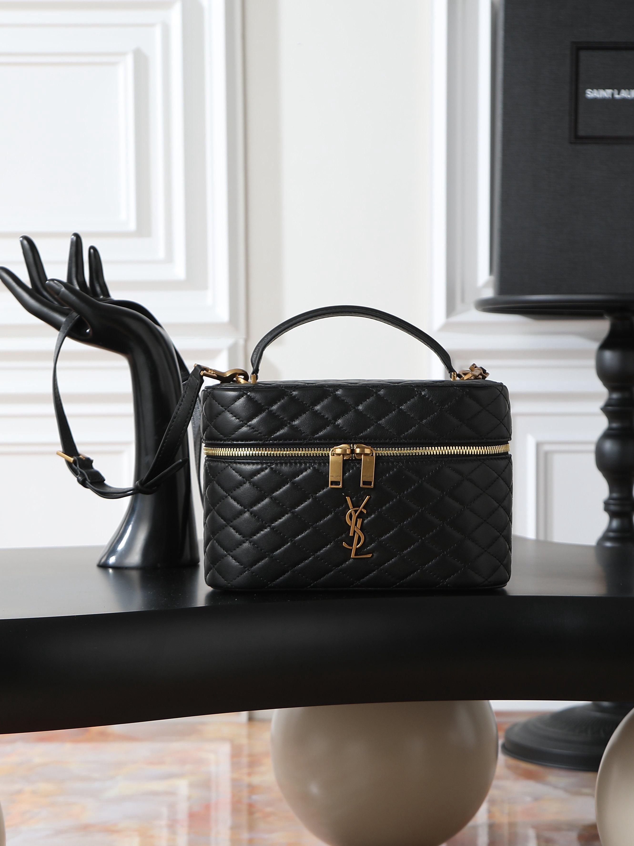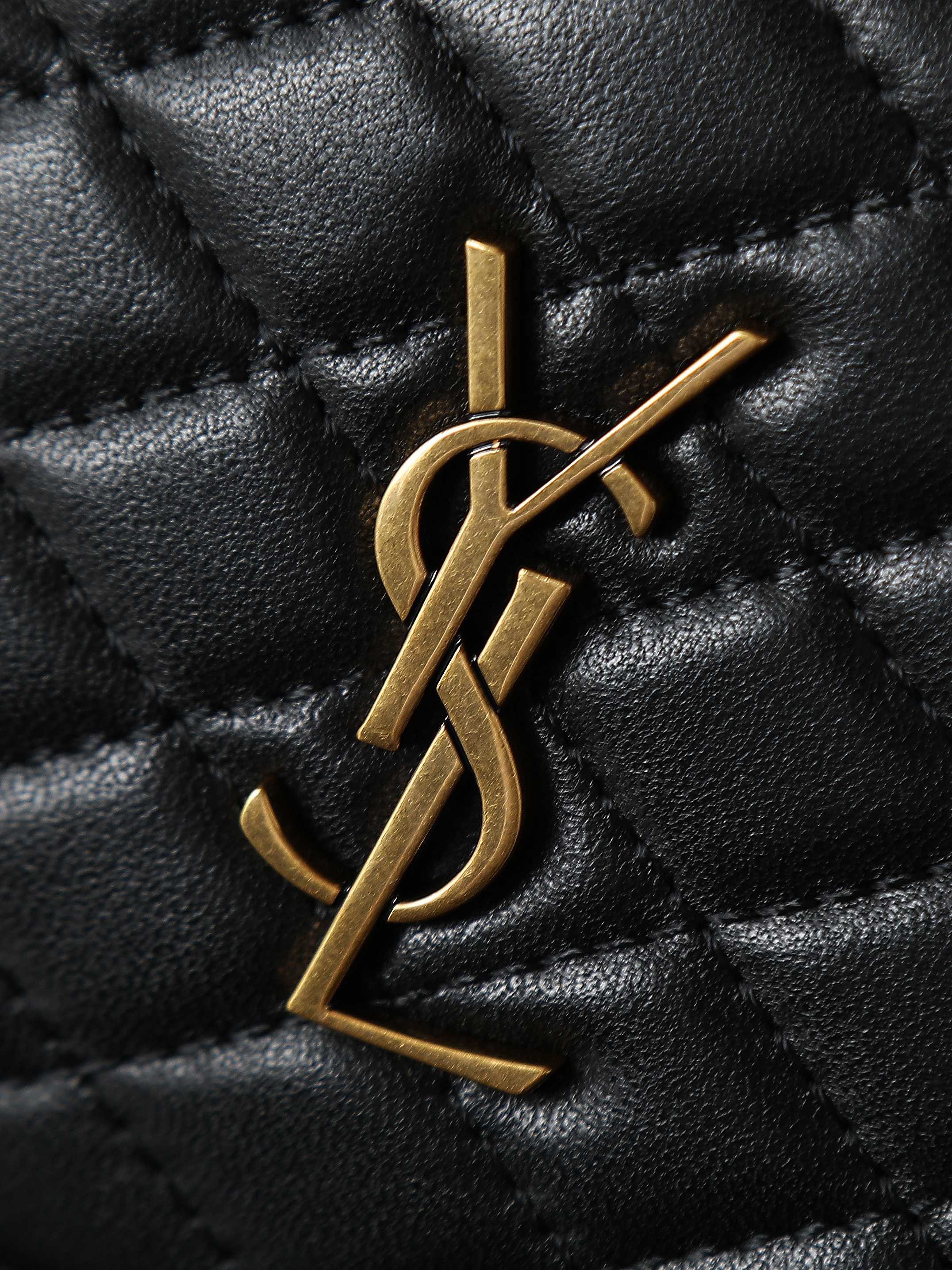 SAINT LAURENT GABY gold hardware brand logo sheepskin cosmetic bag, large black